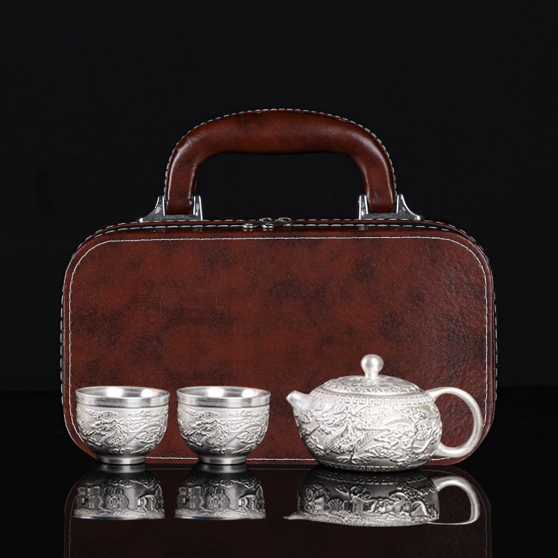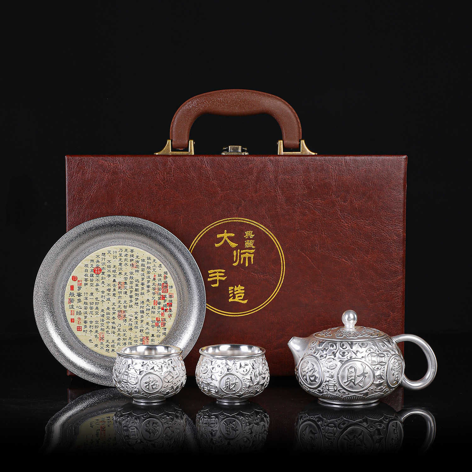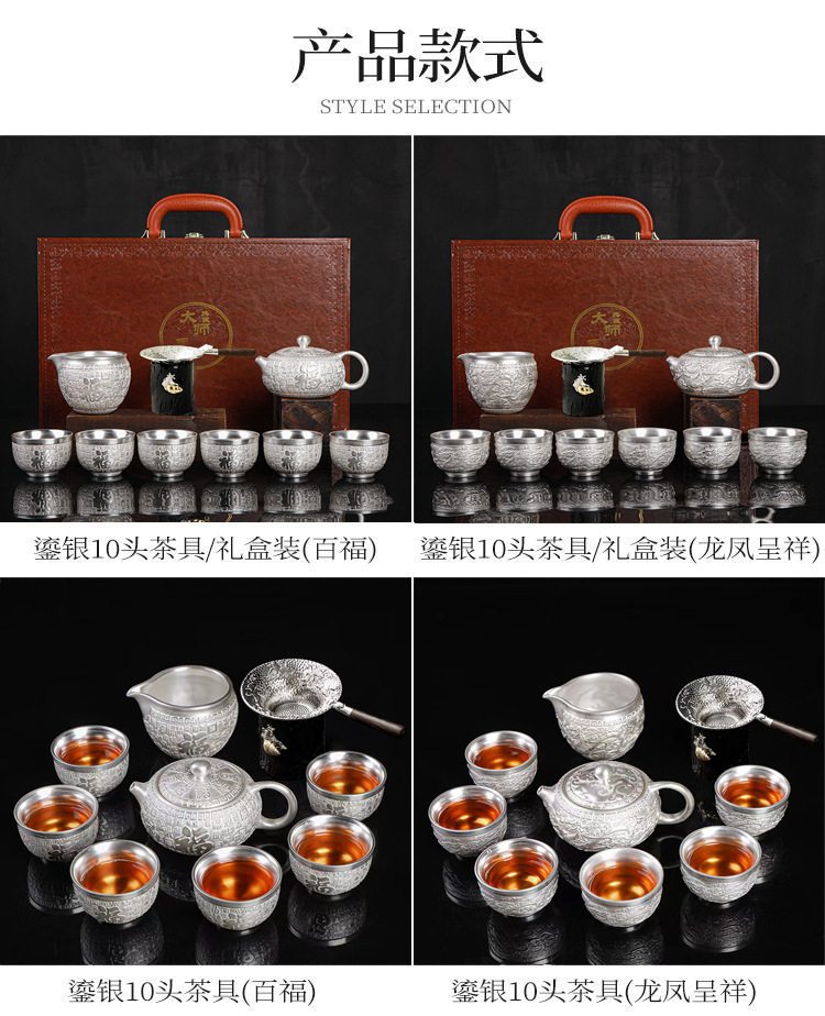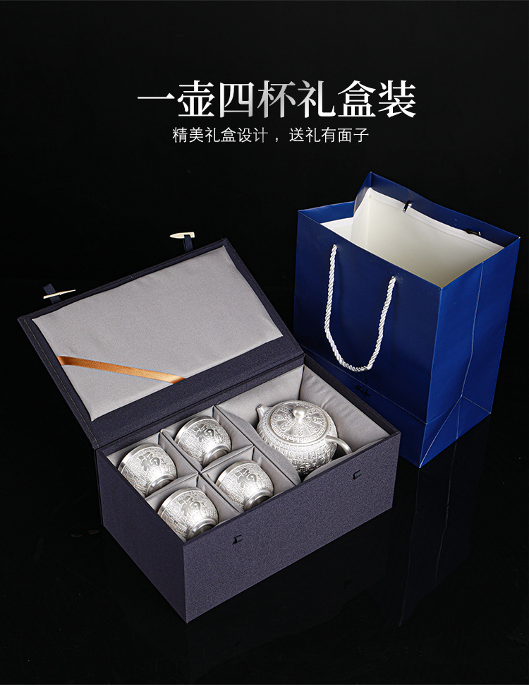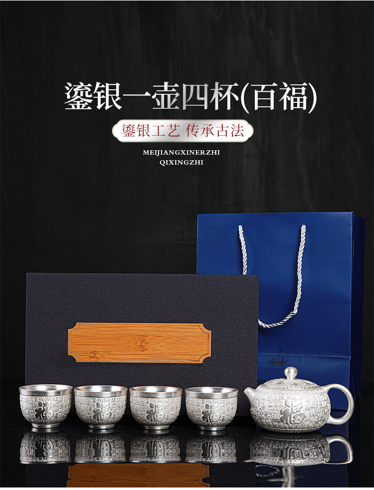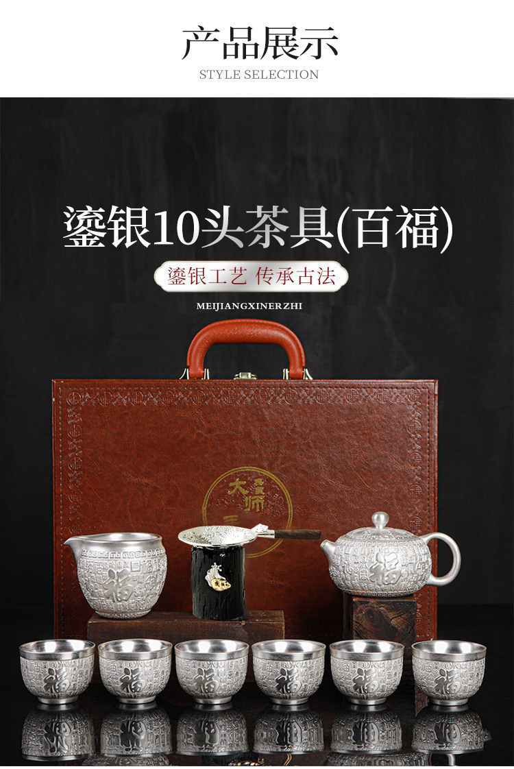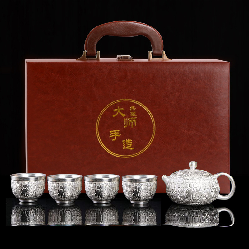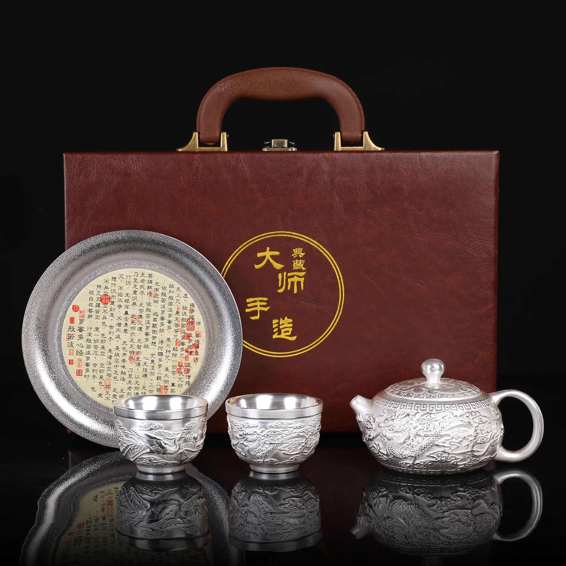 999 Gilded Silver Kung Fu Tea Set, Baifu Ceramic Teapot Cover, Tea Cup, Silver Tea Set, High end Business Companion Gift