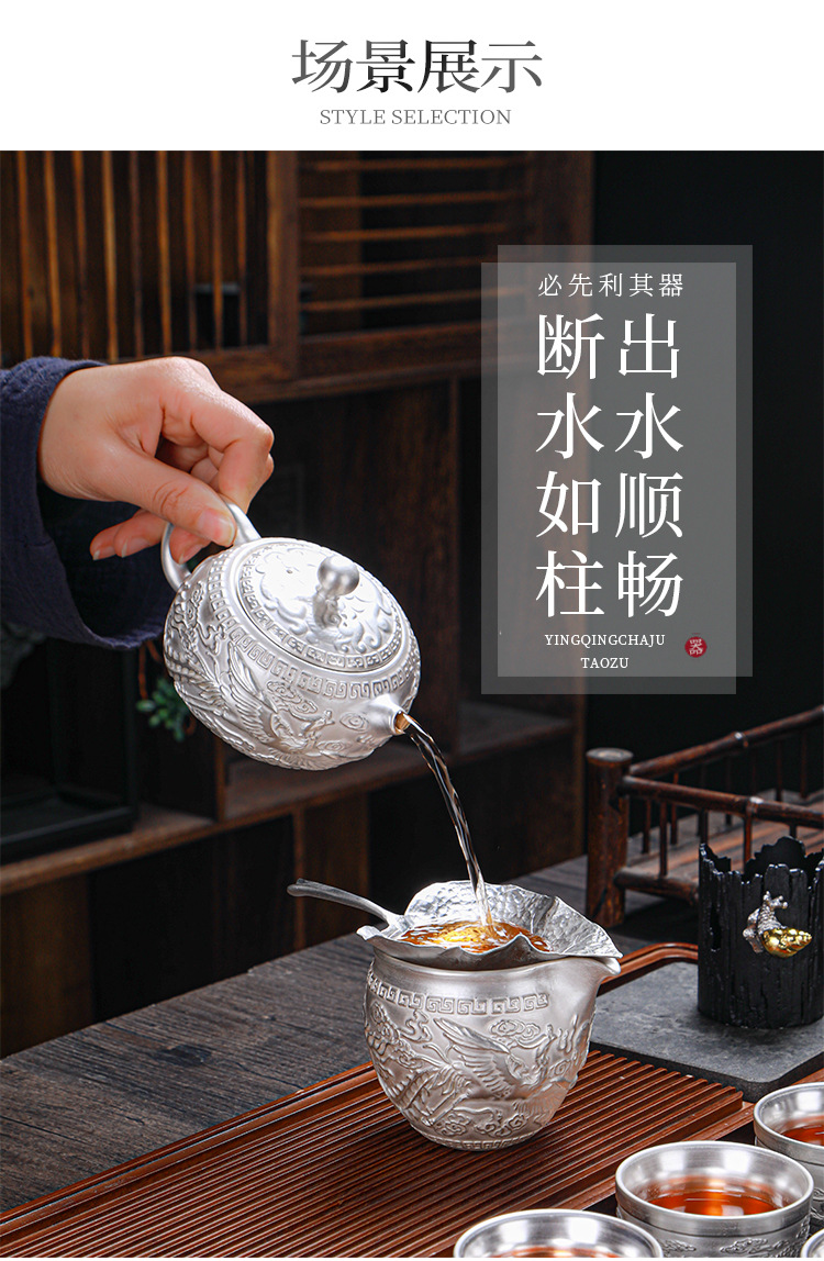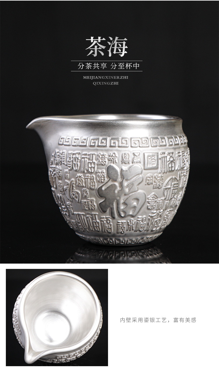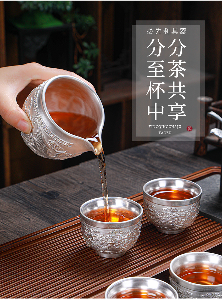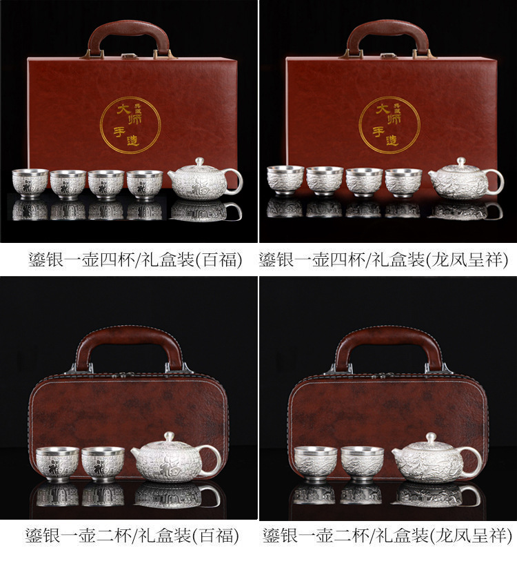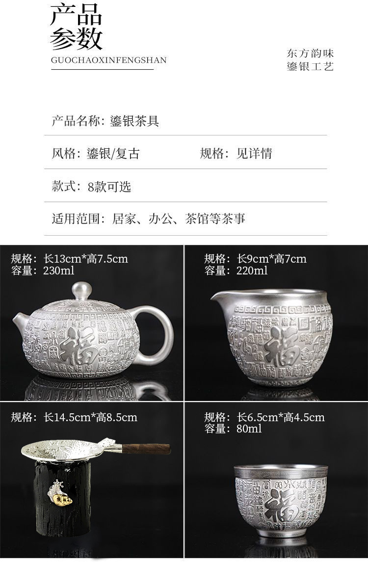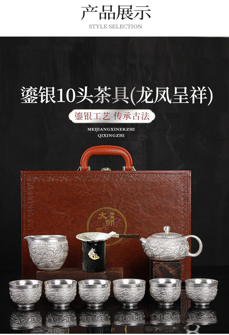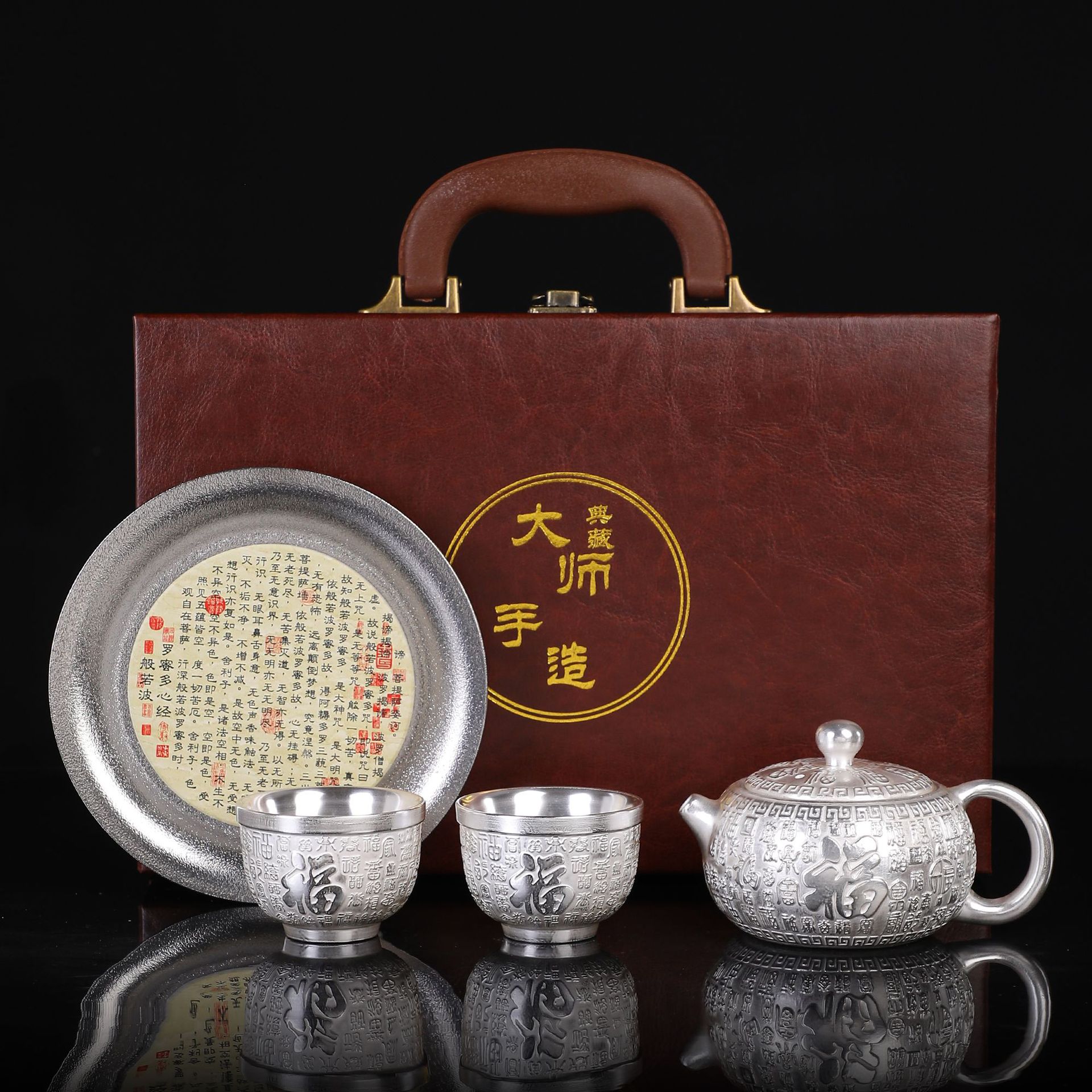 999 Gilded Silver Kung Fu Tea Set, Baifu Ceramic Teapot Cover, Tea Cup, Silver Tea Set, High end Business Companion Gift