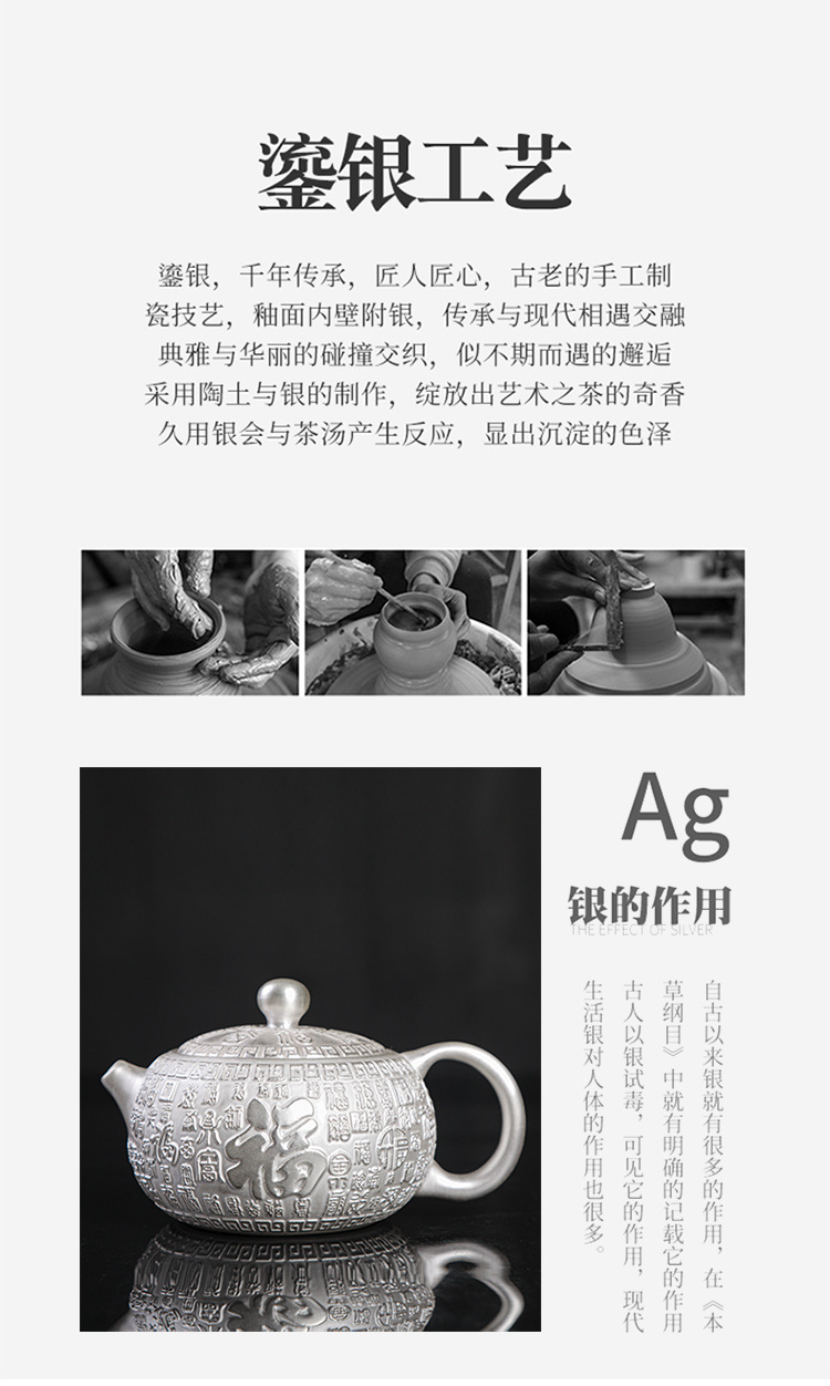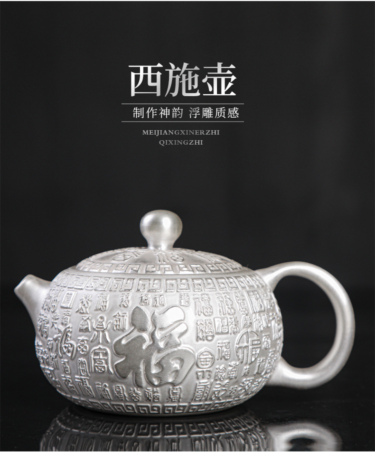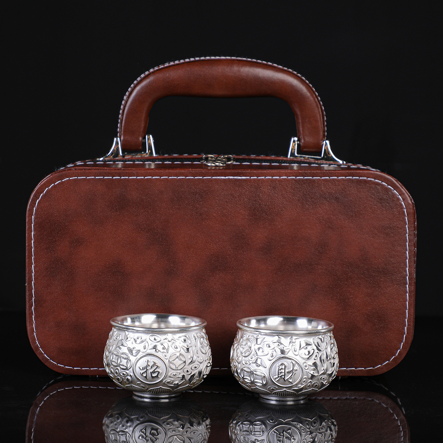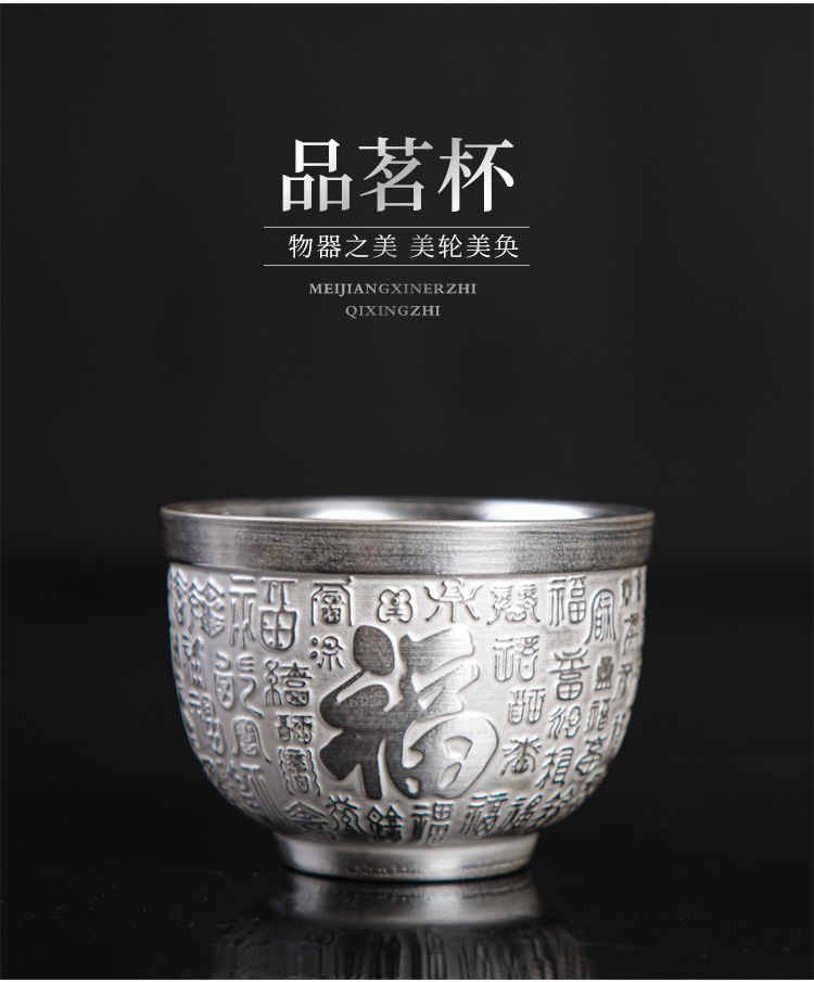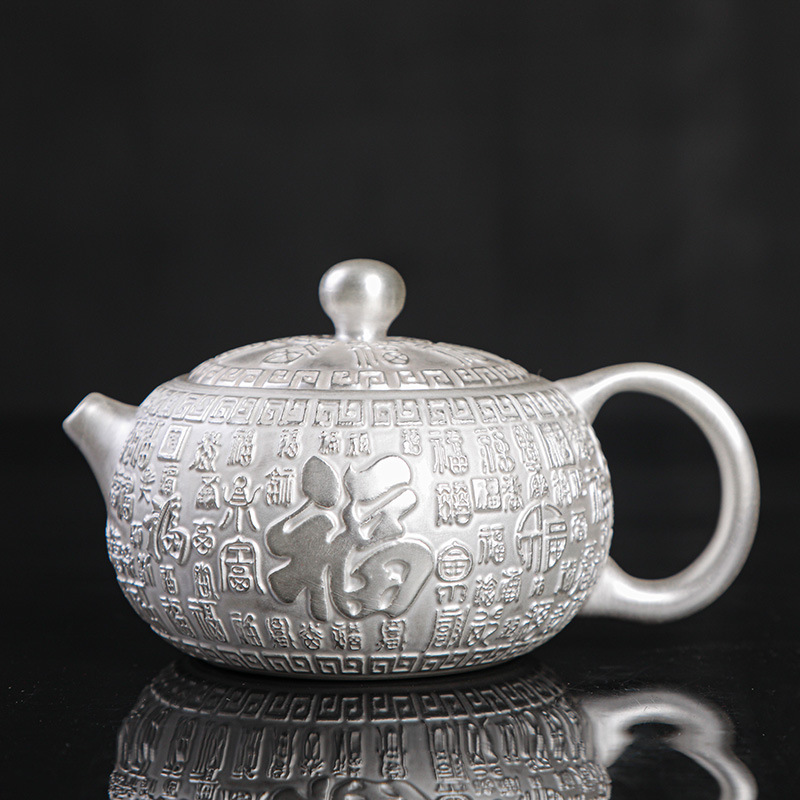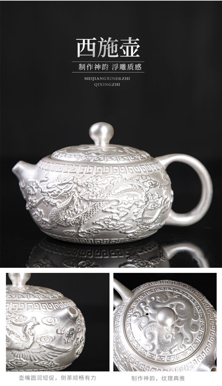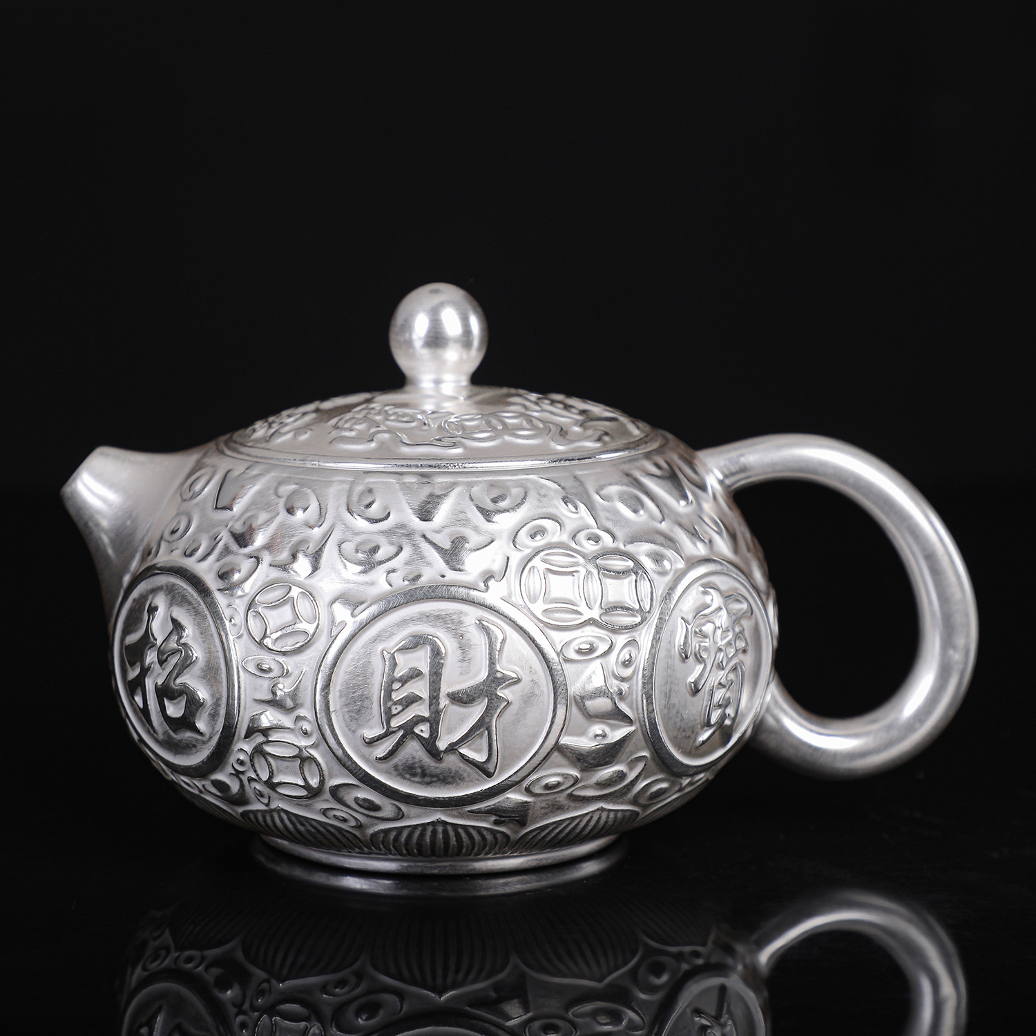 999 Gilded Silver Kung Fu Tea Set, Baifu Ceramic Teapot Cover, Tea Cup, Silver Tea Set, High end Business Companion Gift