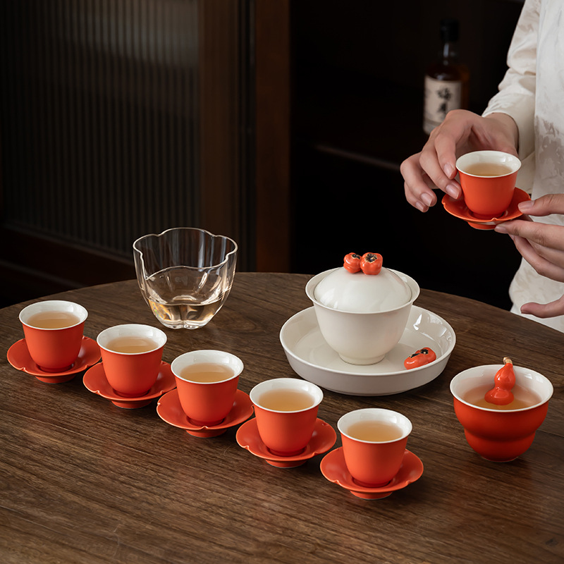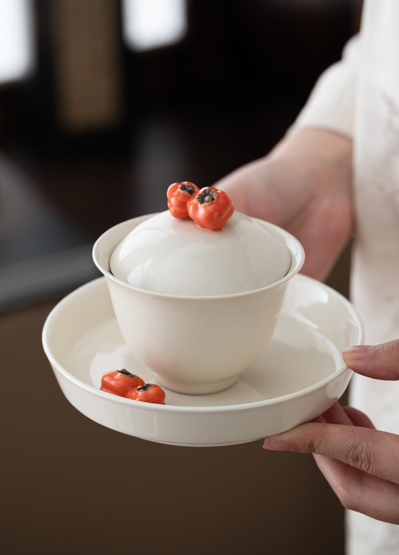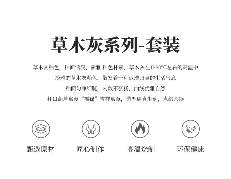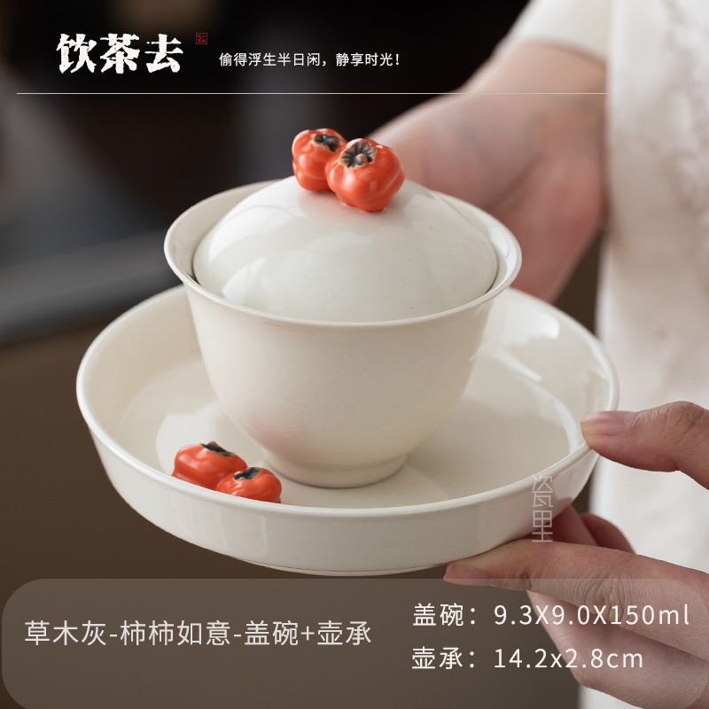 Grass and Ash Kung Fu Tea Set, Retro Ceramic Home Office Living Room, Modern Minimalist Tea Making Bowl Cover Set