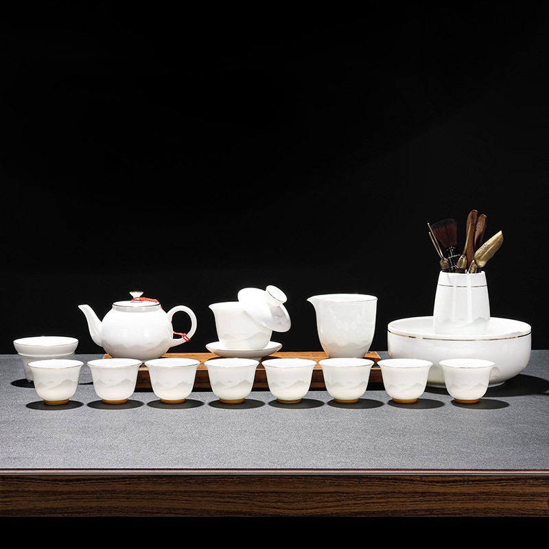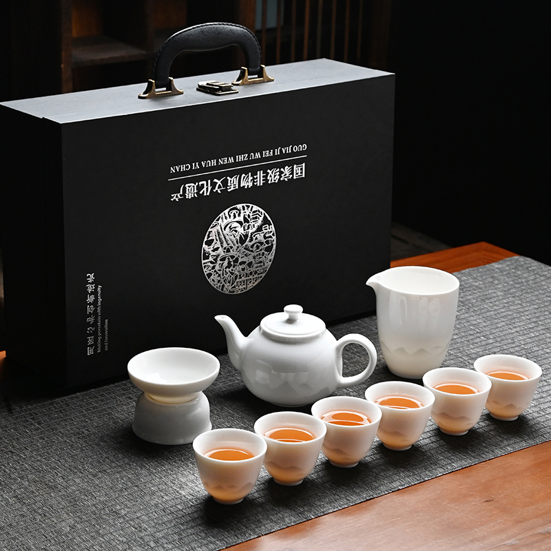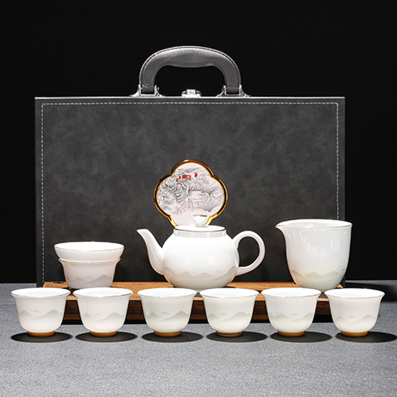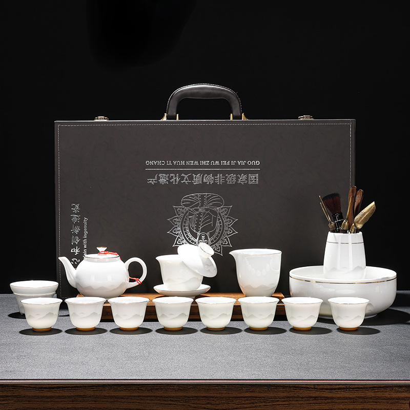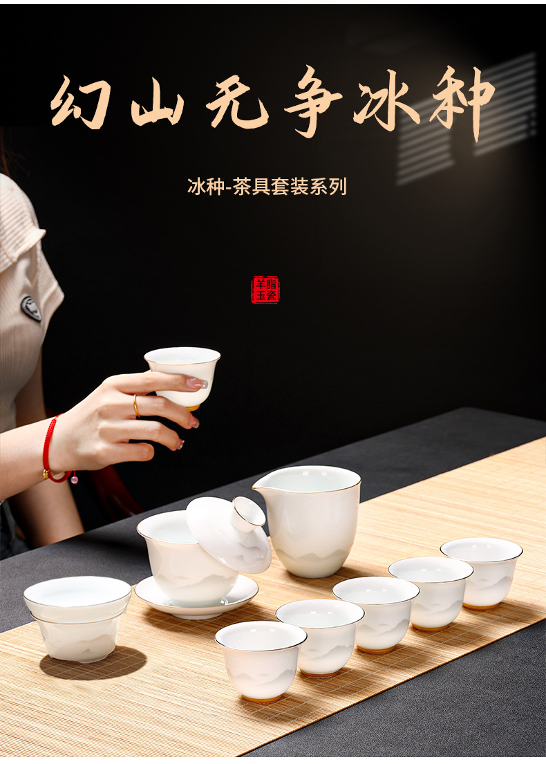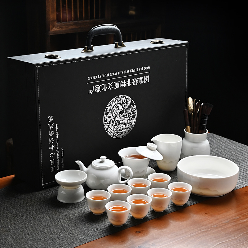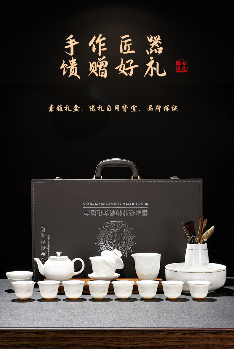 Ice seed sheep fat jade white porcelain tea set, home office ceramic high-end 2024 tea pot Kung Fu gift box set