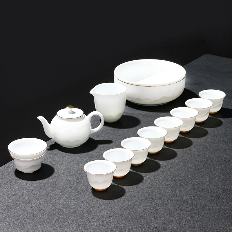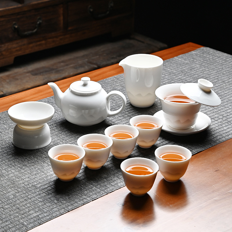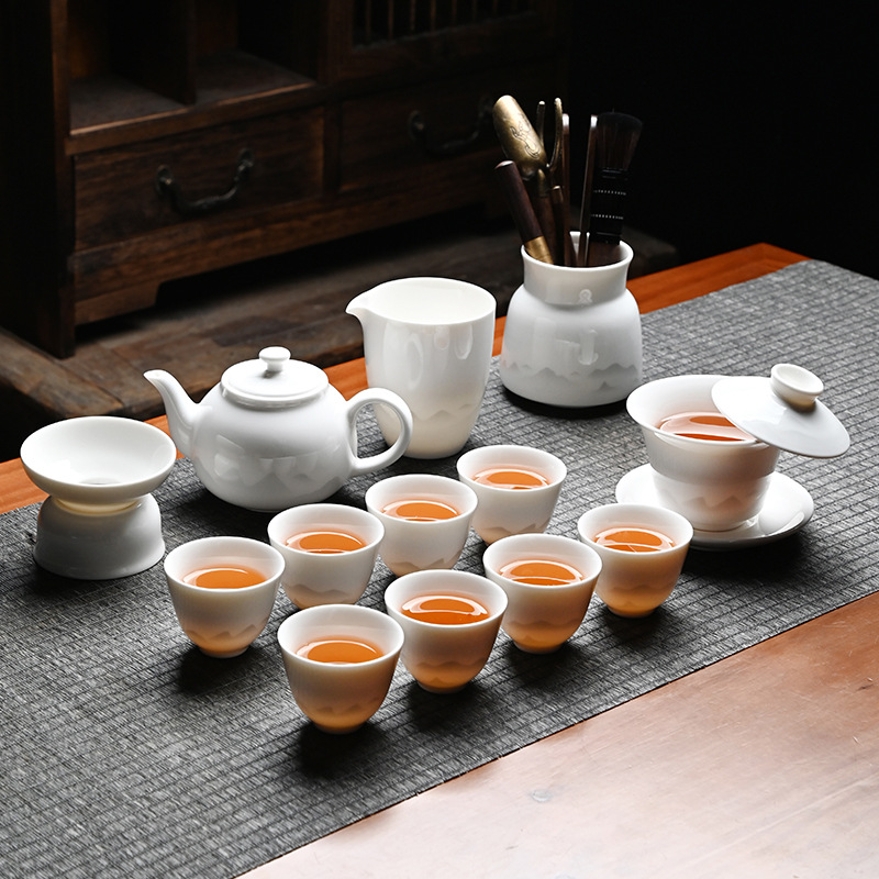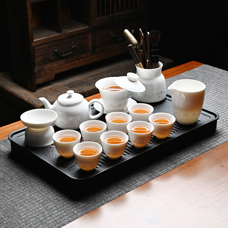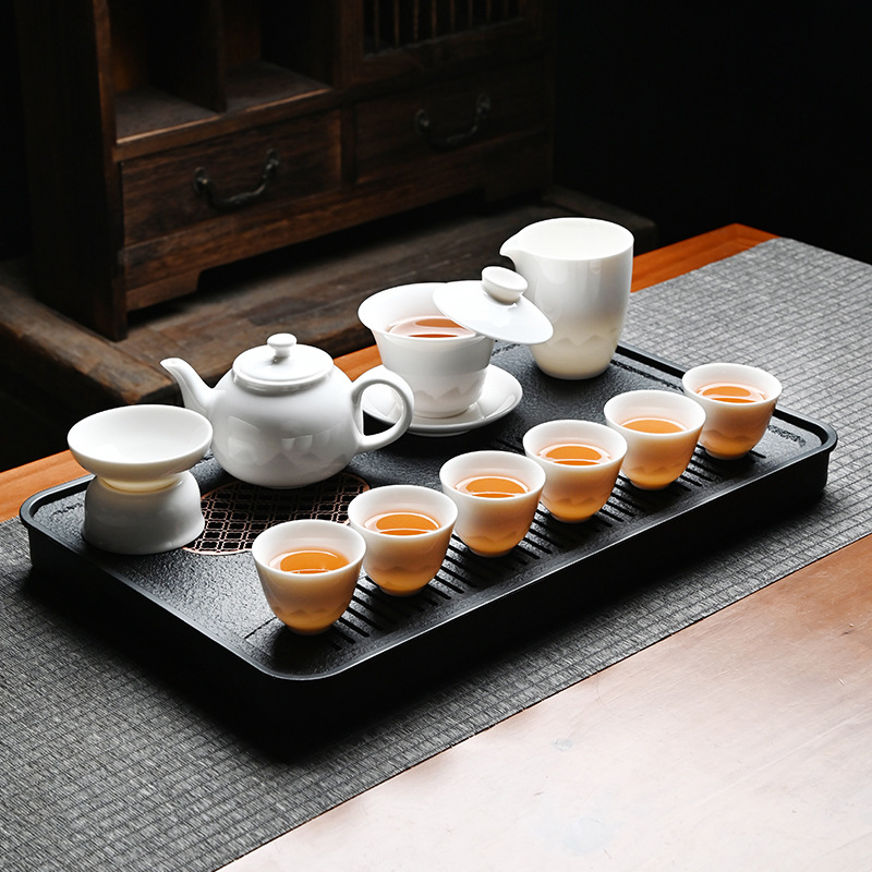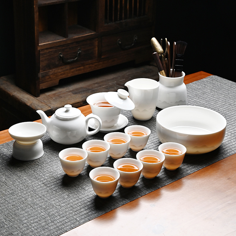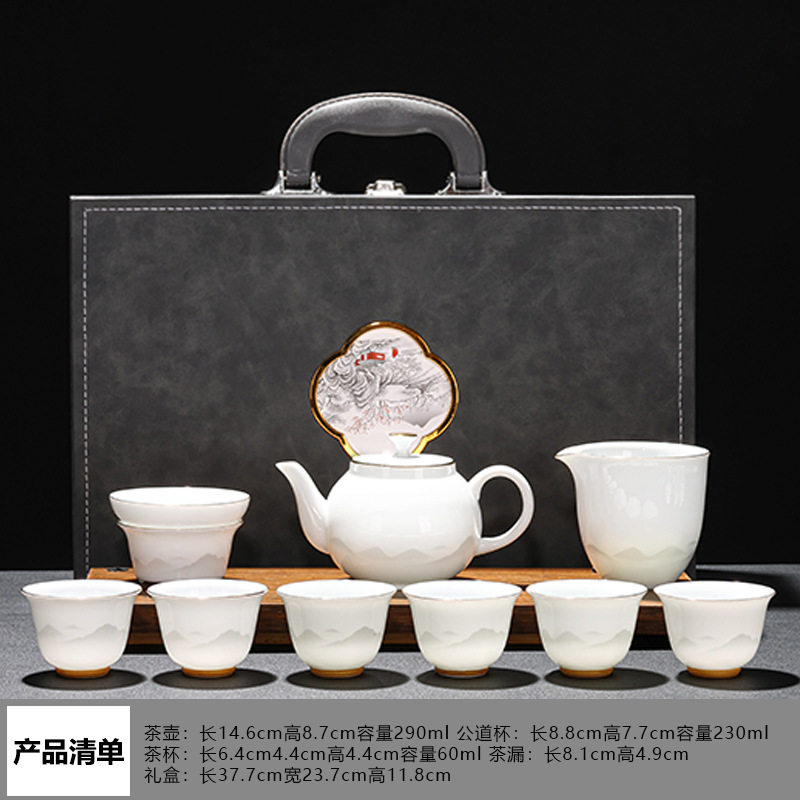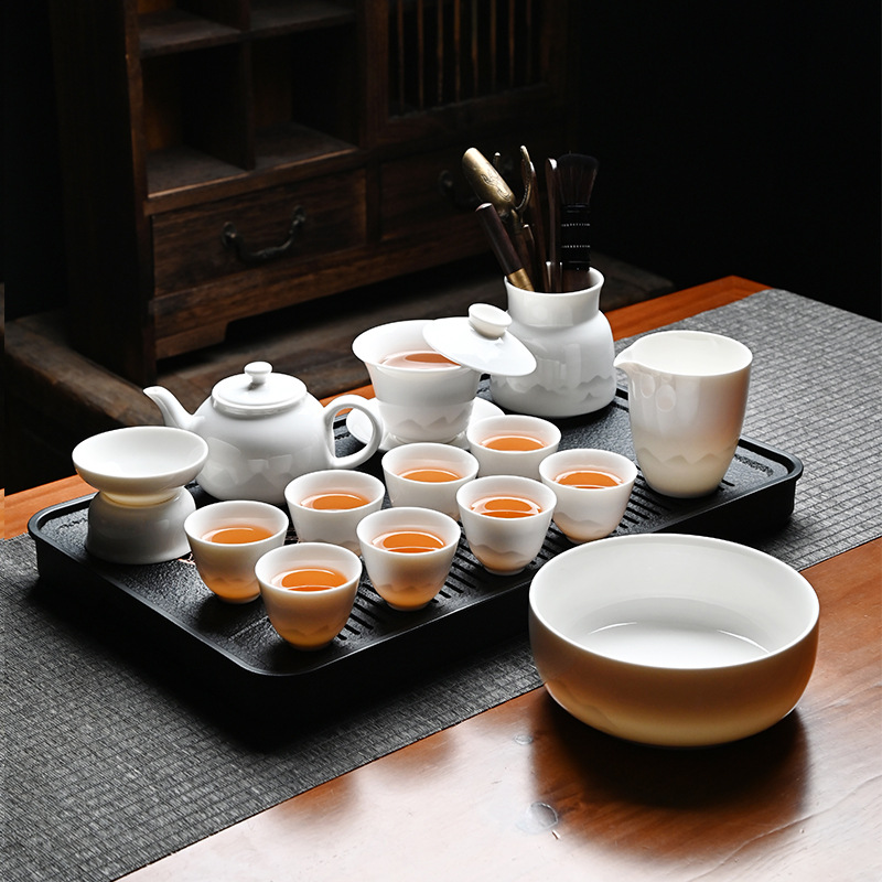 Ice seed sheep fat jade white porcelain tea set, home office ceramic high-end 2024 tea pot Kung Fu gift box set