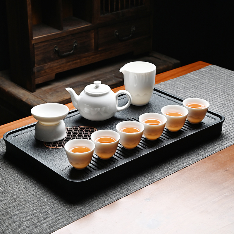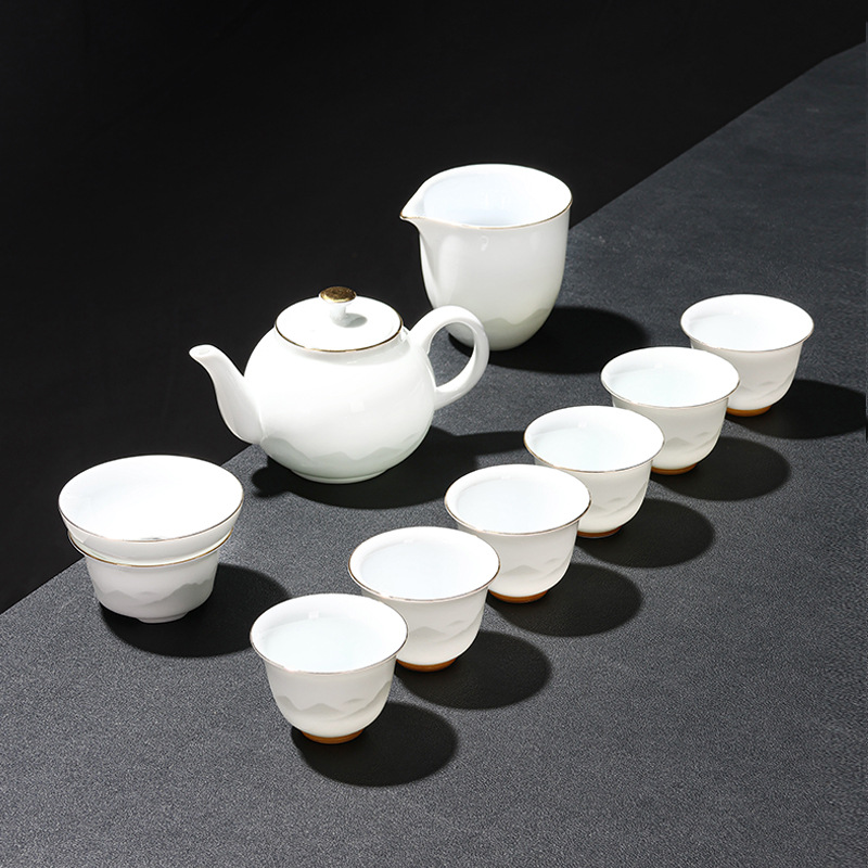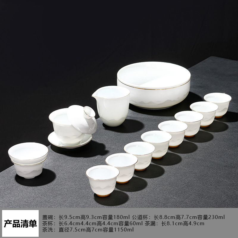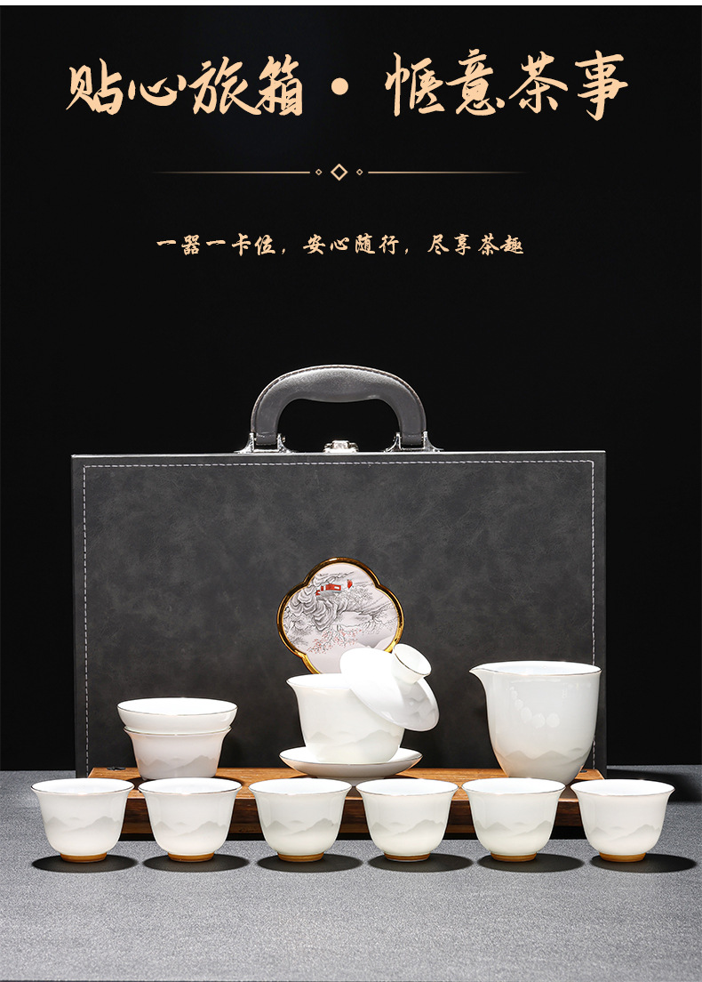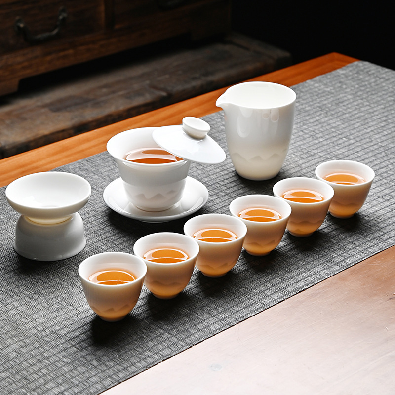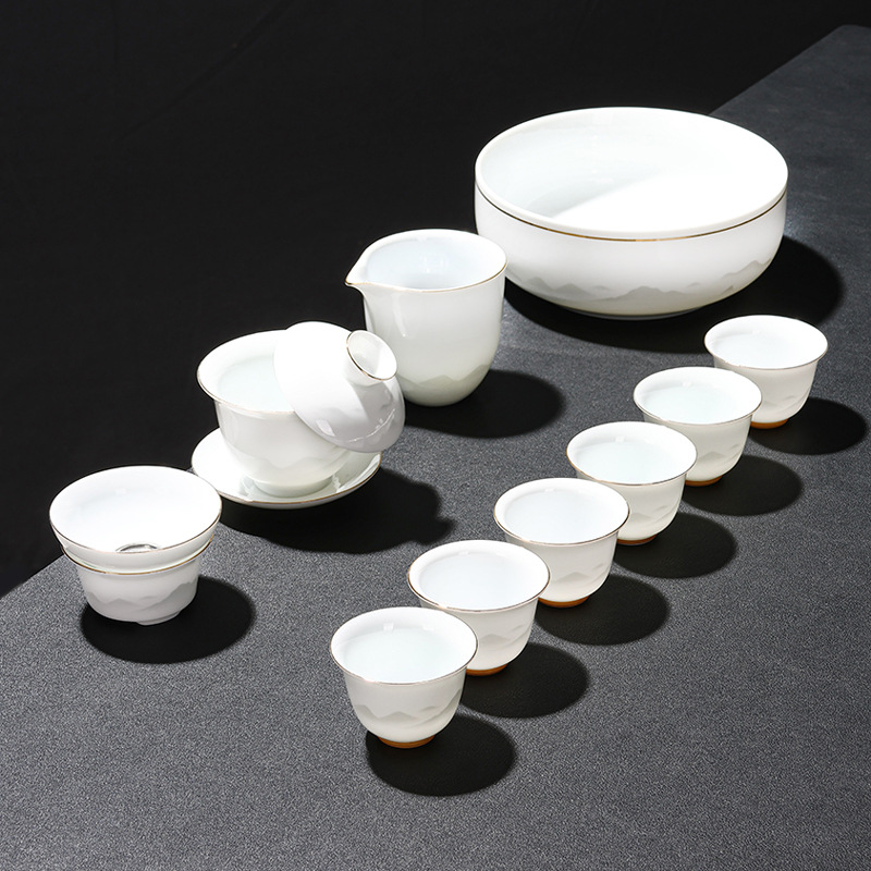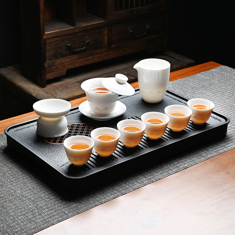 Ice seed sheep fat jade white porcelain tea set, home office ceramic high-end 2024 tea pot Kung Fu gift box set