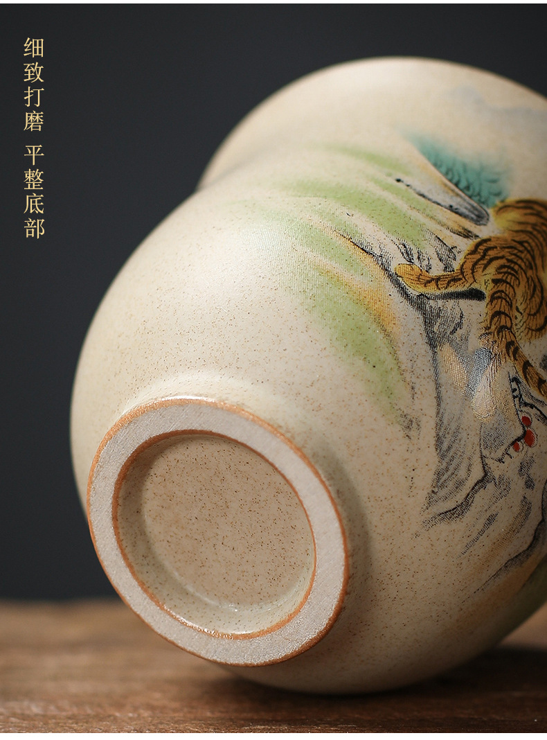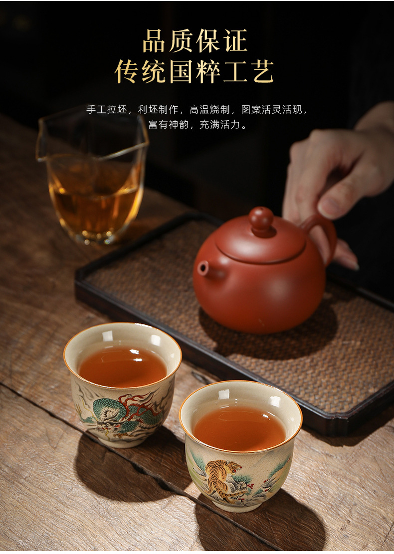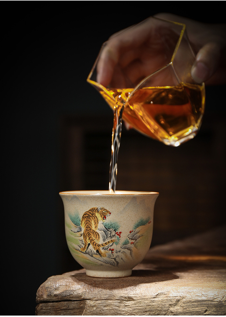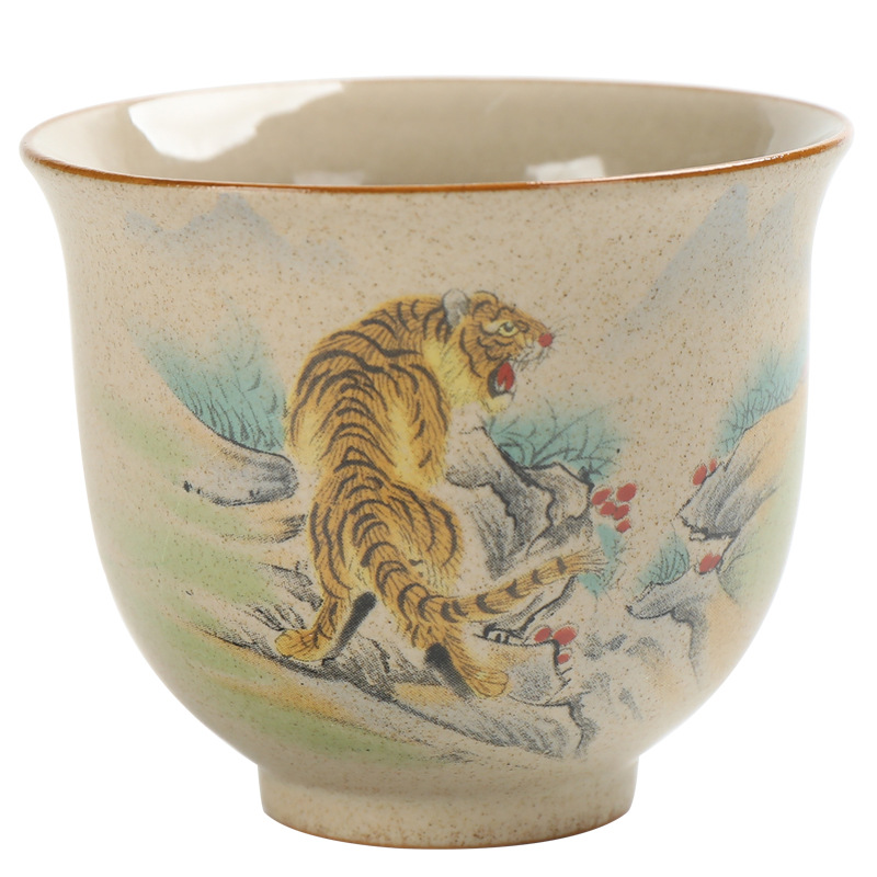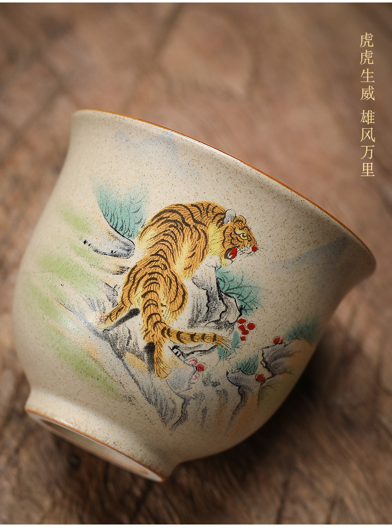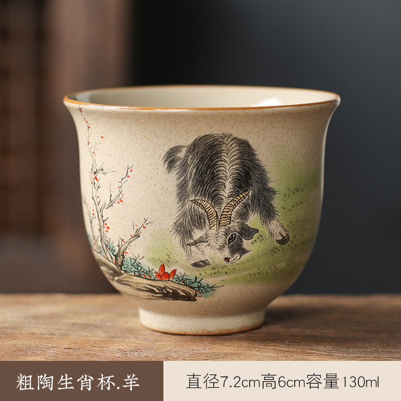 Coarse pottery tea ware, Chinese zodiac tea cup, tea set, retro style, Chinese kung fu tea cup, single cup, master cup