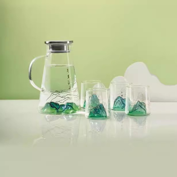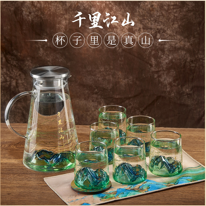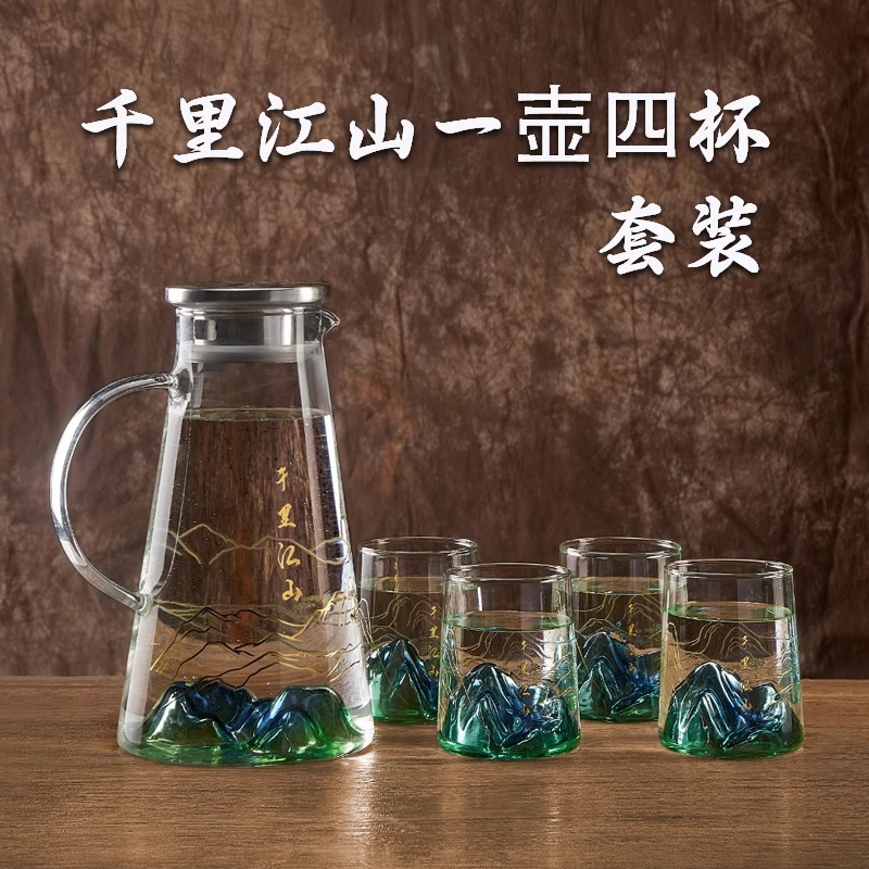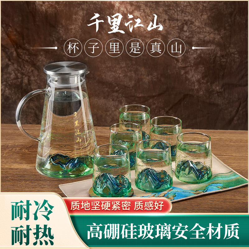 Thousands of miles of rivers and mountains Light luxury China-Chic style mountain view cup Household tea drinking kettle Cup set Wholesale