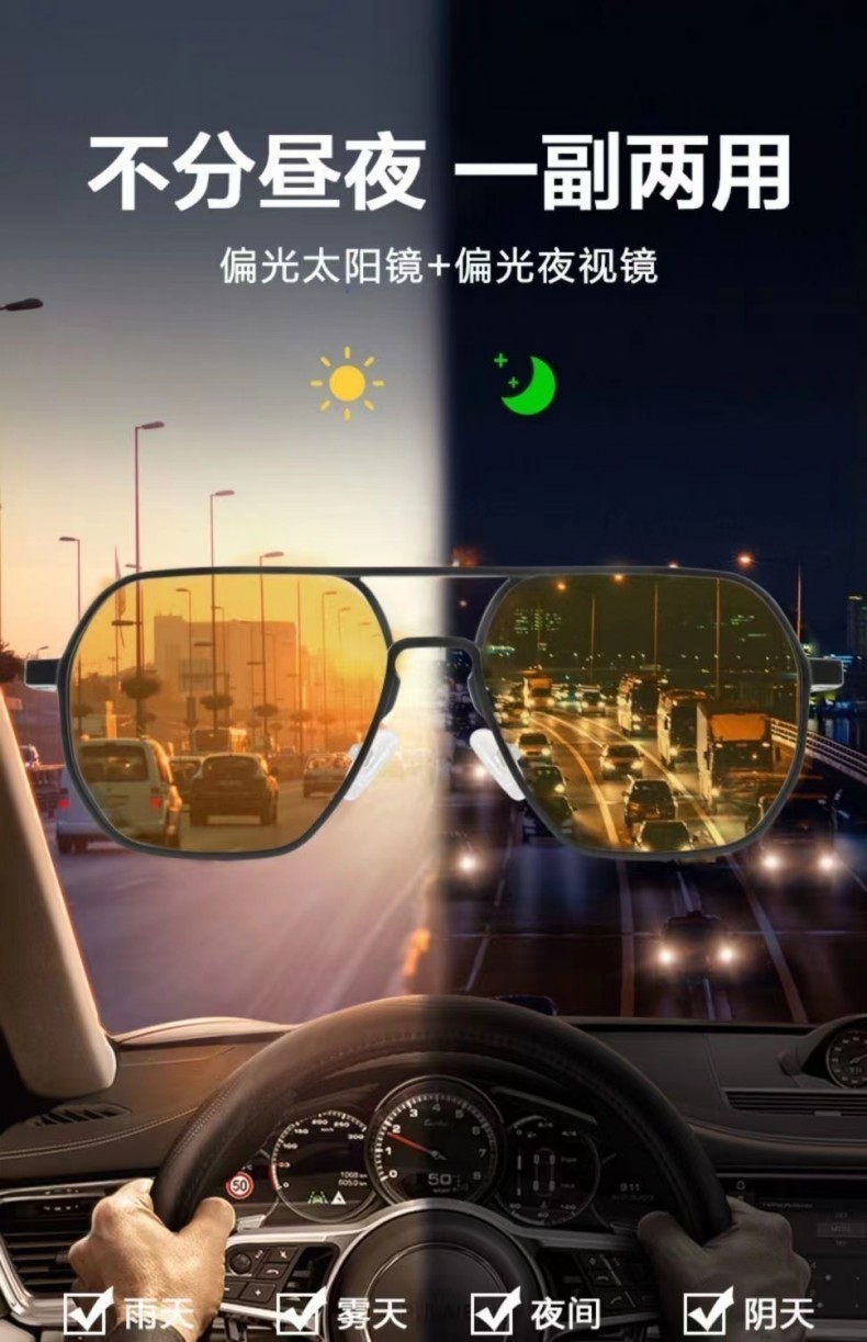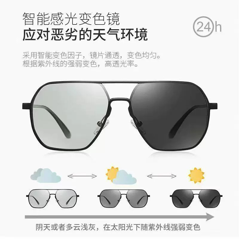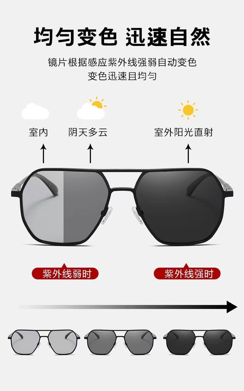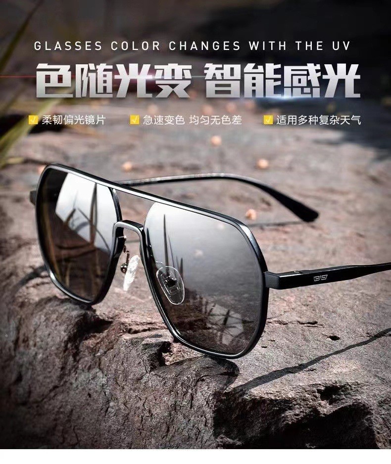 Aluminum magnesium polarized sunglasses UV400 day and night color changing glasses for outdoor driving men's sunglasses with a high-end feel