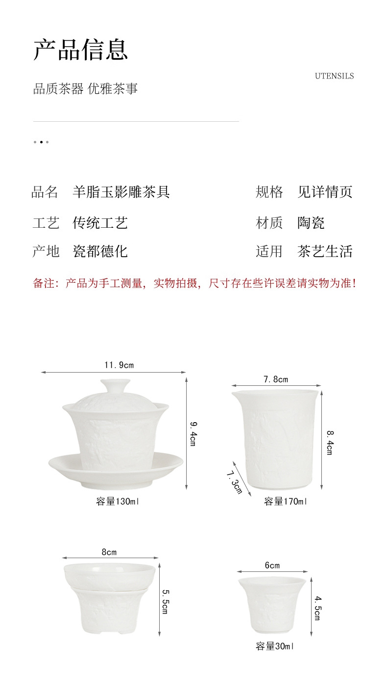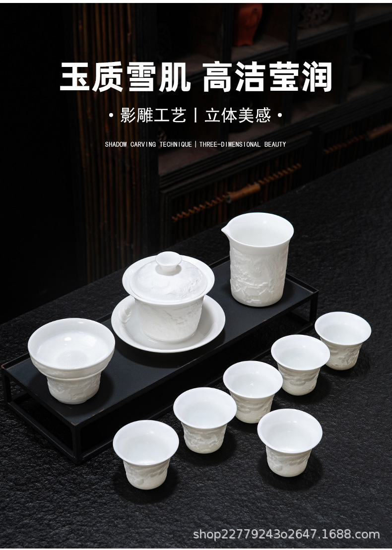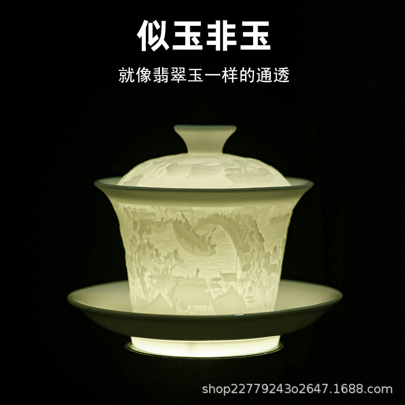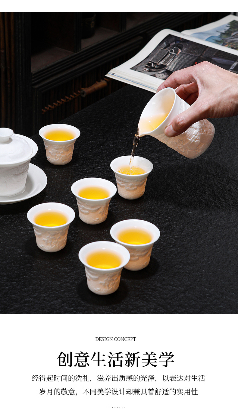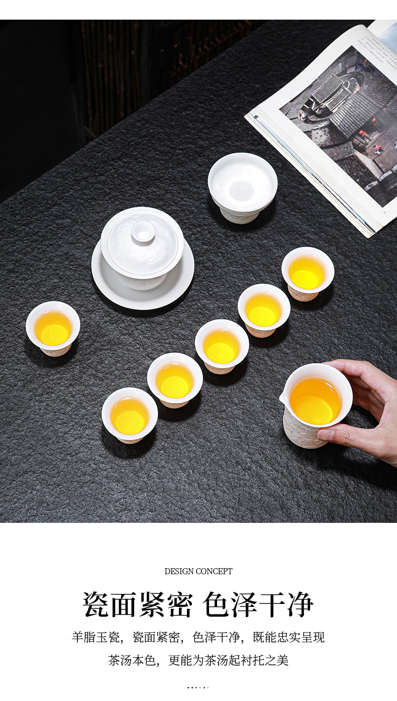 Овчина нефритовый фарфор чистая карта реки Кунг Фу чайный набор домашний рельеф крышка чашка чайная машина чашка офисный подарок