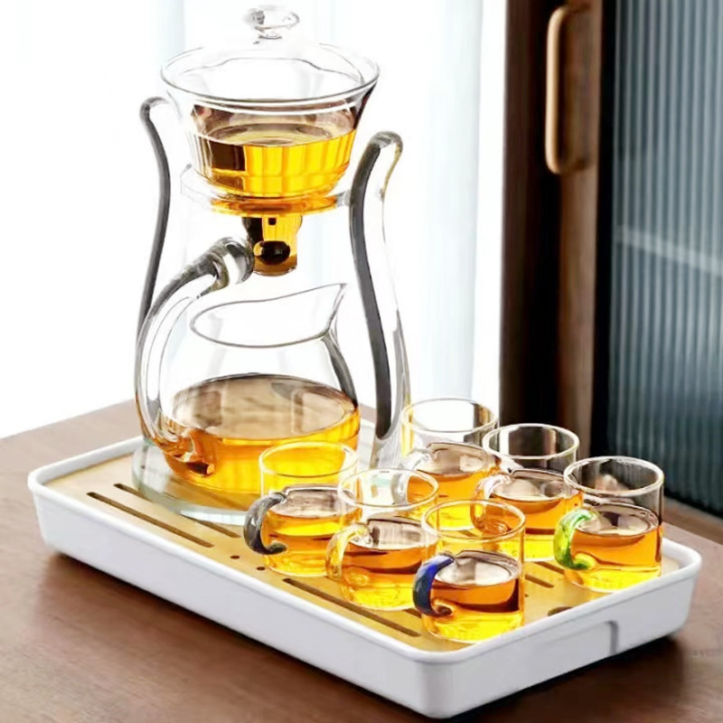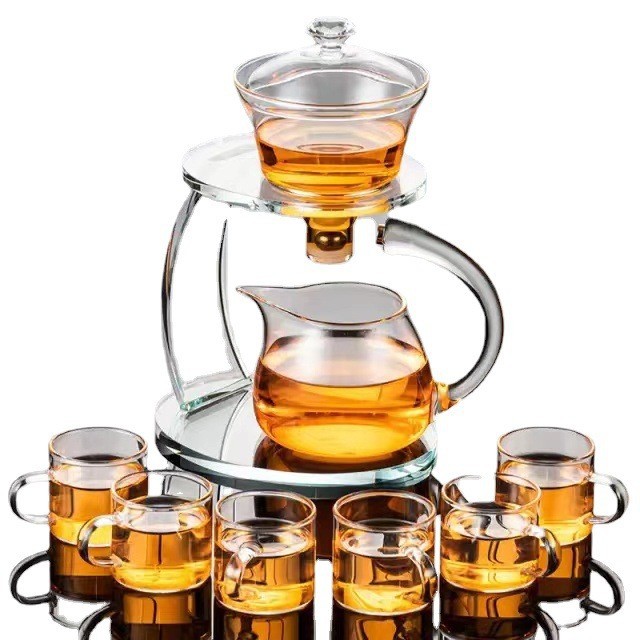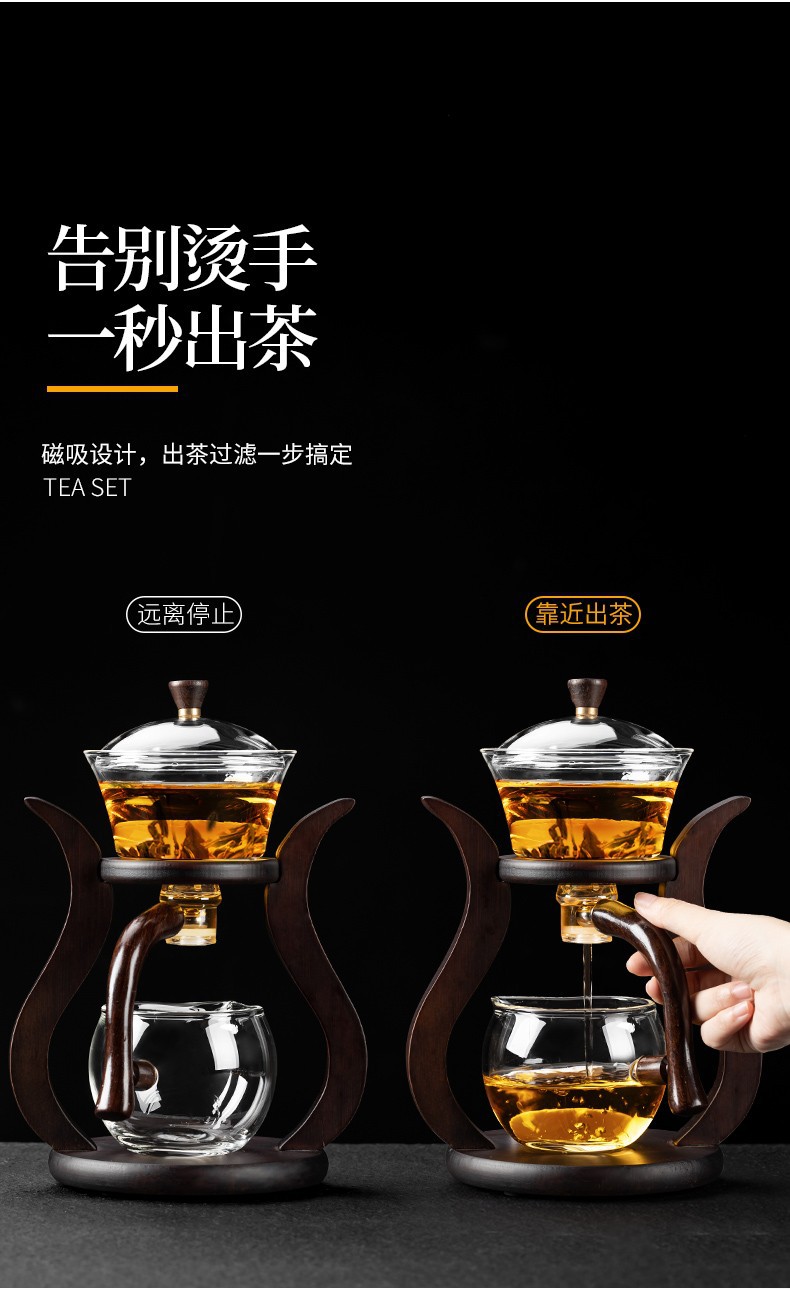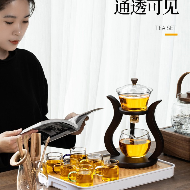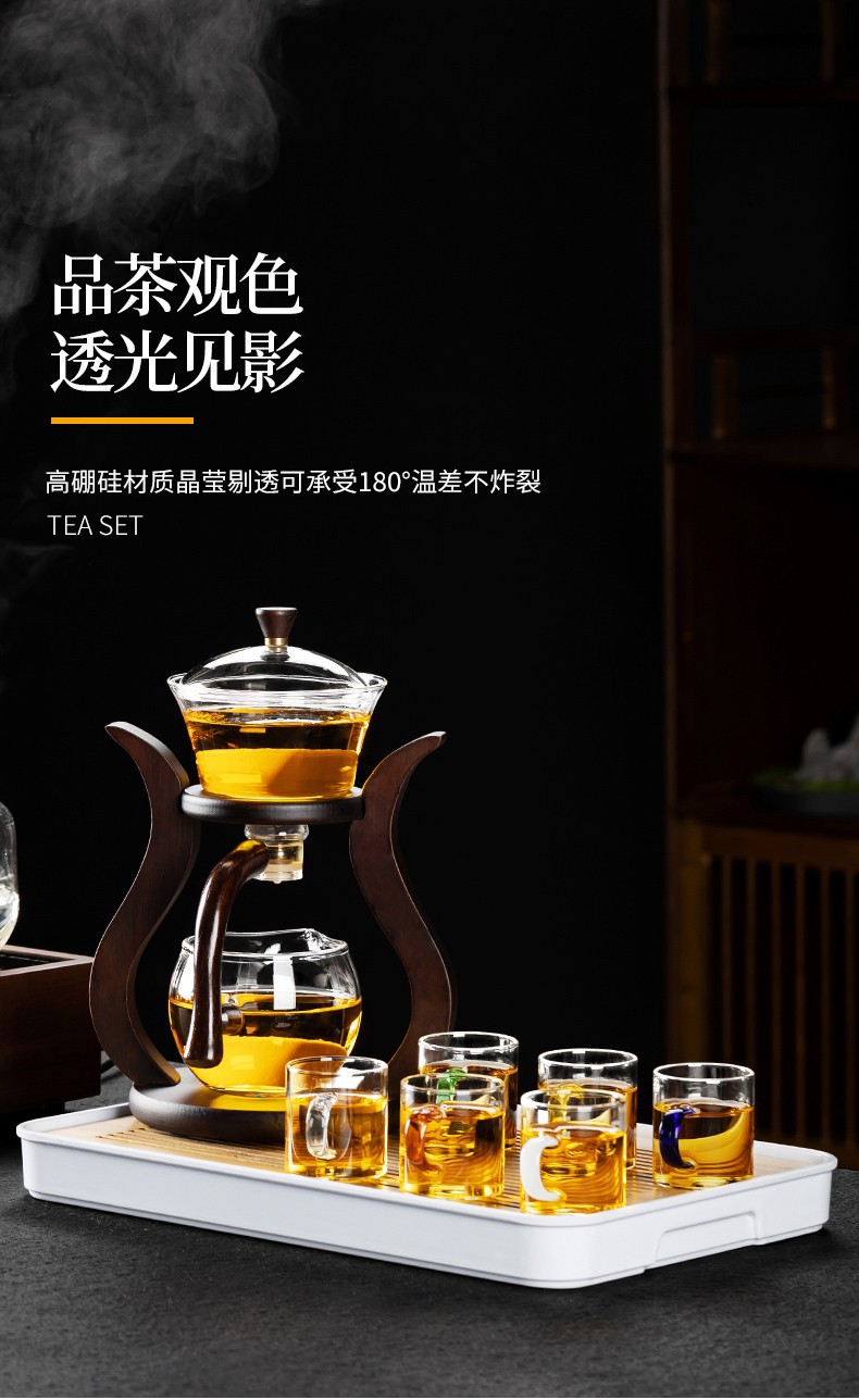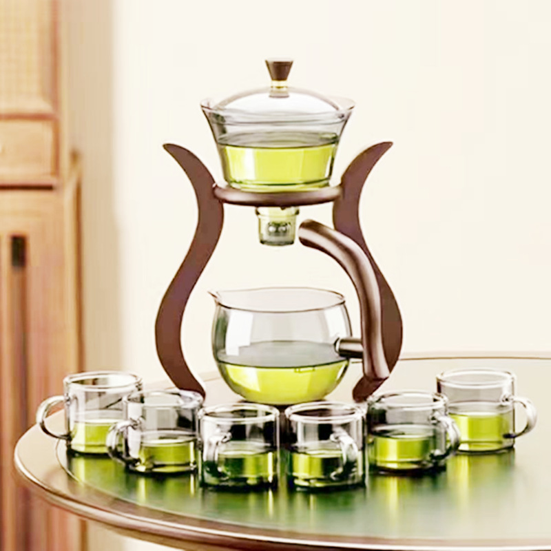 Lazy semi-automatic palace lantern tea set, glass Japanese style tea maker, magnetic suction household kung fu tea brewing set, gift box