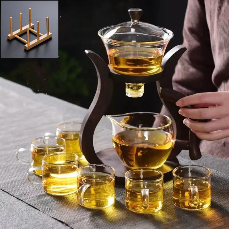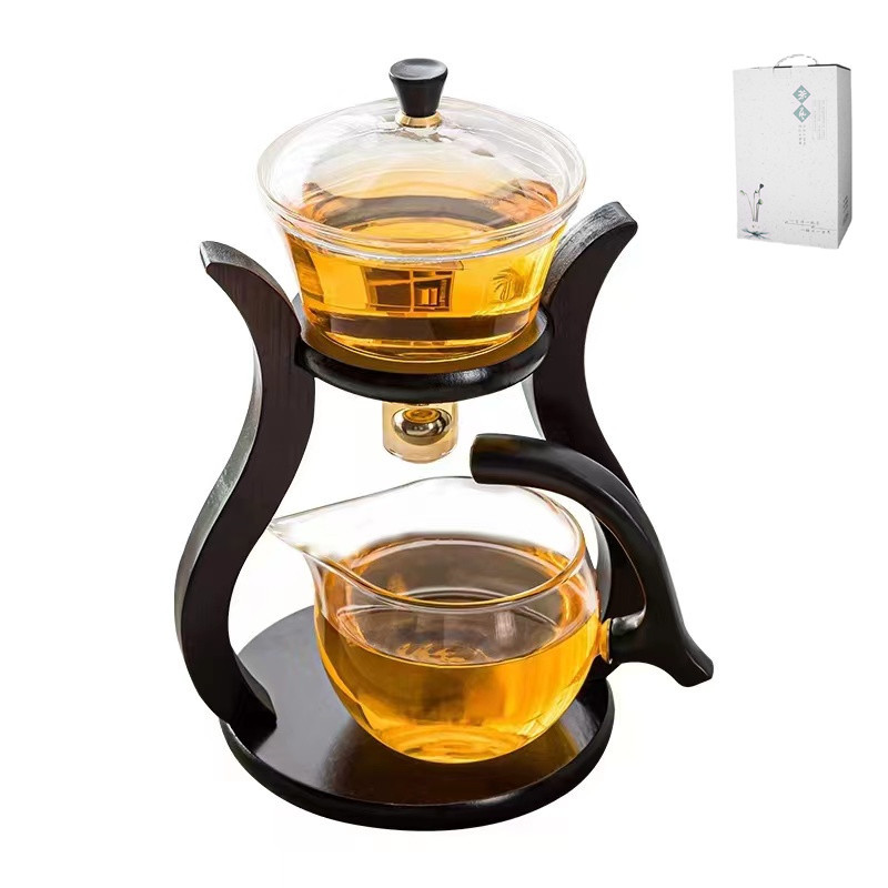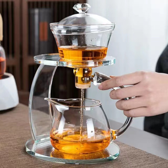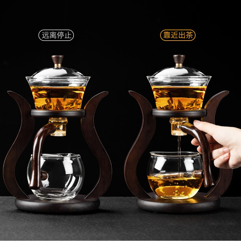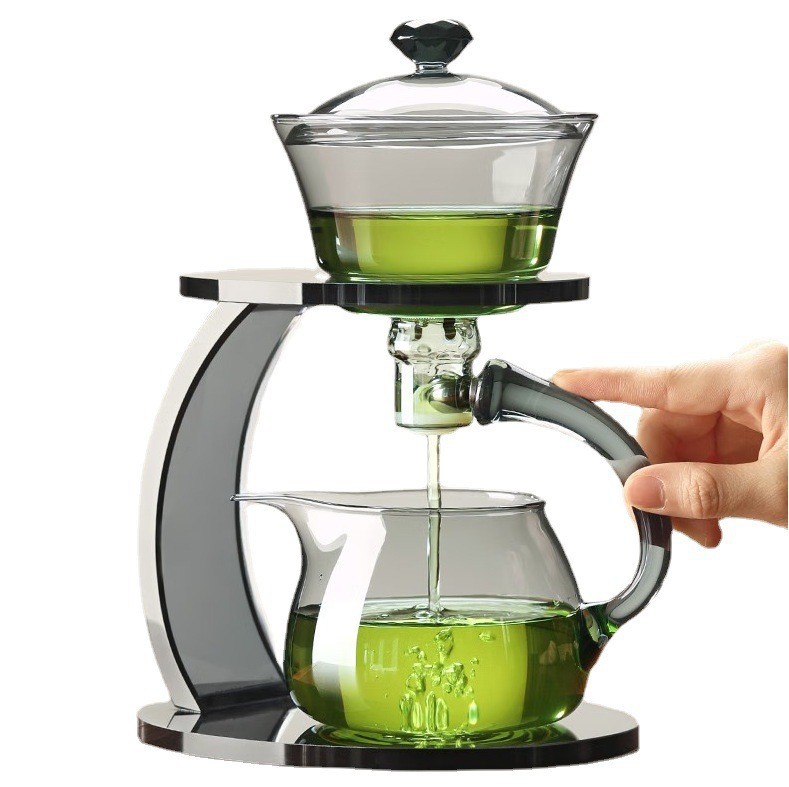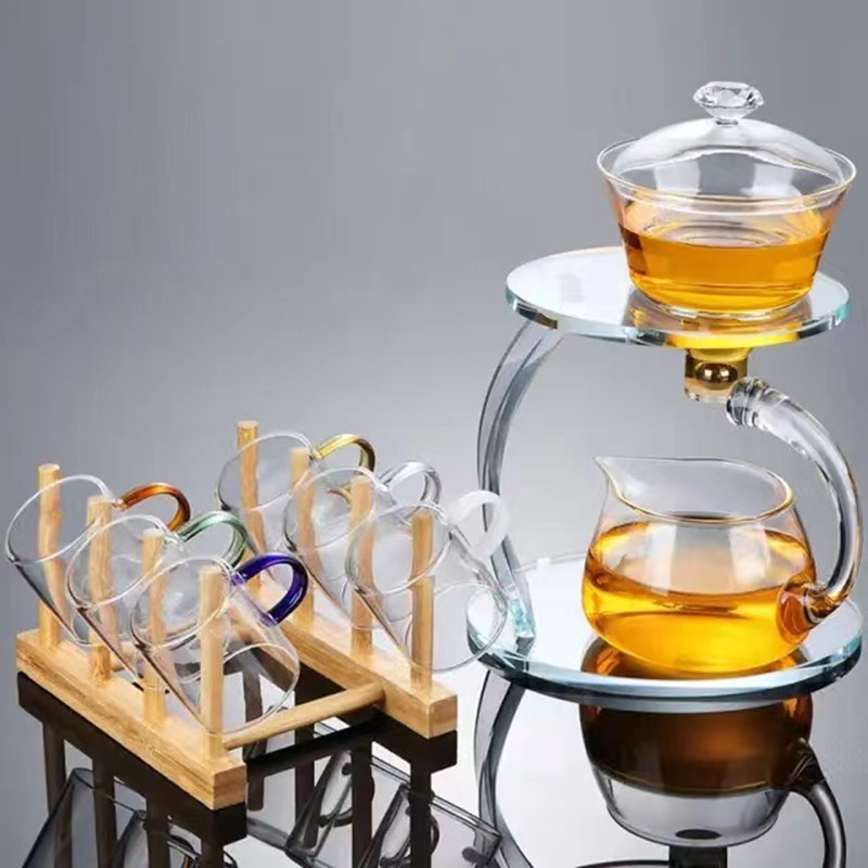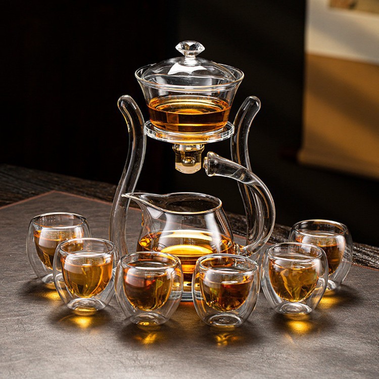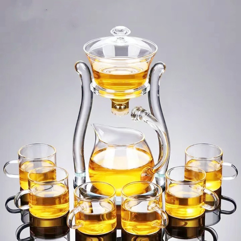 Lazy semi-automatic palace lantern tea set, glass Japanese style tea maker, magnetic suction household kung fu tea brewing set, gift box