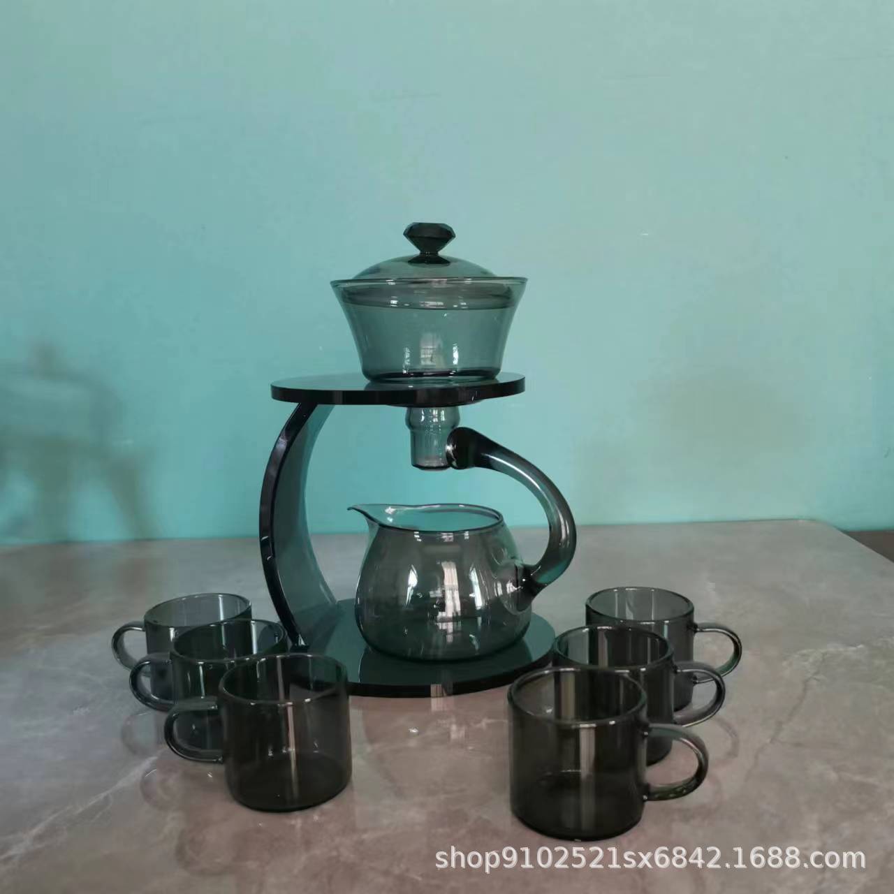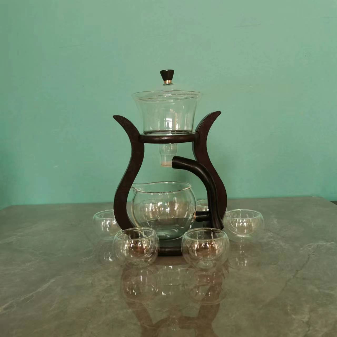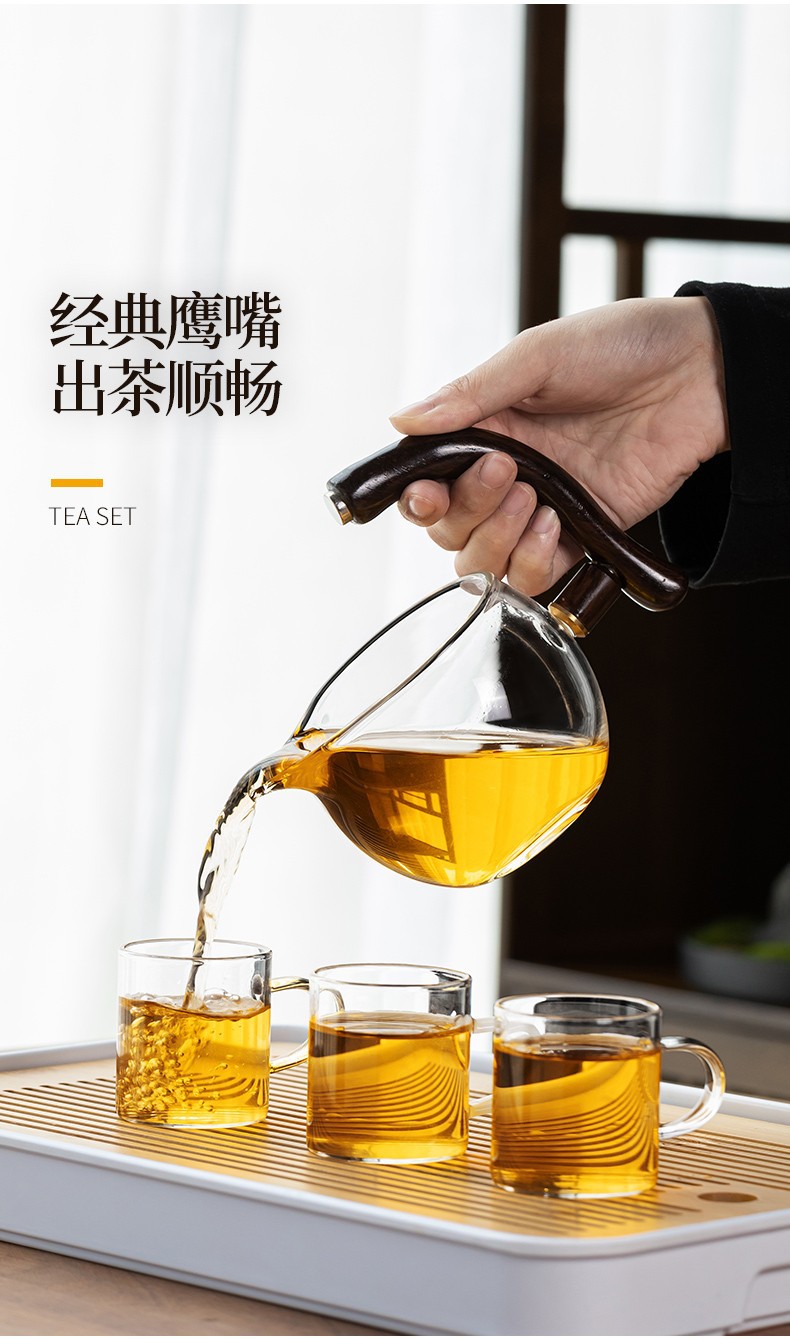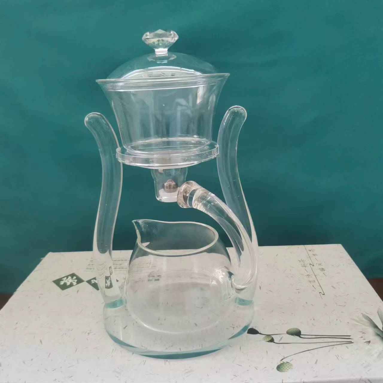 Lazy semi-automatic palace lantern tea set, glass Japanese style tea maker, magnetic suction household kung fu tea brewing set, gift box