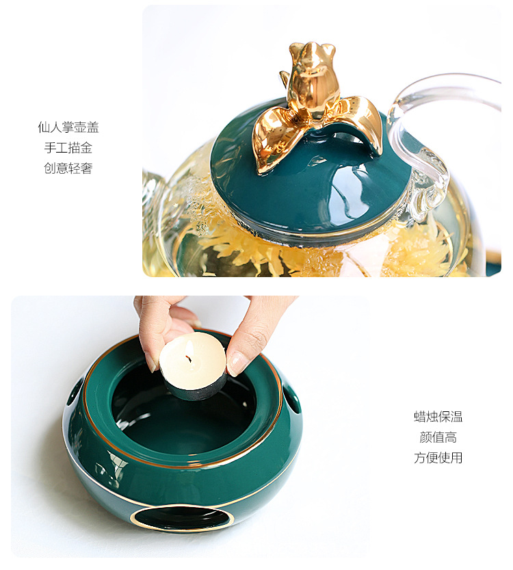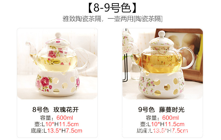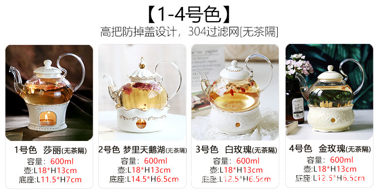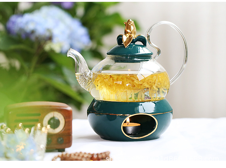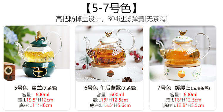 Чайник, чайник, свечи, подогреватель основания, термостойкий стеклянный костюм, послеобеденный чай, фруктовый чайник.