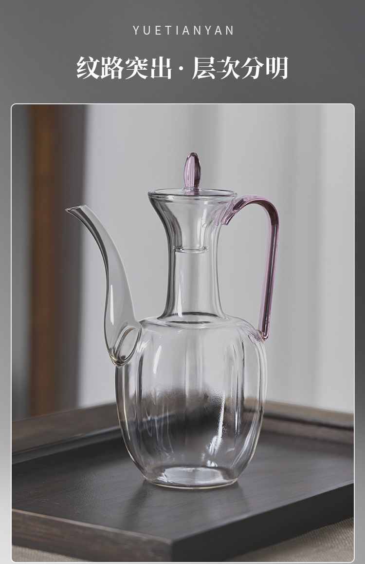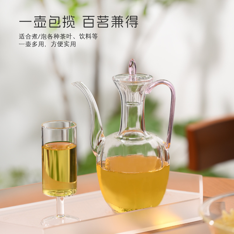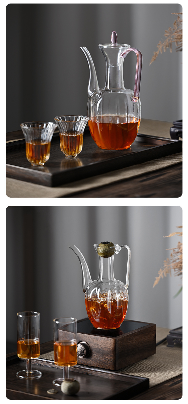 Boiling tea, steeping green tea pot, high borosilicate noble concubine transparent point tea glass hand-held pot tea set, warm wine pot handmade