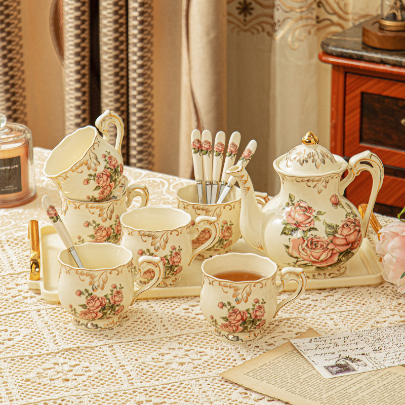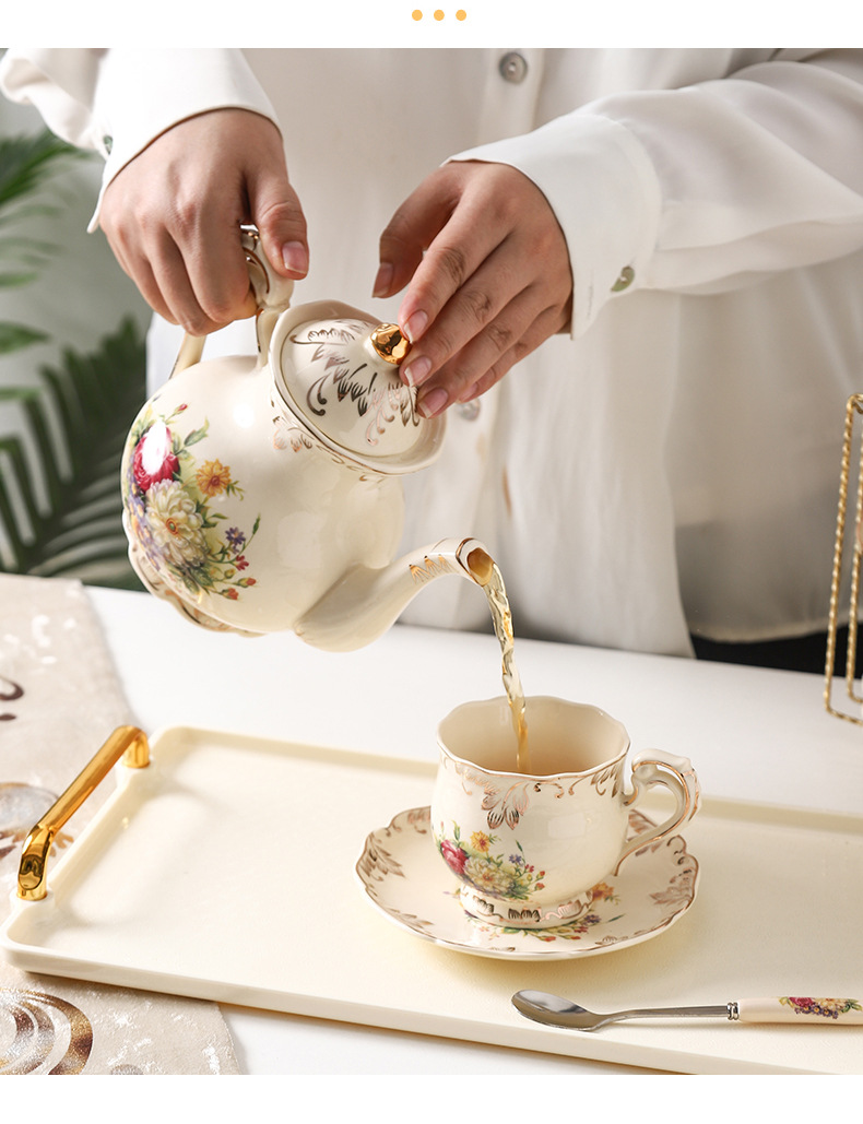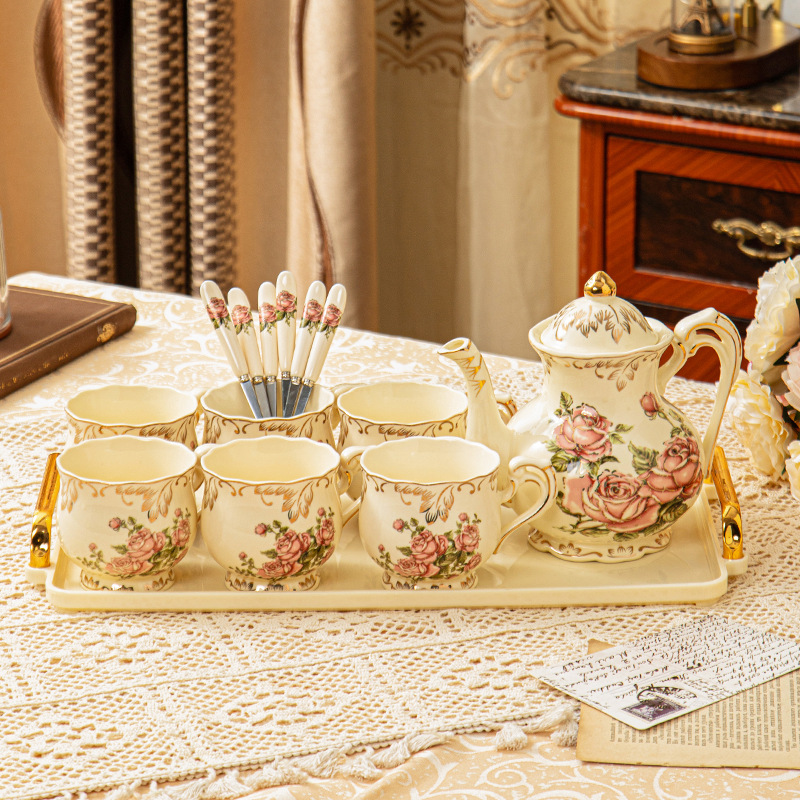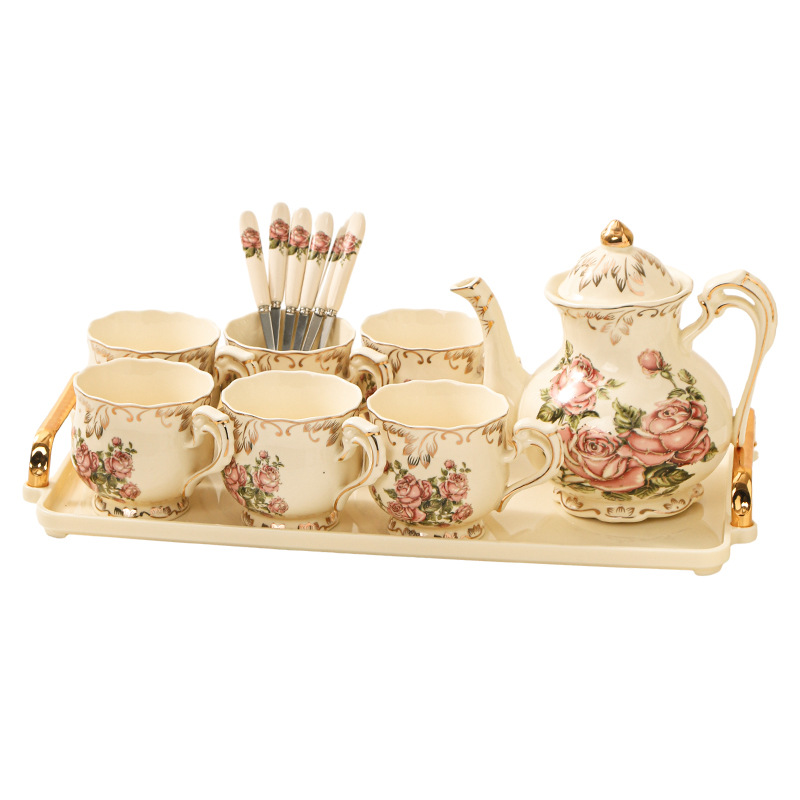 European style coffee cup set, English afternoon tea set, flower tea cup, exquisite household ceramic water cup, wedding water set
