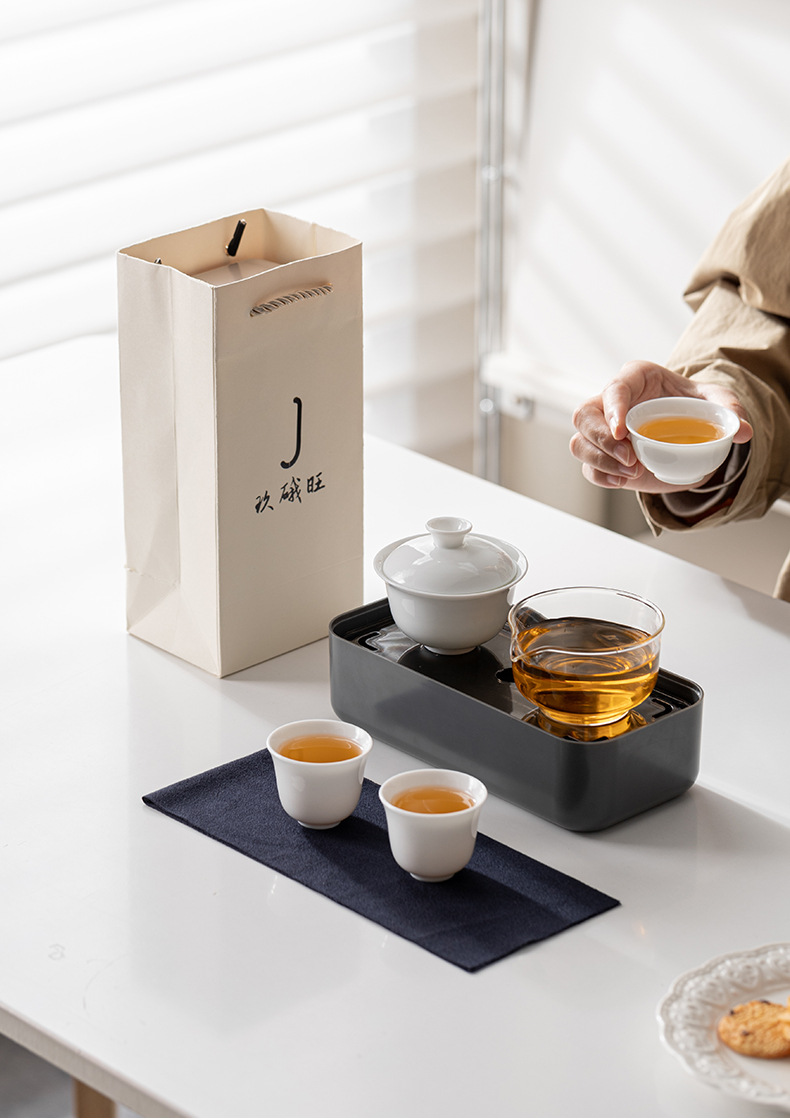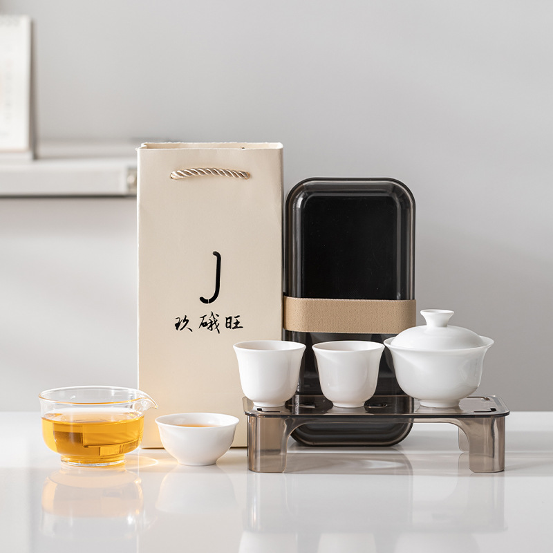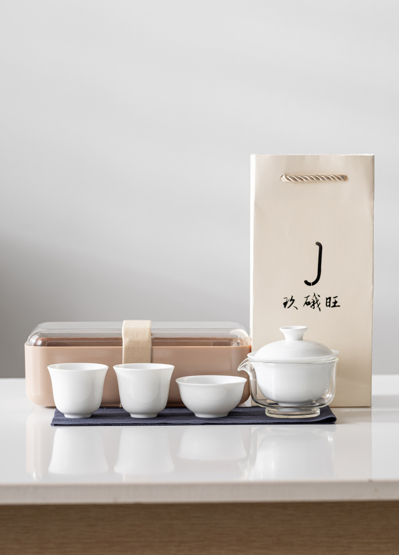Дехуа белый фарфор на открытом воздухе портативный чайный сервиз набор керамический кунг - фу чайный сервиз ежегодное собрание мероприятия с подарочным логотипом