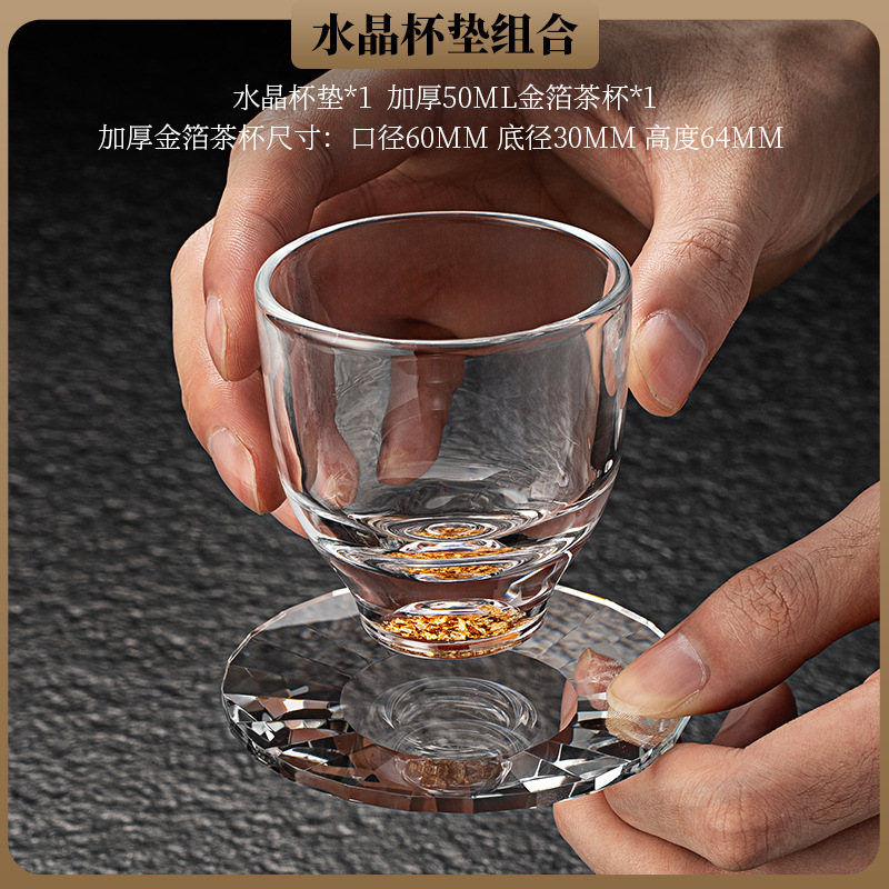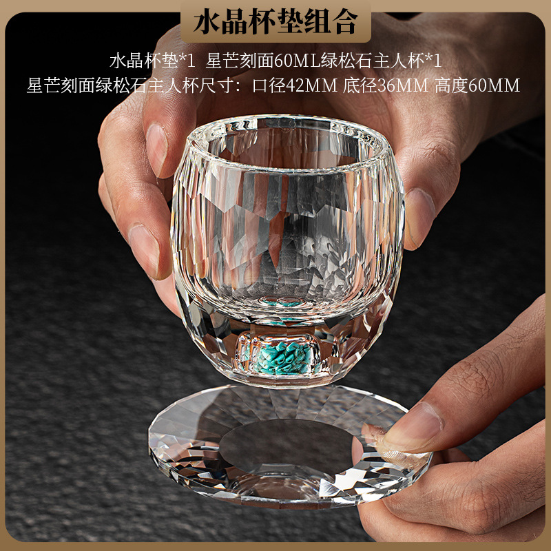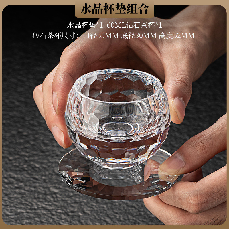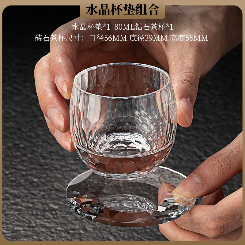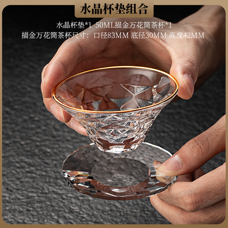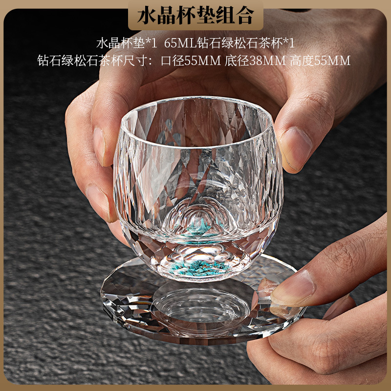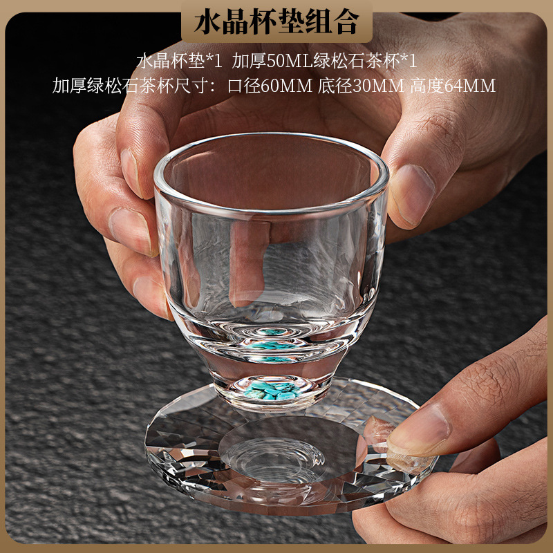 High end crystal glass colored tea cup with coaster, host cup, guest cup, Kung Fu tea cup, heat-resistant tea set