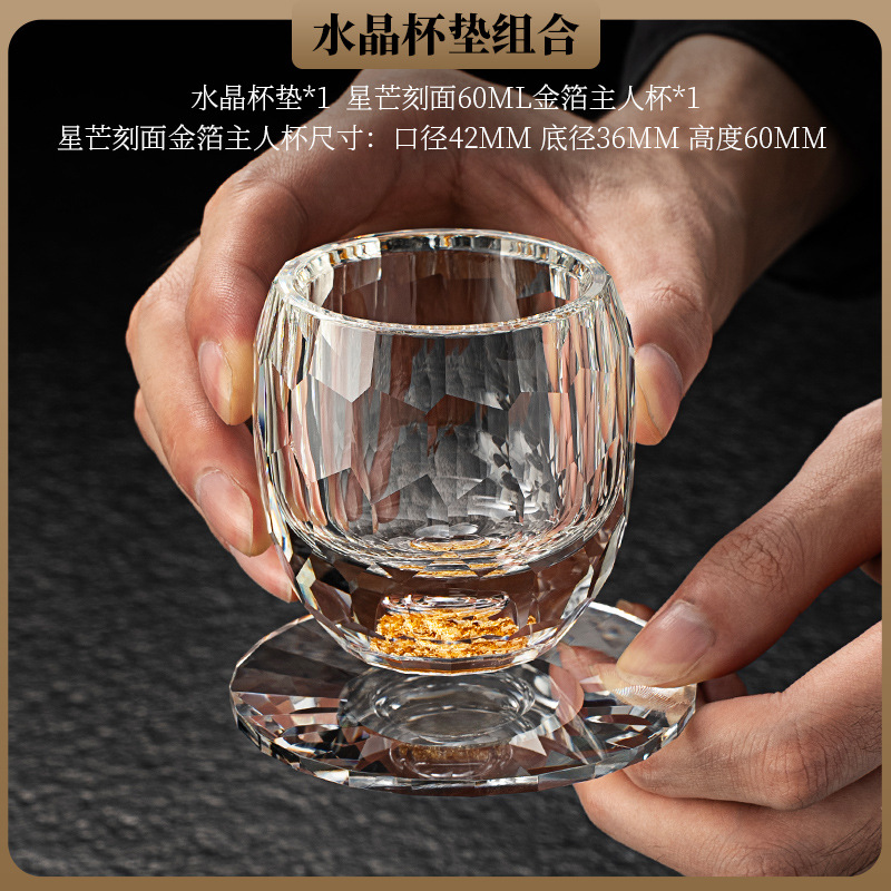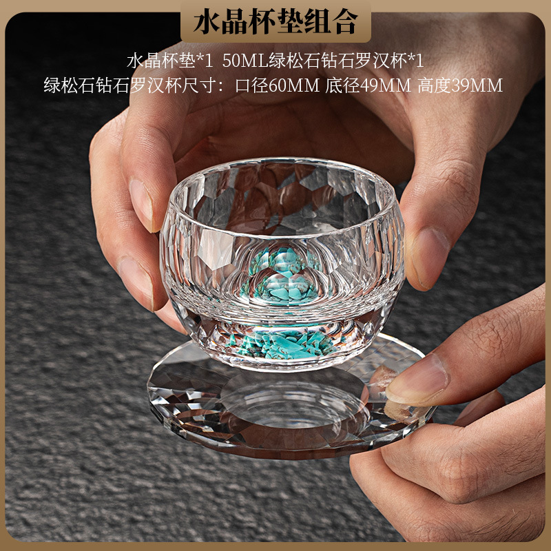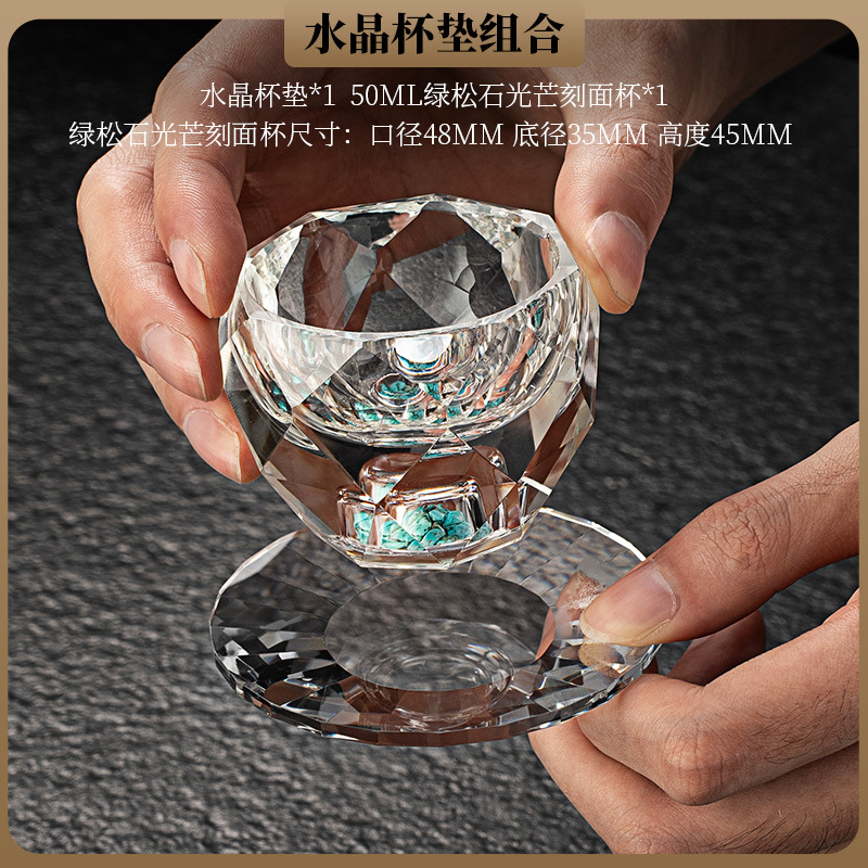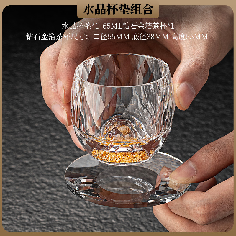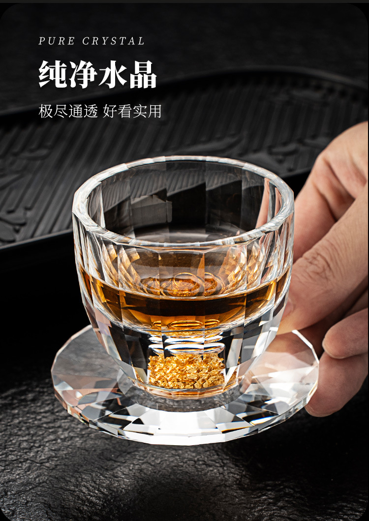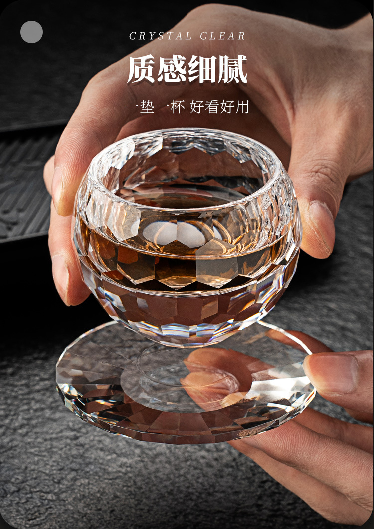 High end crystal glass colored tea cup with coaster, host cup, guest cup, Kung Fu tea cup, heat-resistant tea set