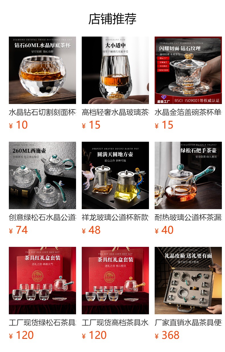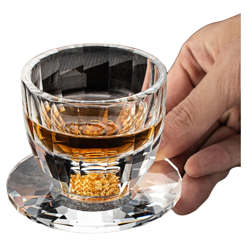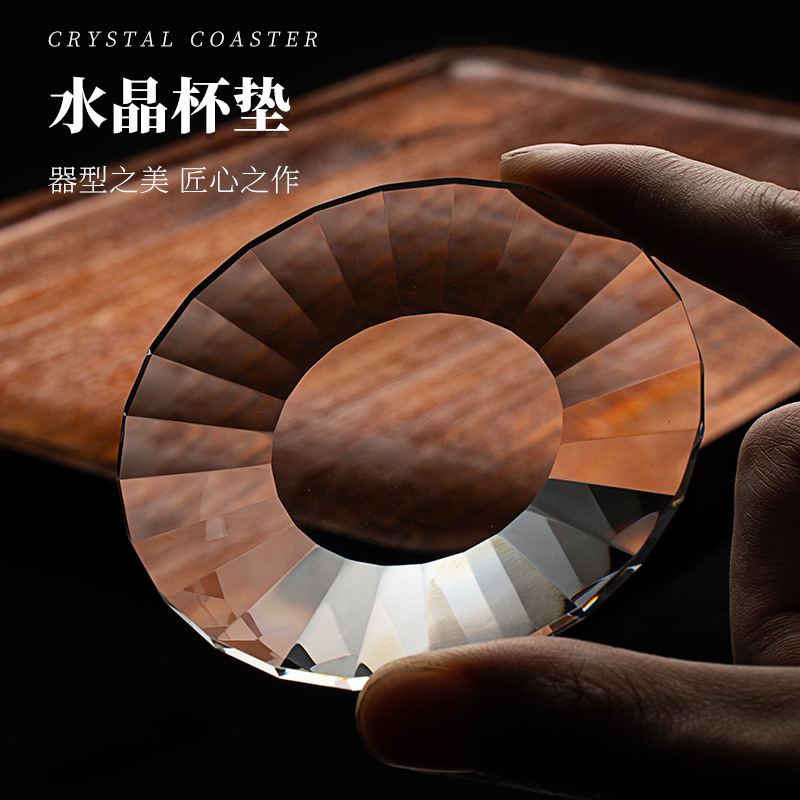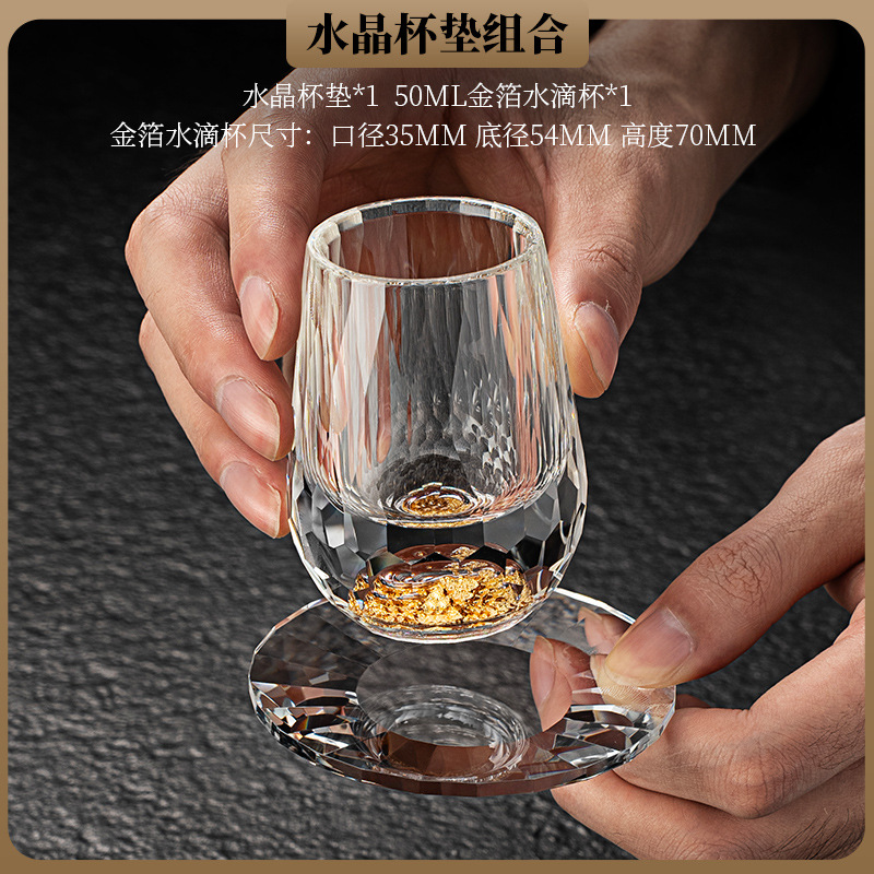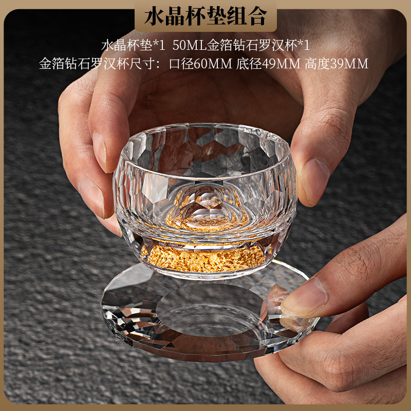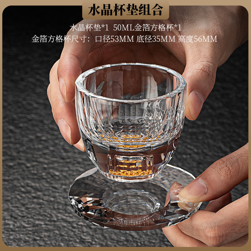 High end crystal glass colored tea cup with coaster, host cup, guest cup, Kung Fu tea cup, heat-resistant tea set