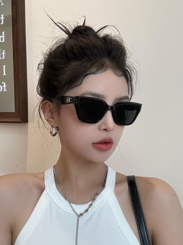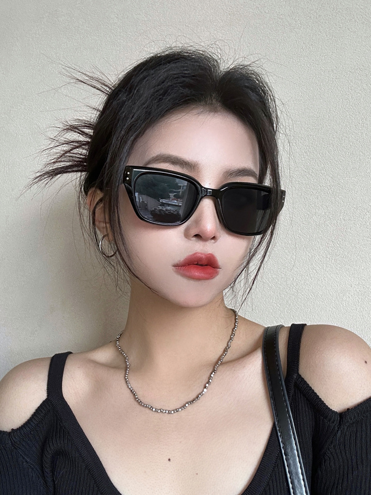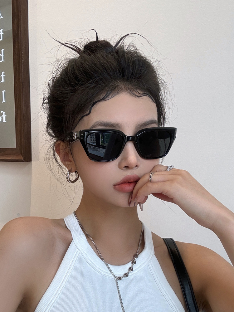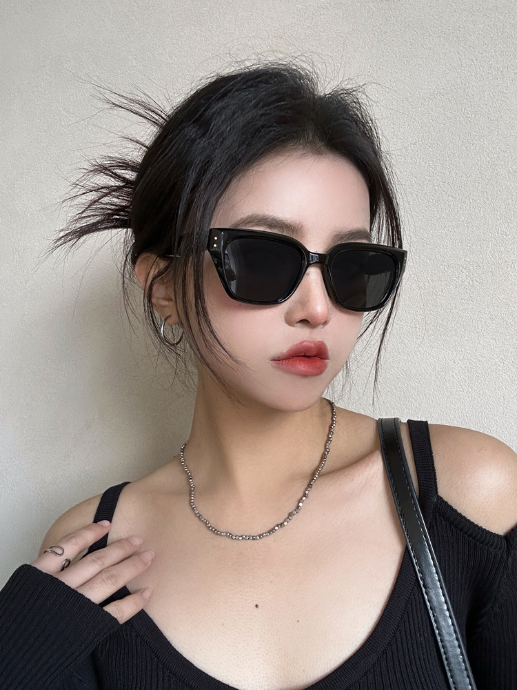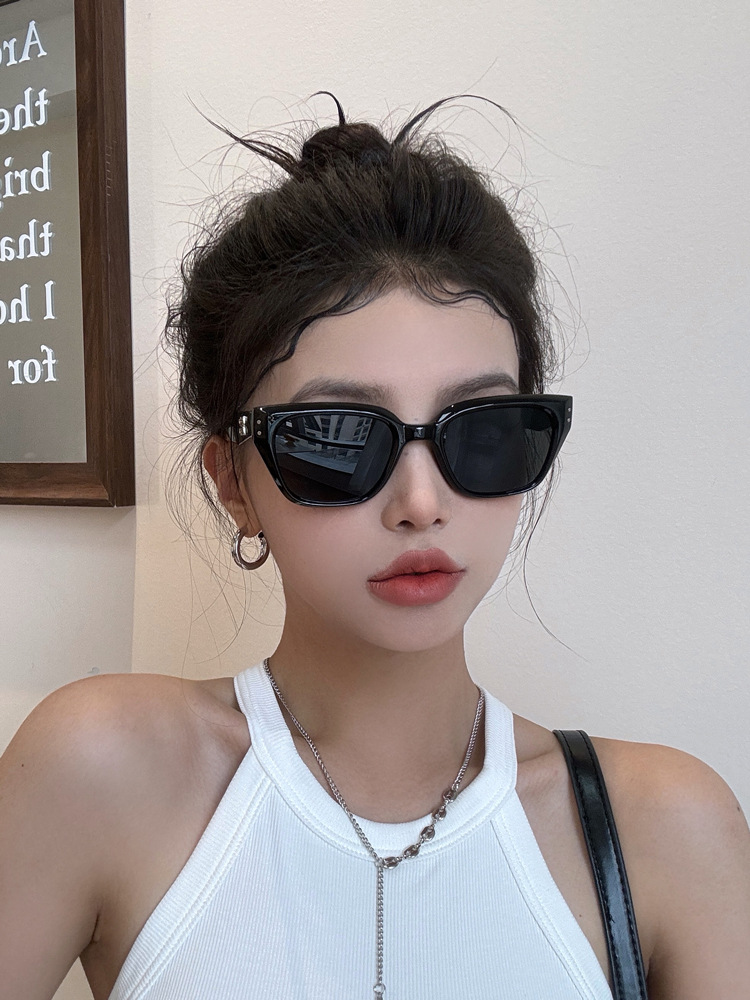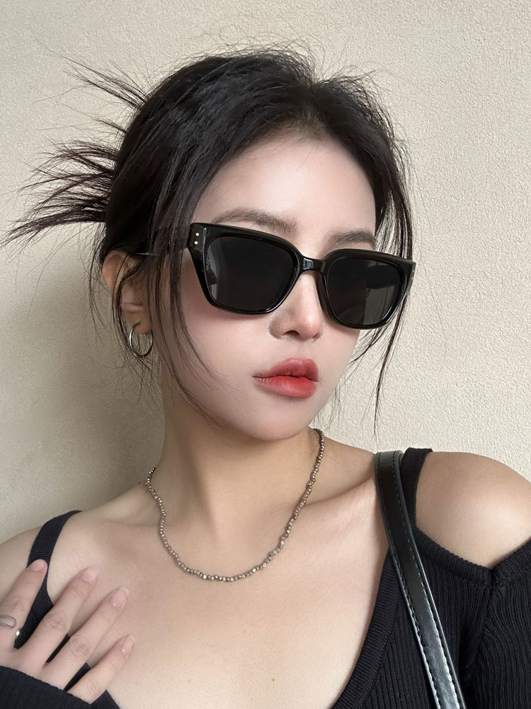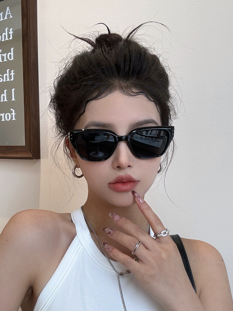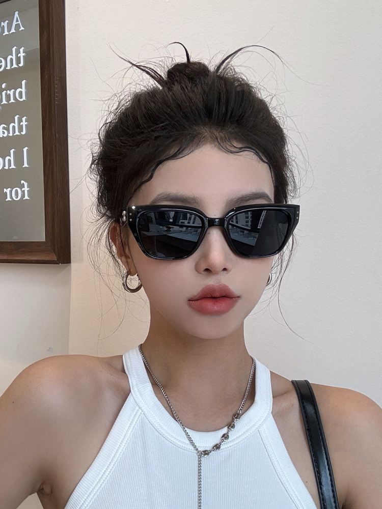 Cat's Eye Sunglasses for Women, High end and Small Face 2025 New Square Round Face Black Retro European and American Style Sunglasses