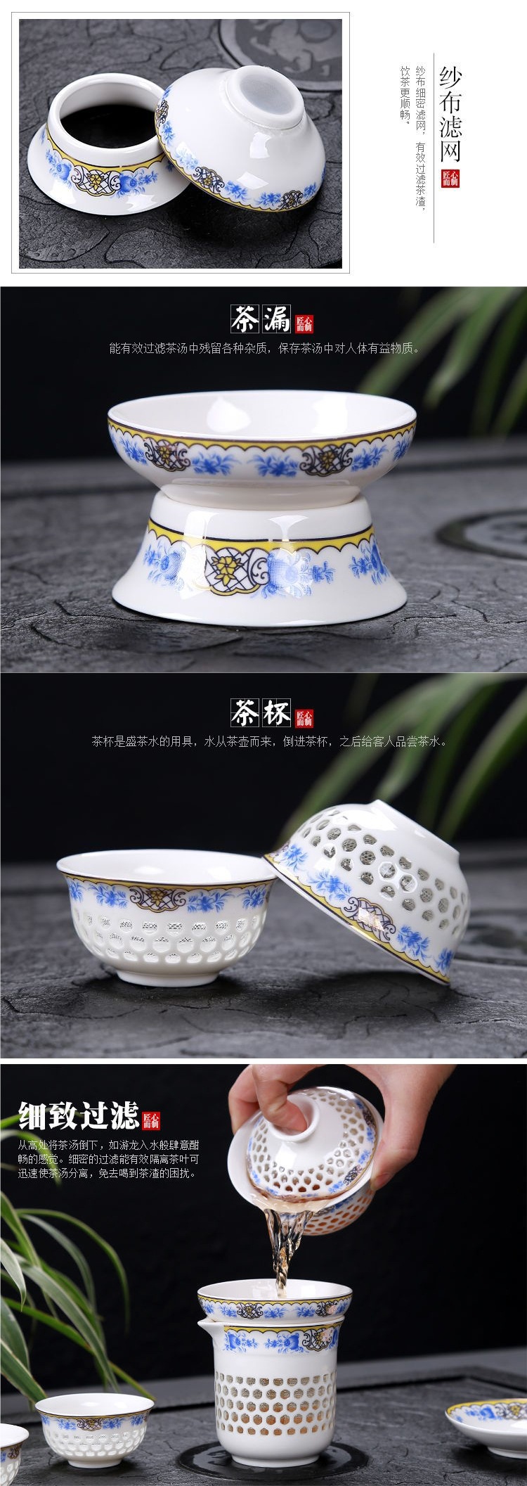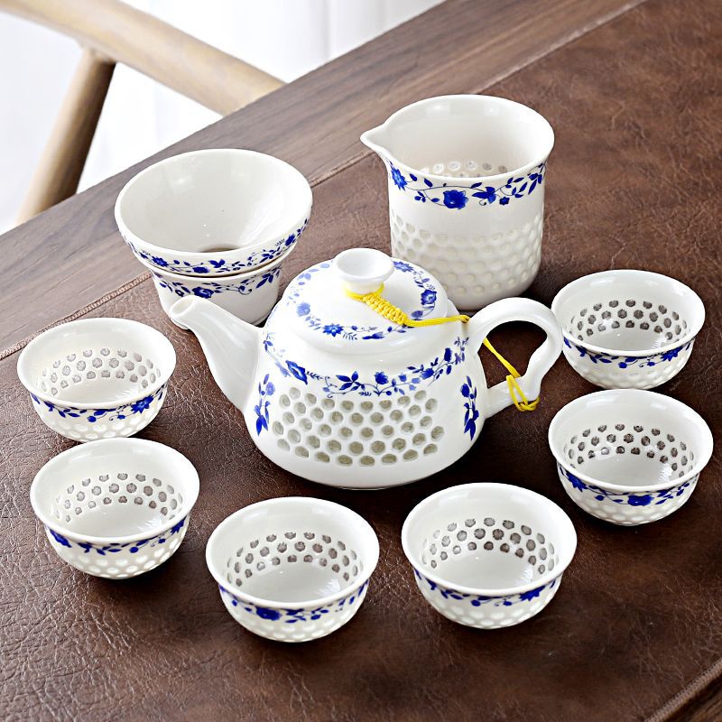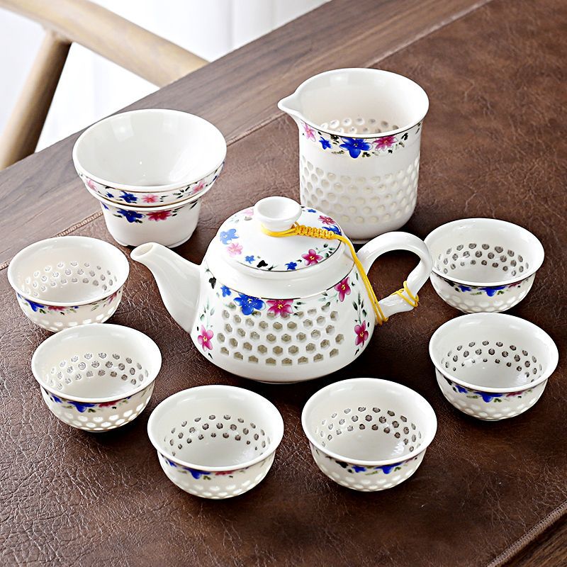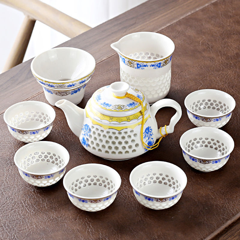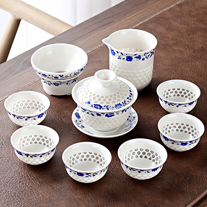 玲珑茶具套装家用客厅陶瓷蜂窝镂空盖碗泡茶杯待客办公室