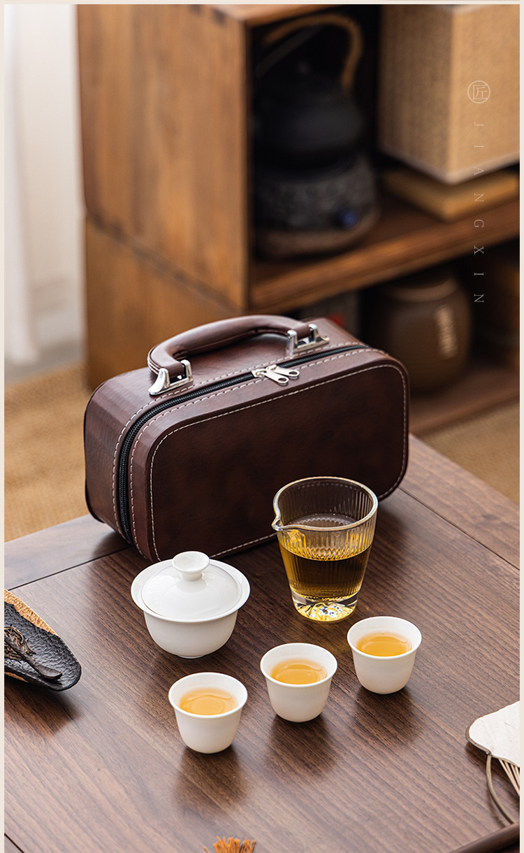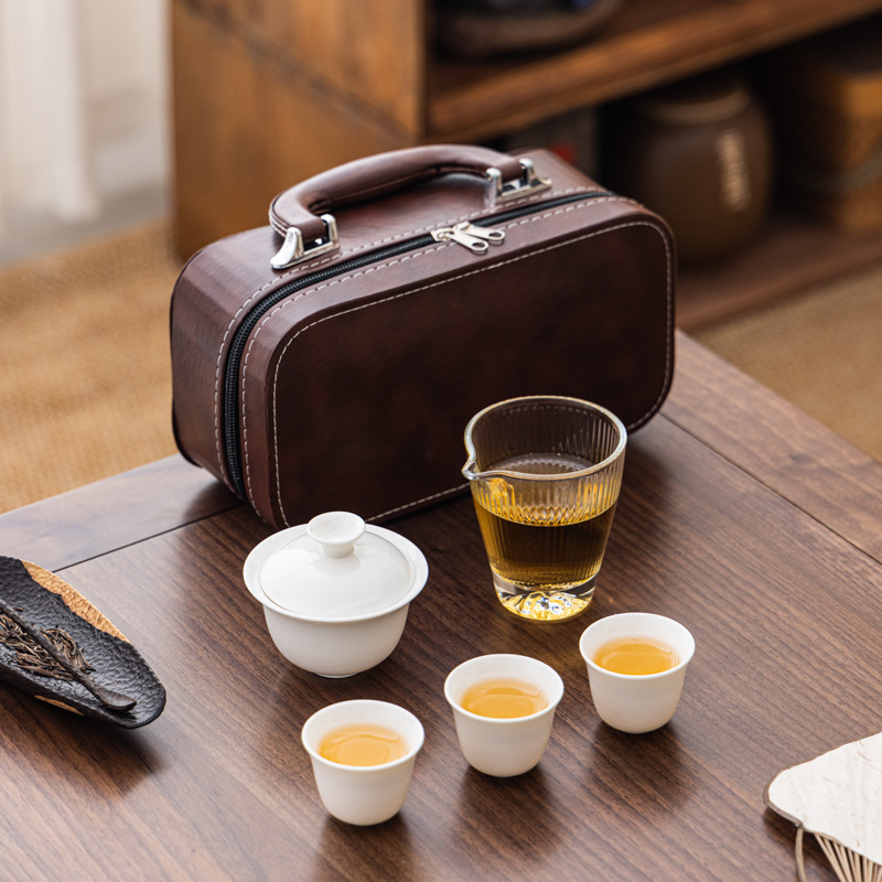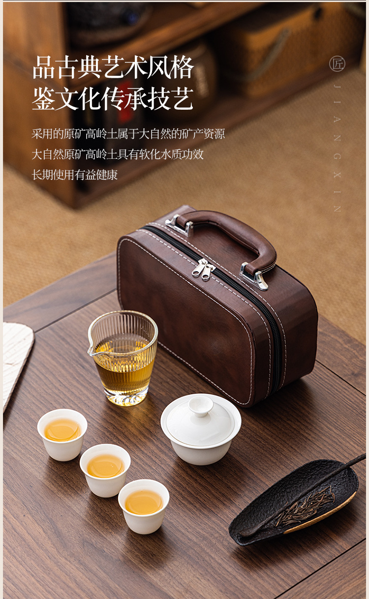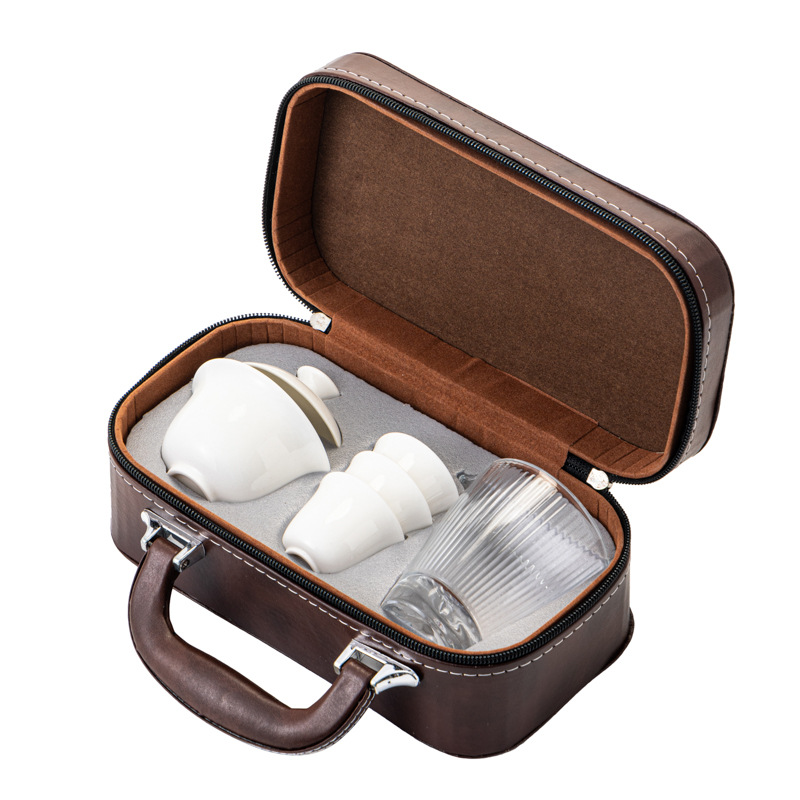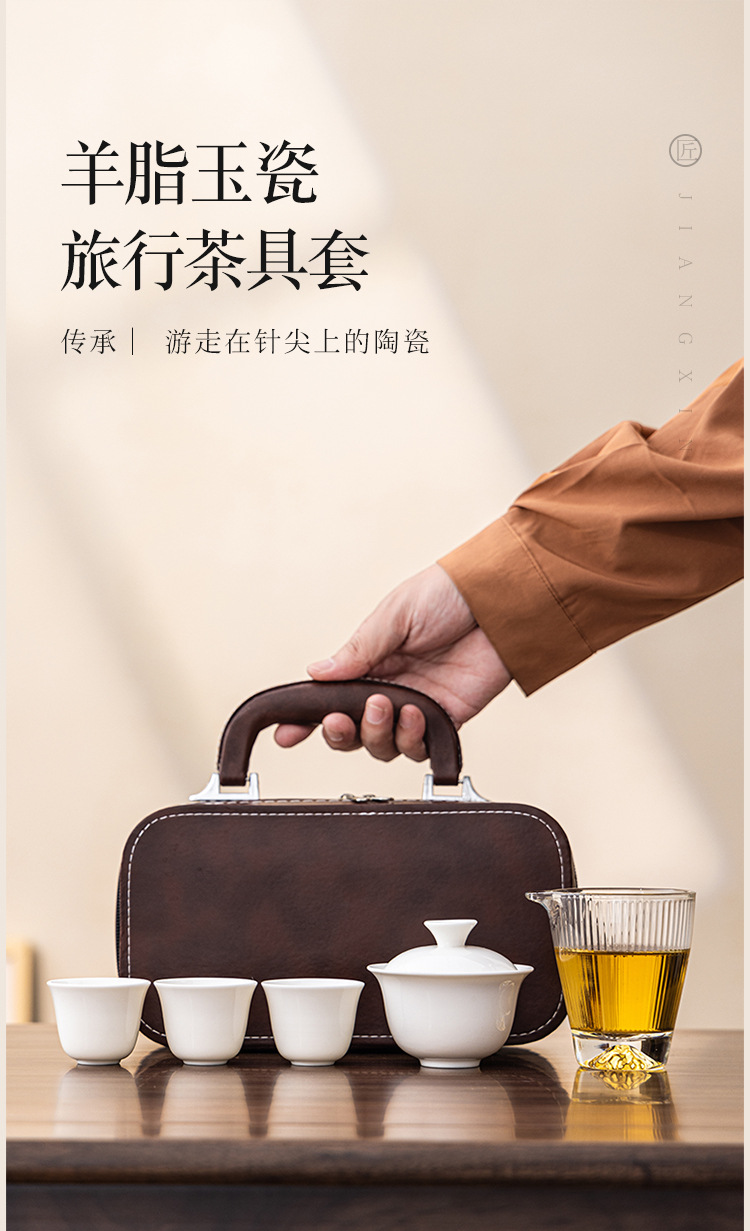 Customized sheep fat jade travel tea set, outdoor camping set, Kuaike portable business gift set, complete set with printable logo