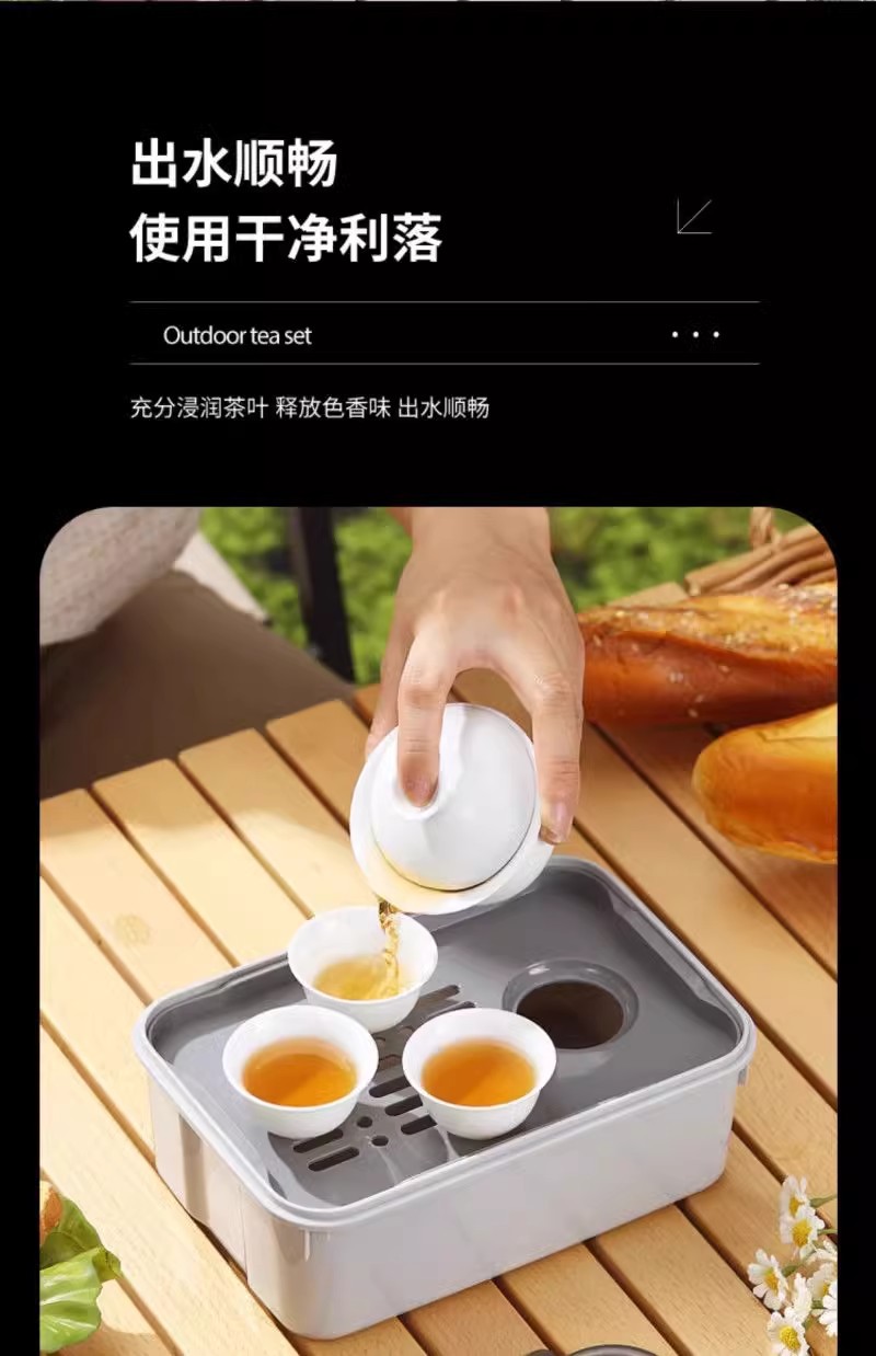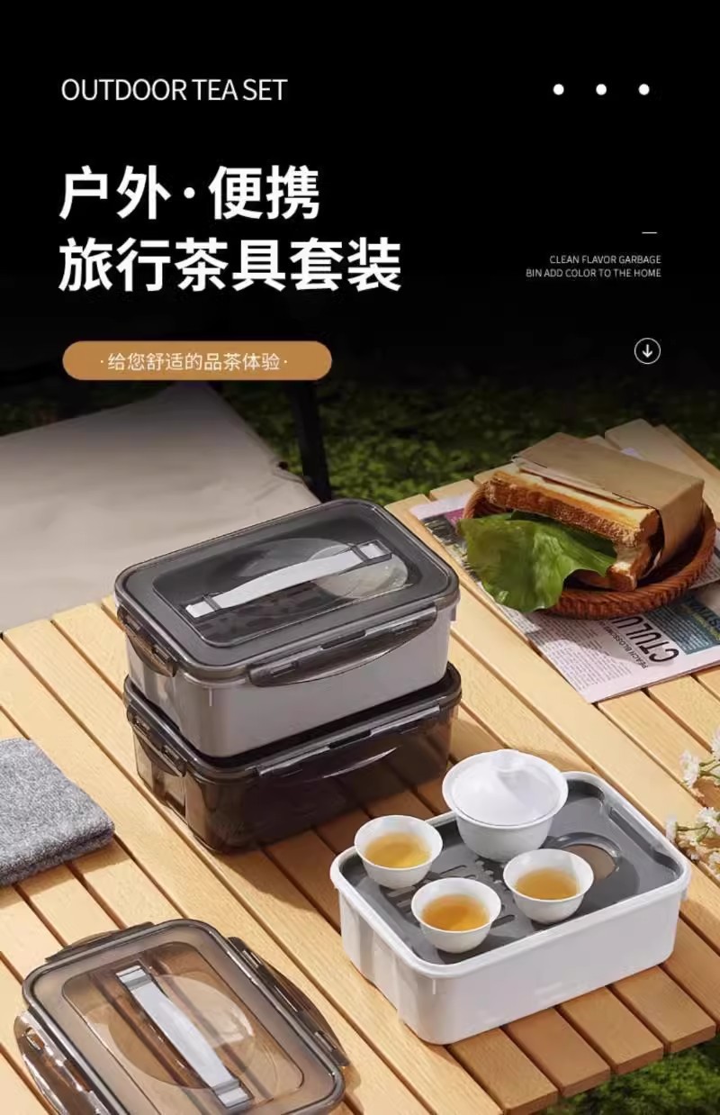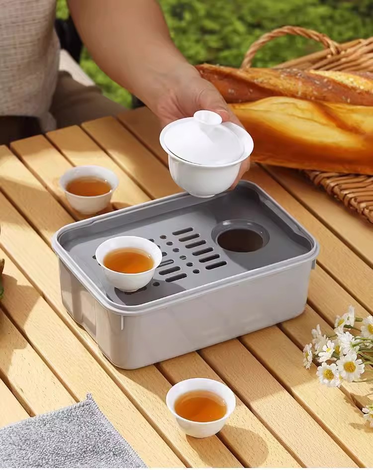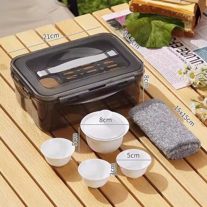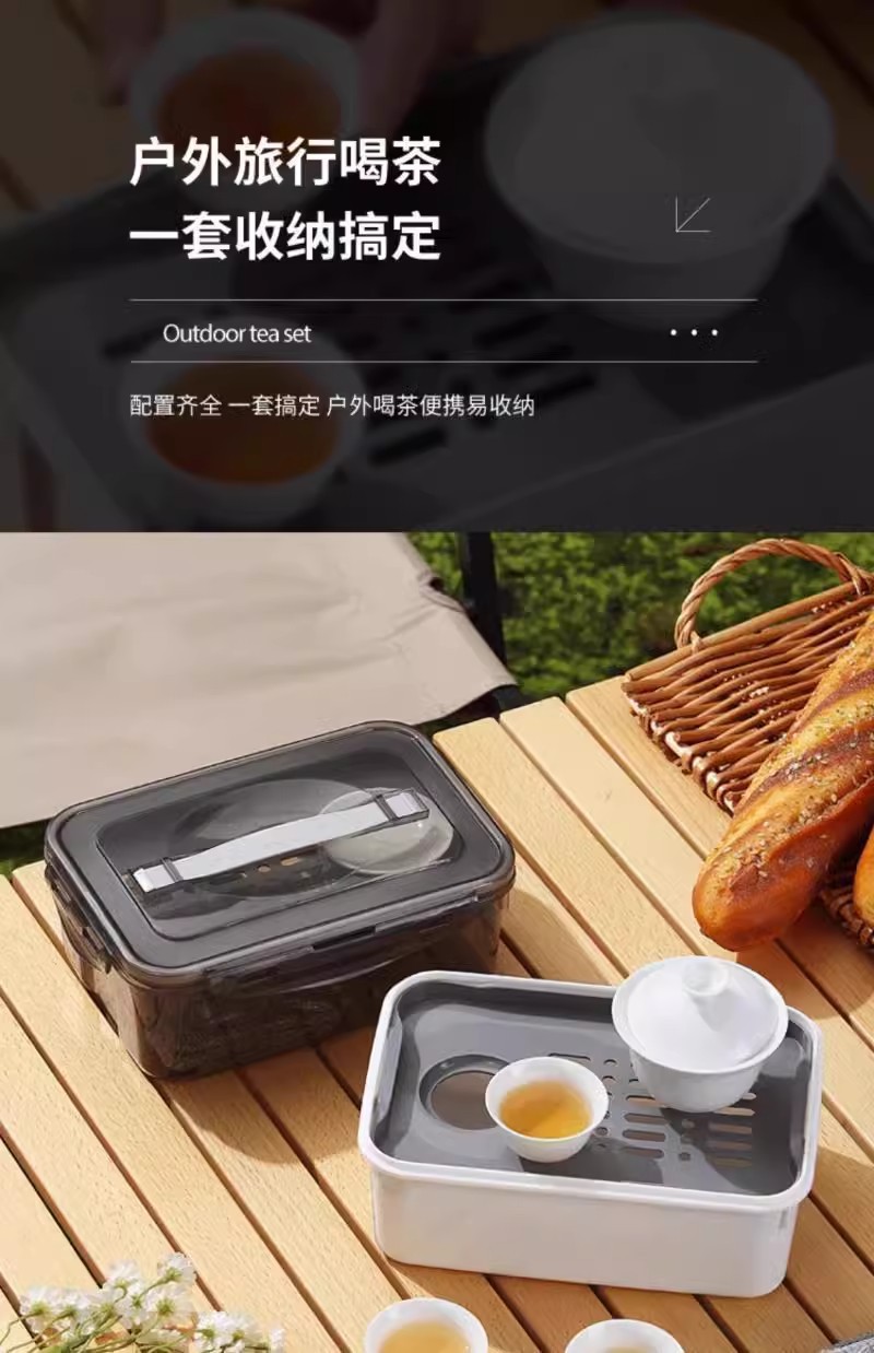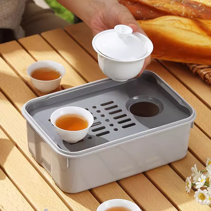 Plastic Kung Fu Tea Set Construction Site Tea Tray Portable One Pot Three Cups Tea Travel Tea Tray Car Tea Tray Storage Box