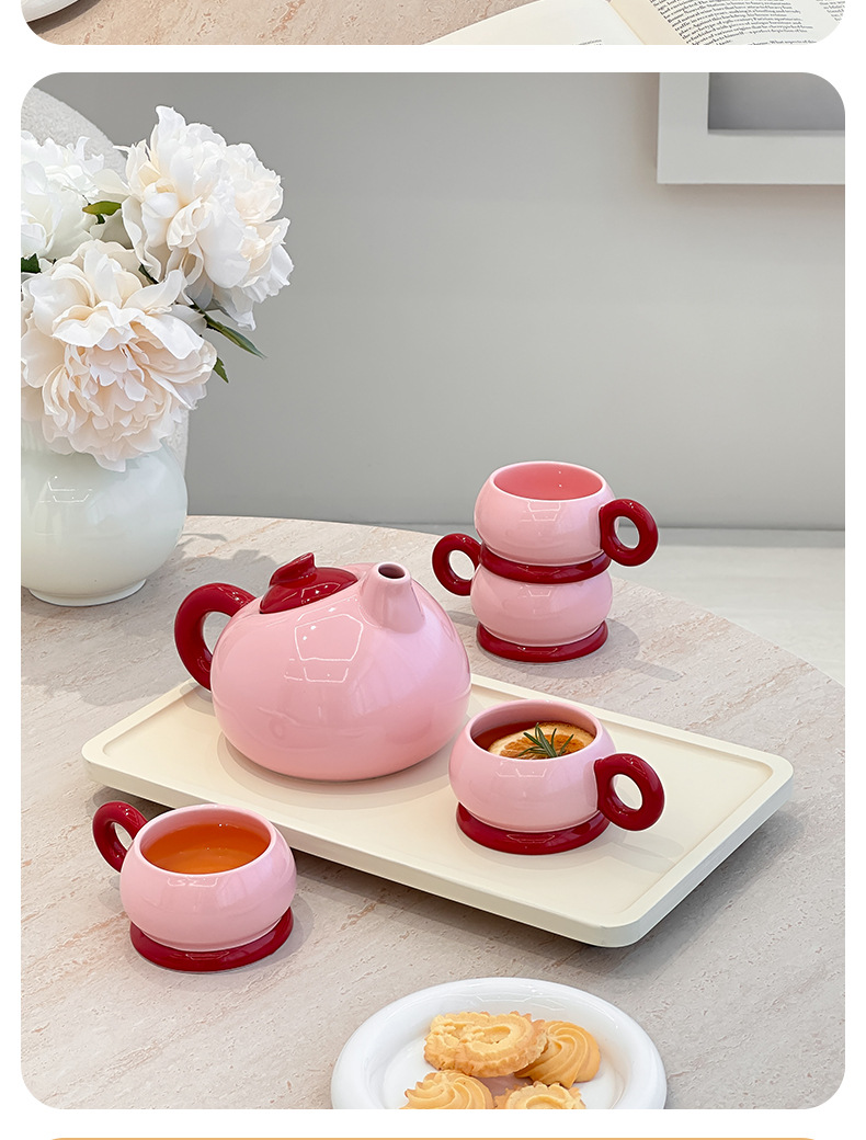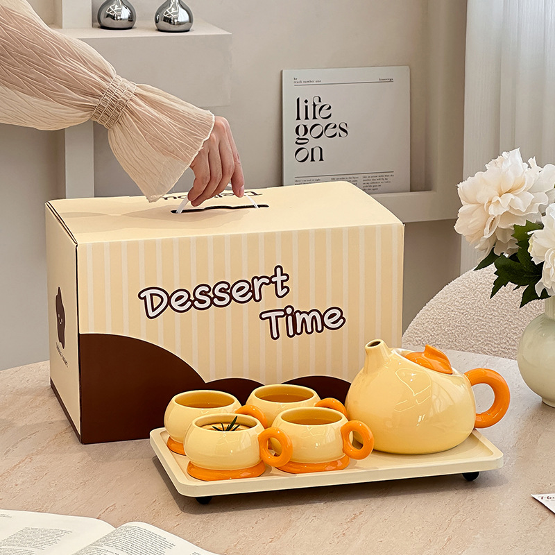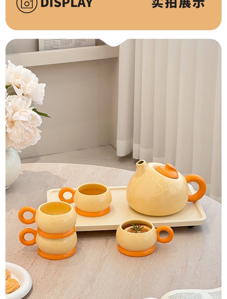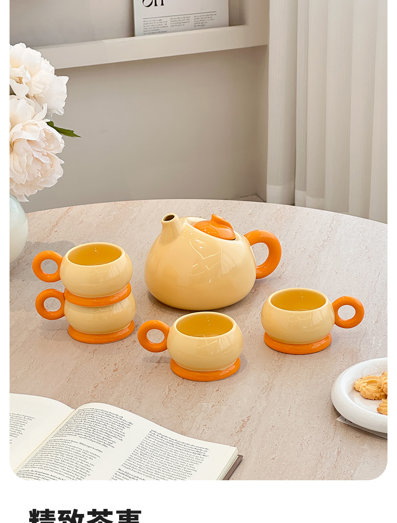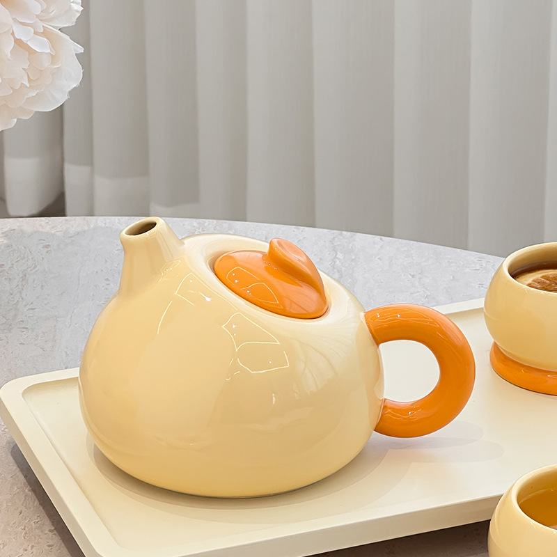 Cute Little Yellow Little Red Ceramic Tea Set for Home Living Room Guests Water Bottle Tea Cup New Home Birthday Gift