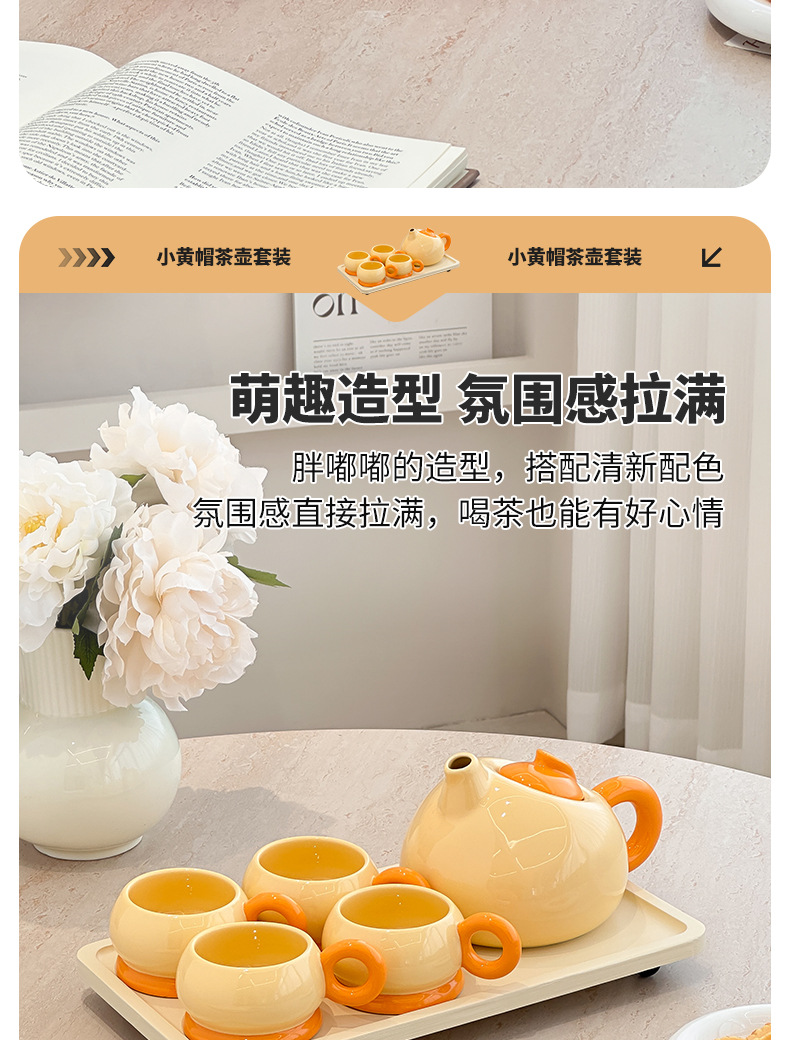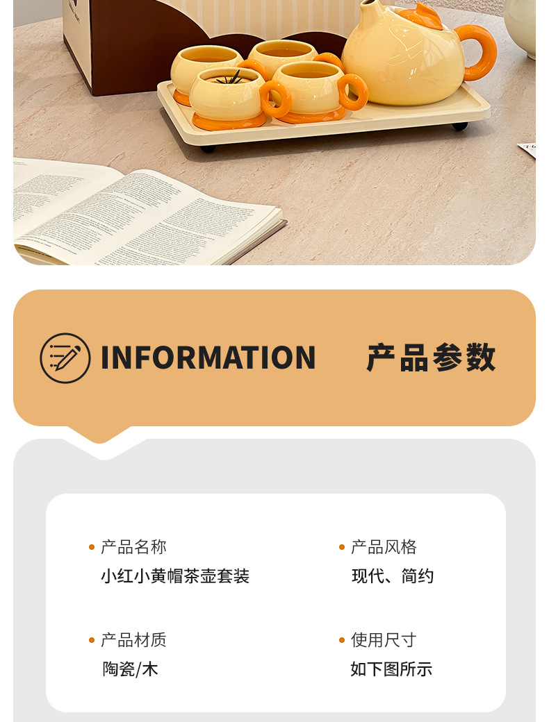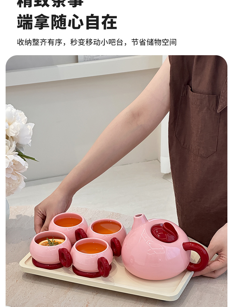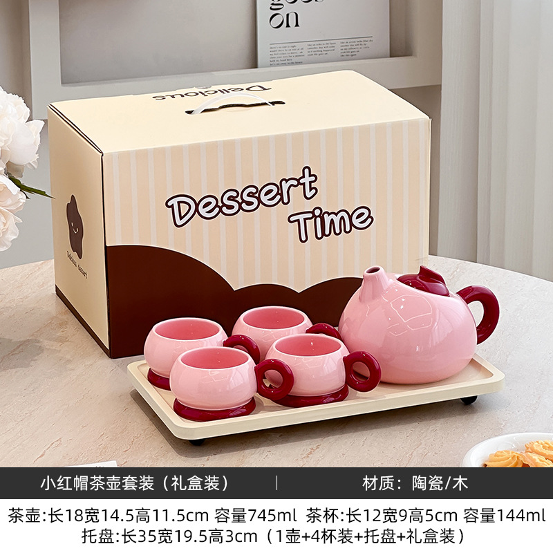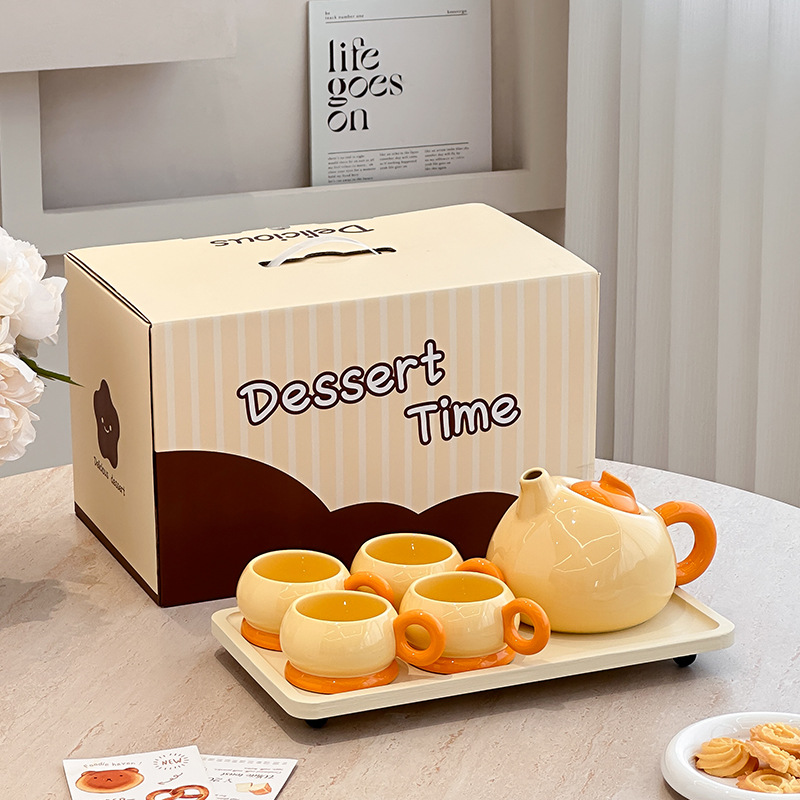 Cute Little Yellow Little Red Ceramic Tea Set for Home Living Room Guests Water Bottle Tea Cup New Home Birthday Gift