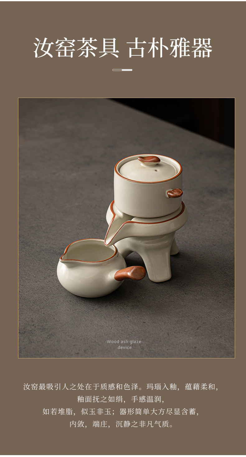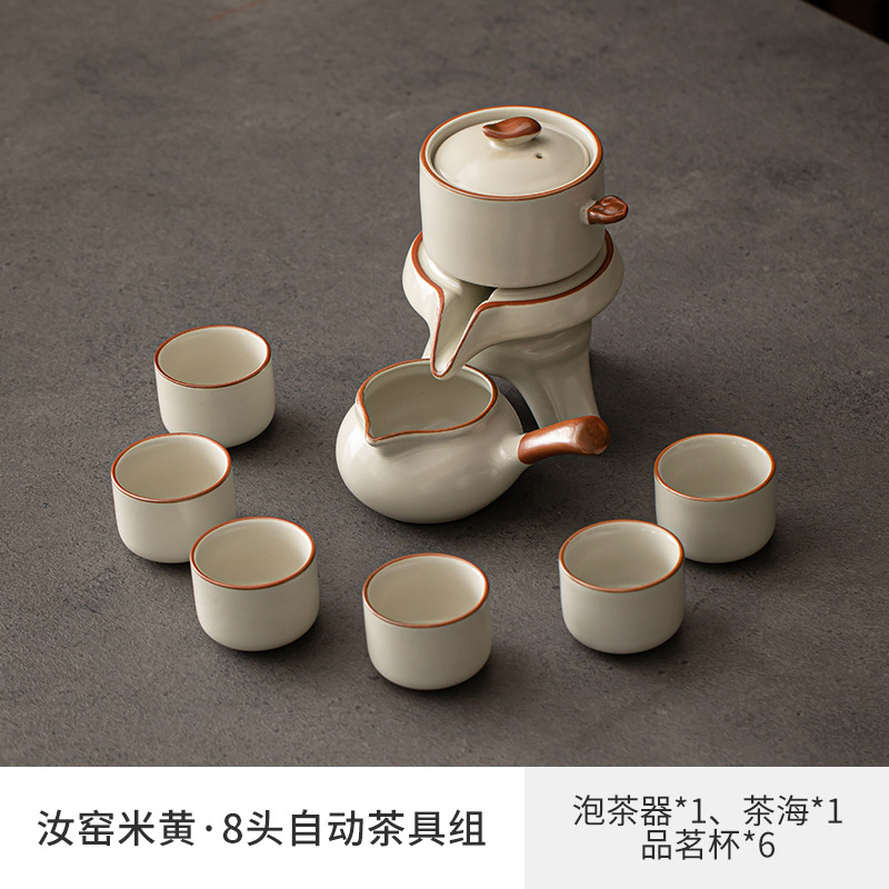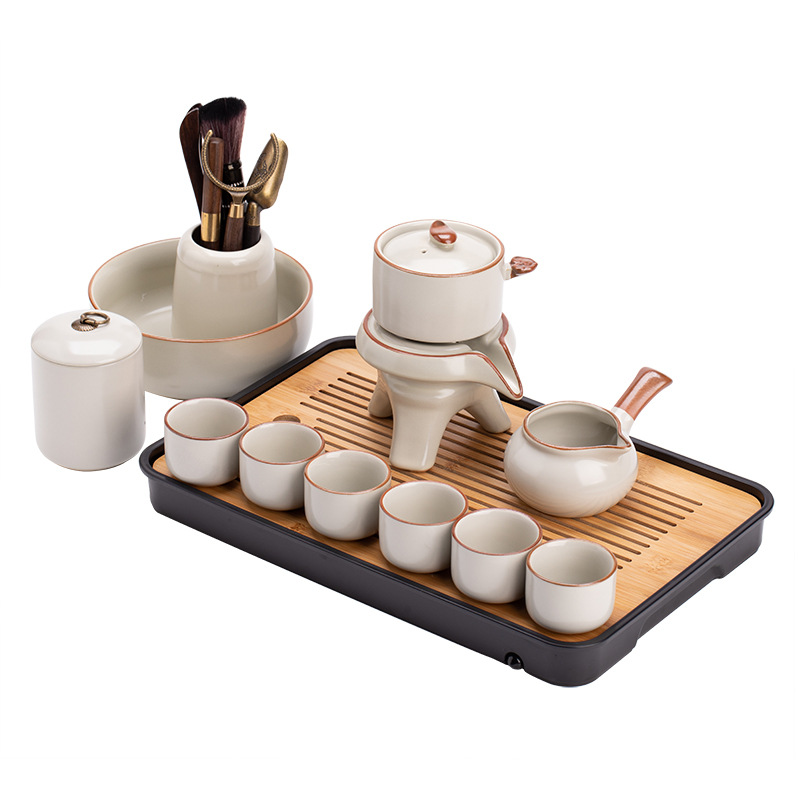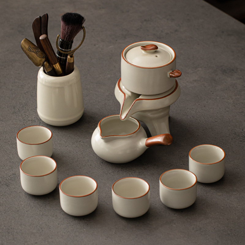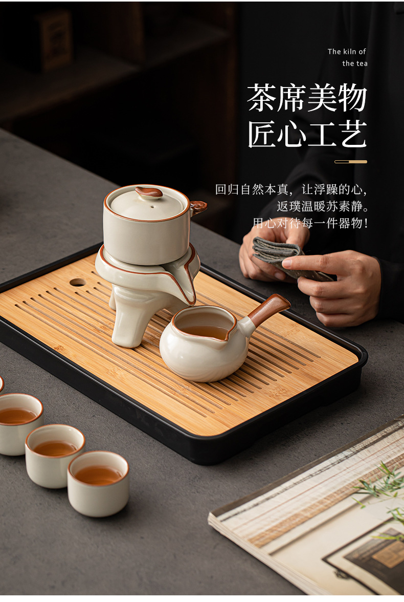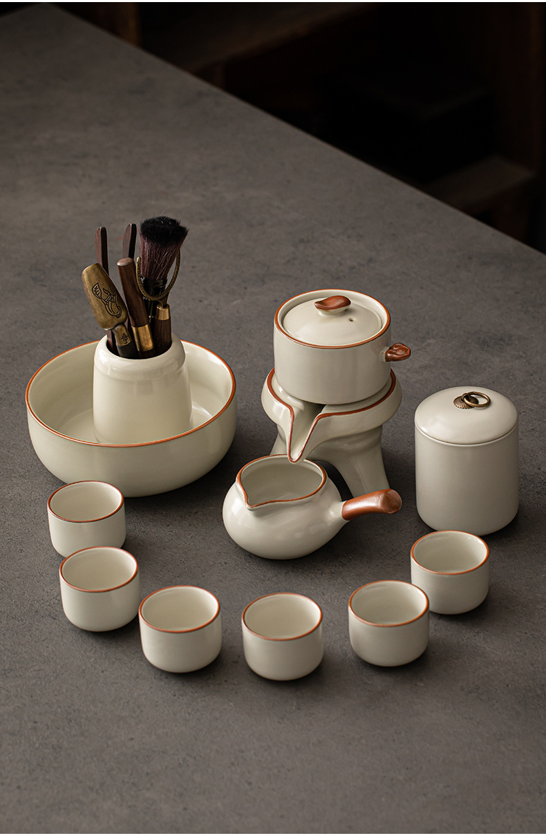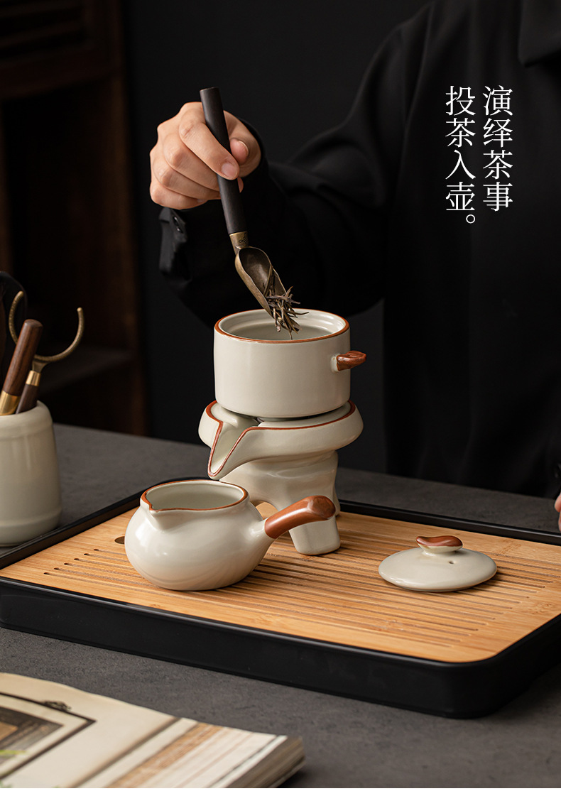 Ru kiln Kung Fu tea set, automatic tea maker, lazy stone mill, rotating water outlet, household Chinese tea pot, tea cup
