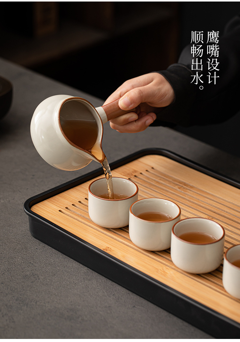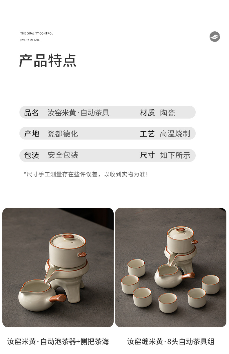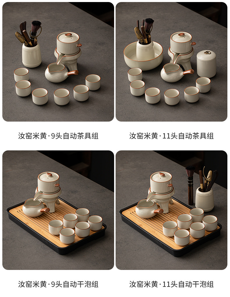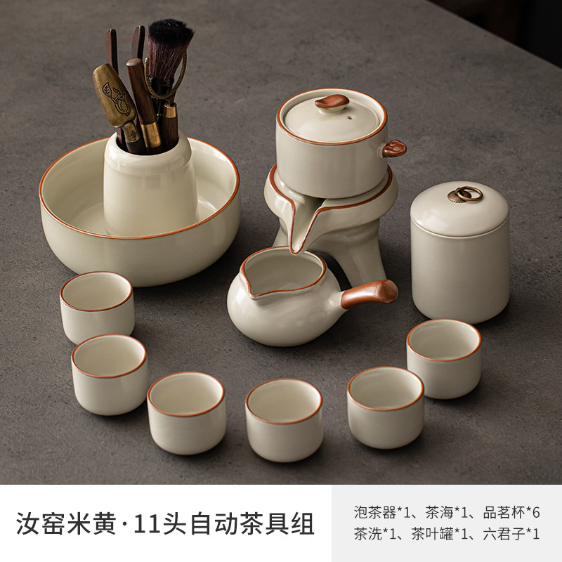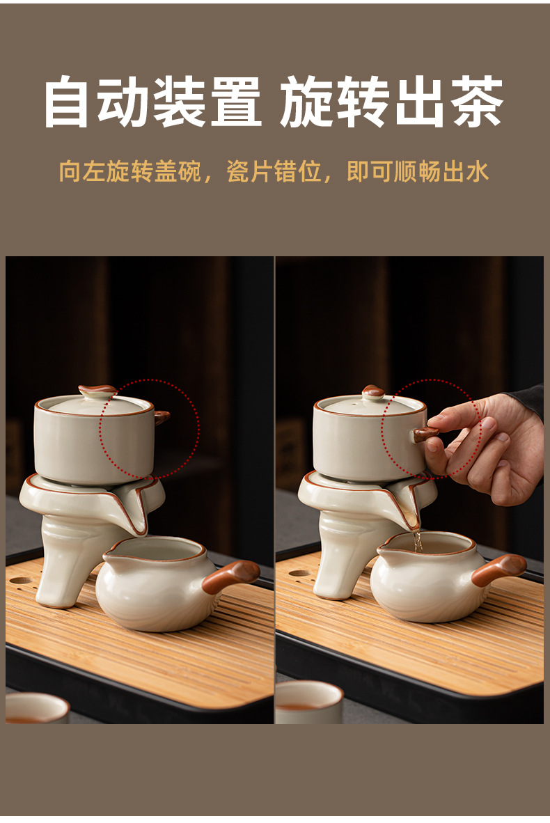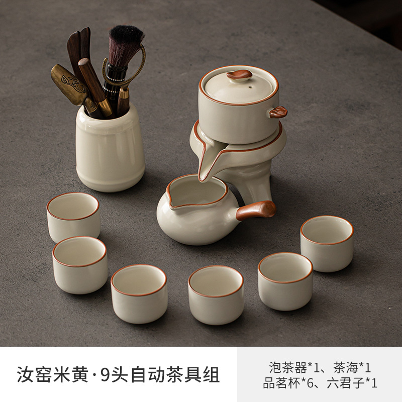 Ru kiln Kung Fu tea set, automatic tea maker, lazy stone mill, rotating water outlet, household Chinese tea pot, tea cup