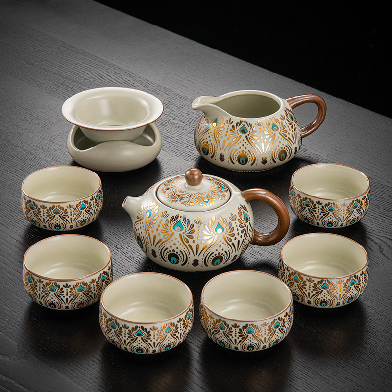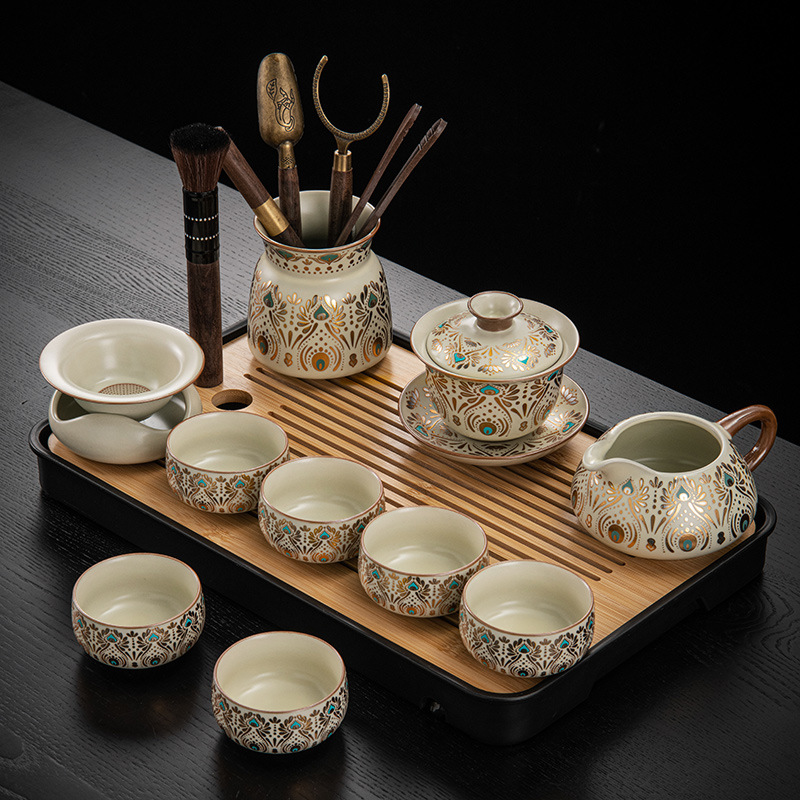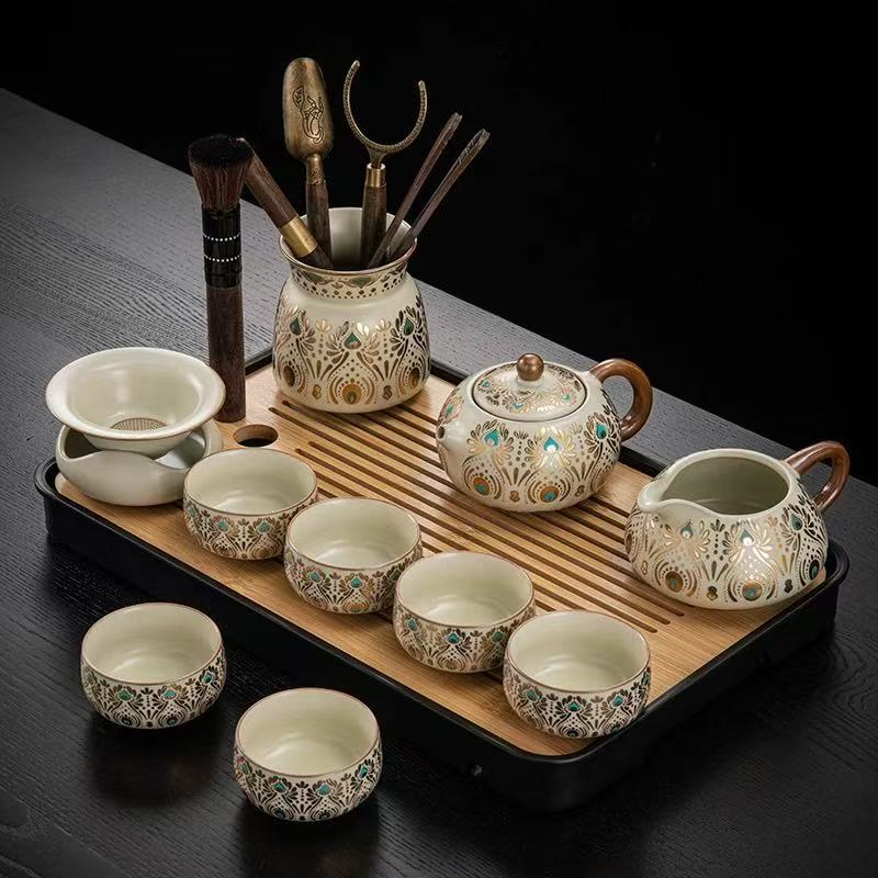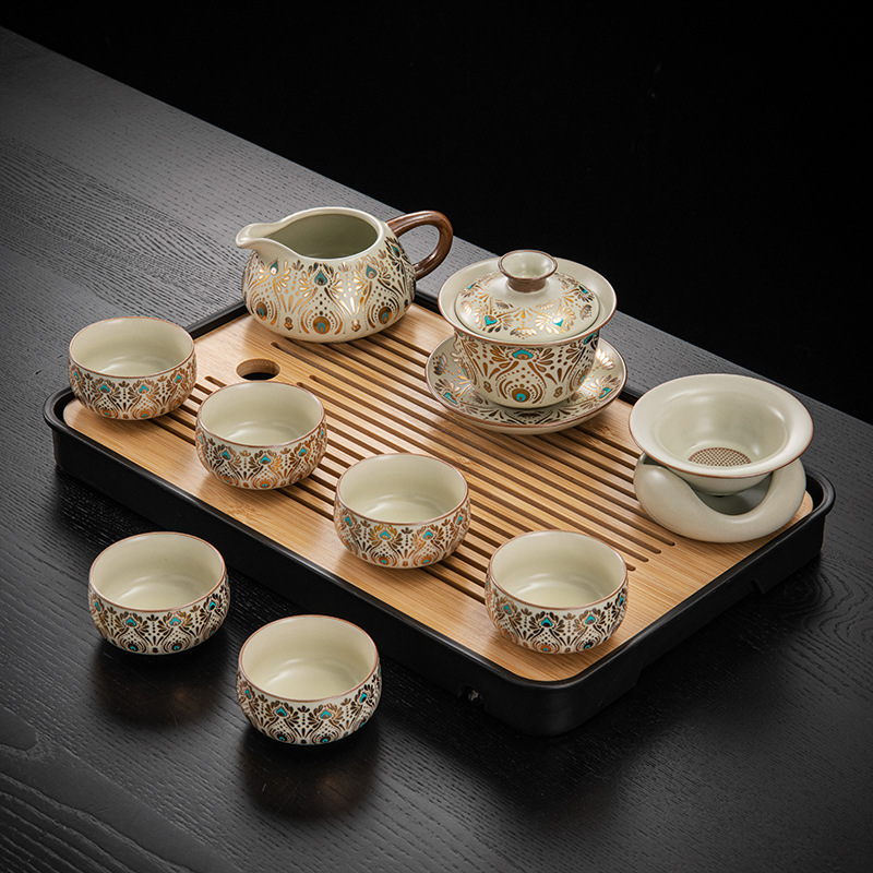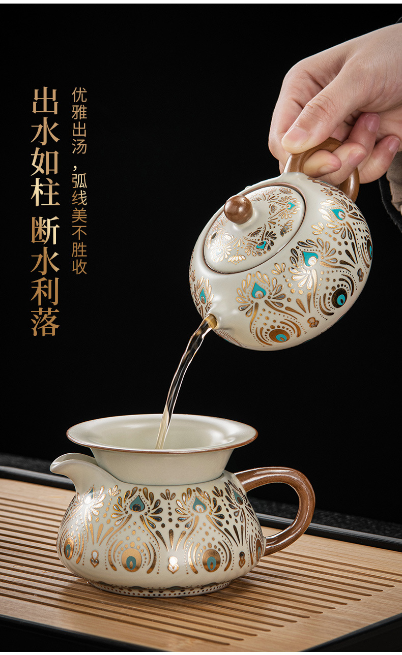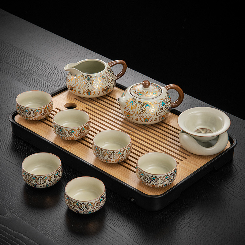 Dunhuang Ru печь чайный набор домашний офис легкий и роскошный керамический чайник крышка чашка сушеный стол чайная тарелка кунг - фу чайная посуда