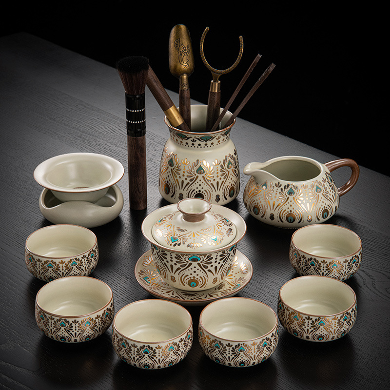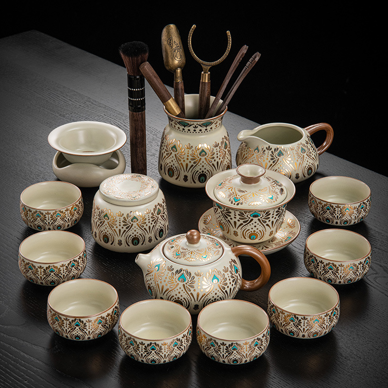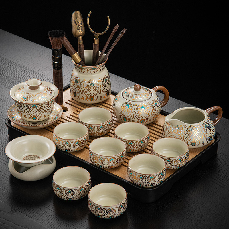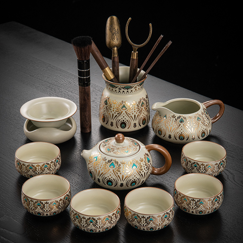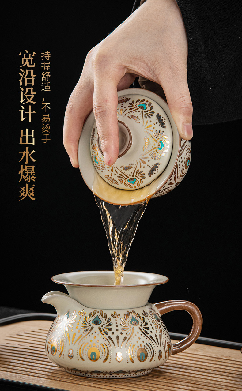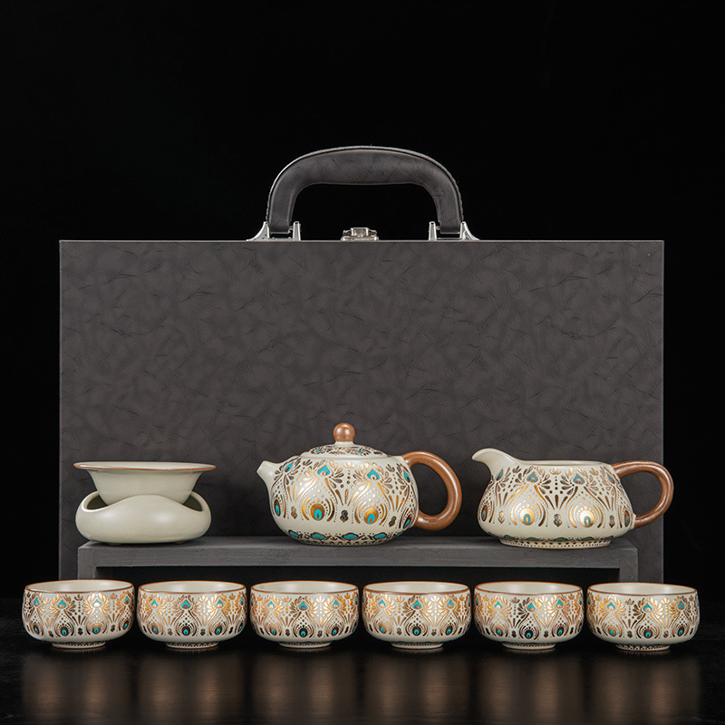 Dunhuang Ru печь чайный набор домашний офис легкий и роскошный керамический чайник крышка чашка сушеный стол чайная тарелка кунг - фу чайная посуда