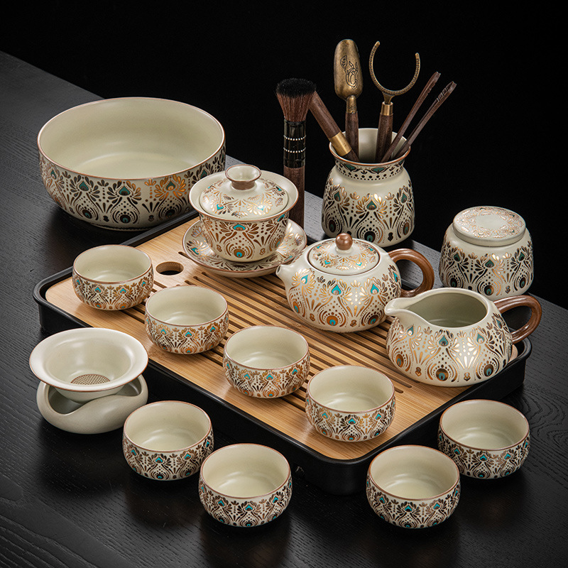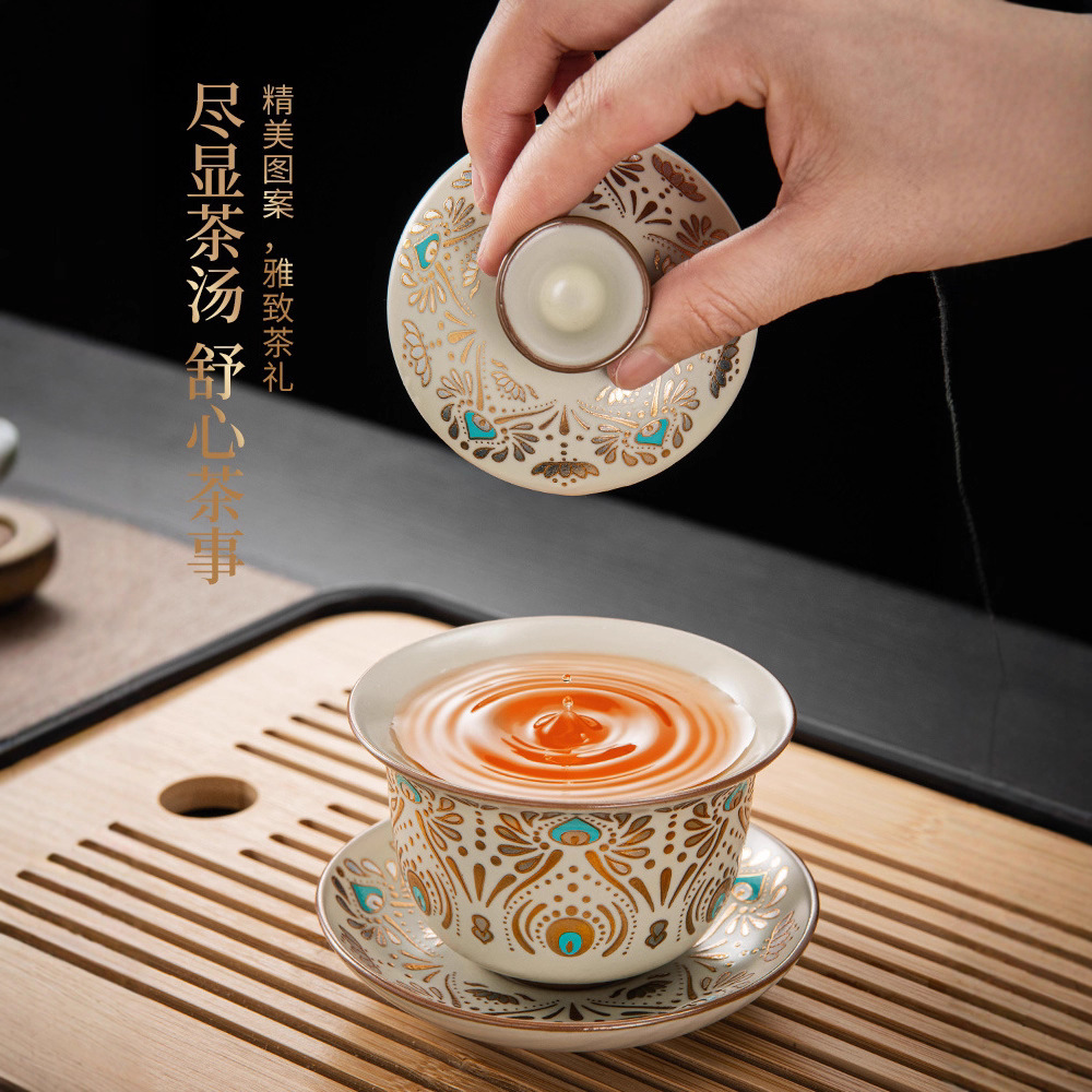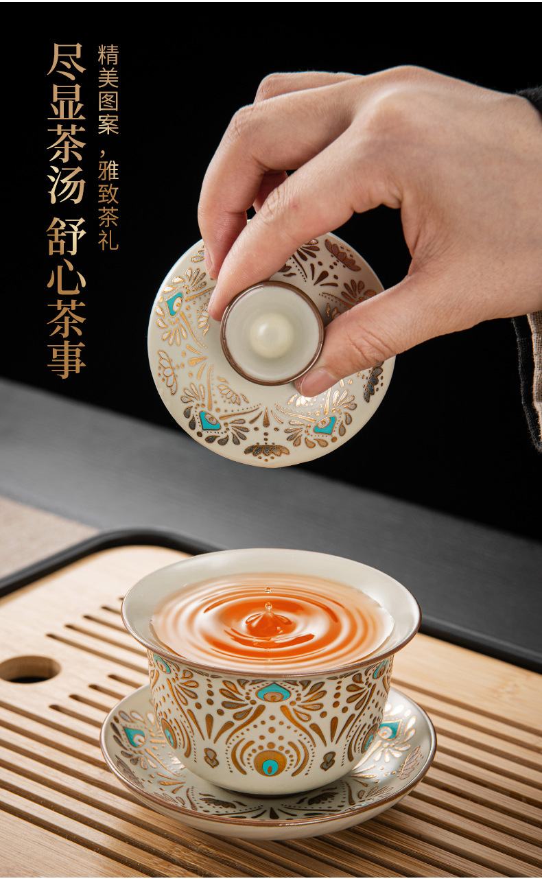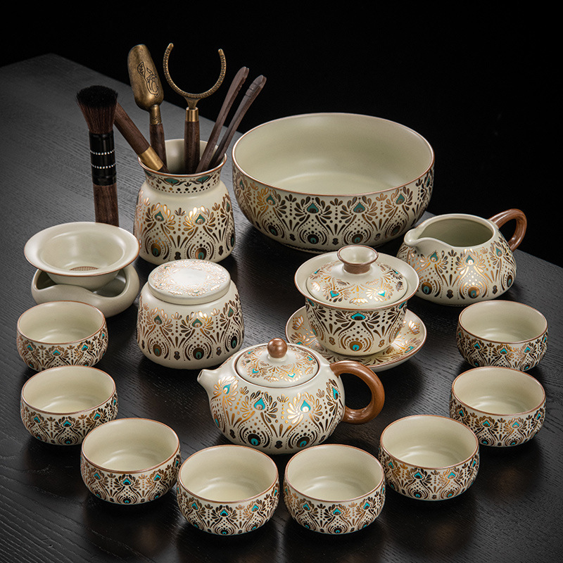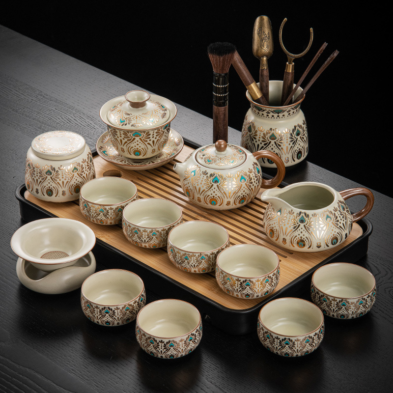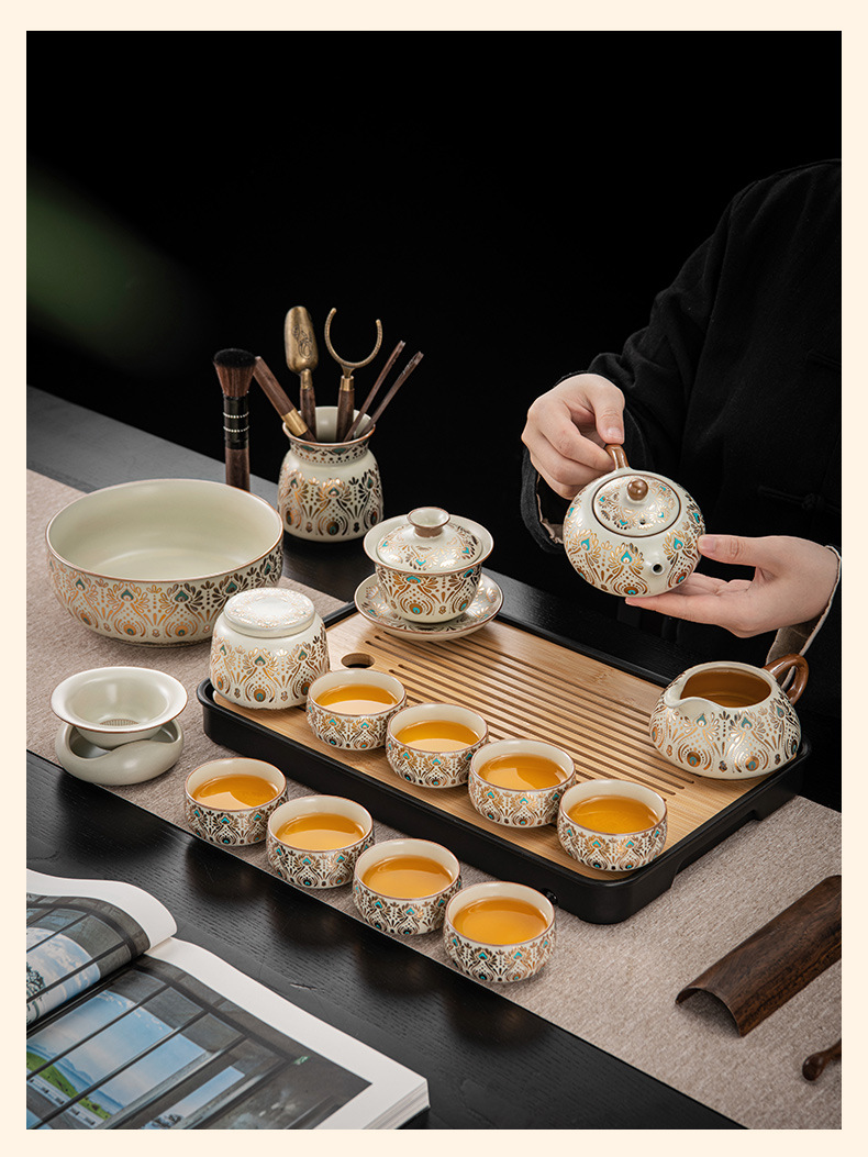 Dunhuang Ru печь чайный набор домашний офис легкий и роскошный керамический чайник крышка чашка сушеный стол чайная тарелка кунг - фу чайная посуда