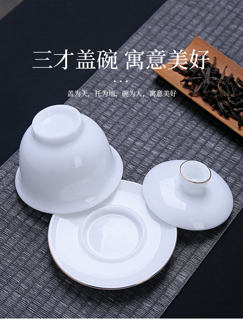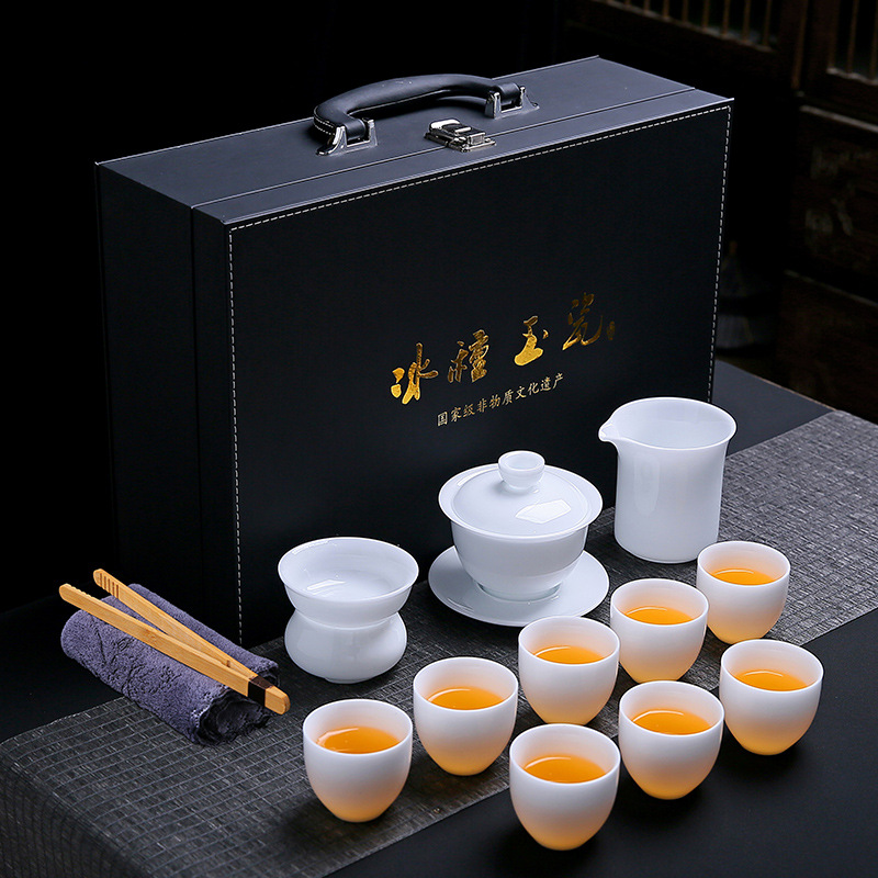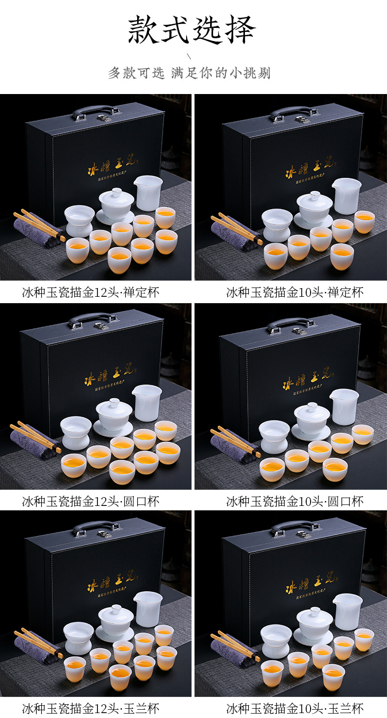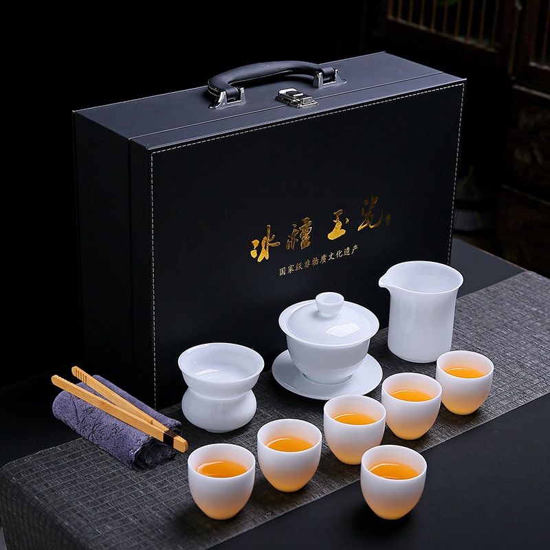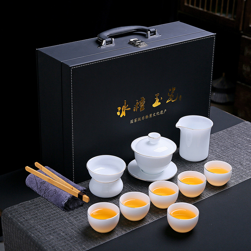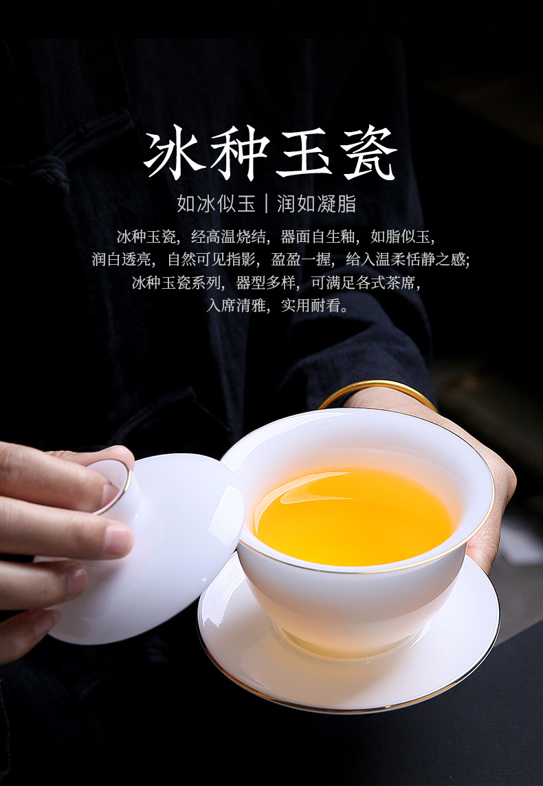 High end ice seed jade porcelain kung fu tea set, household lid bowl, company reception companion, hand gift, business gift set