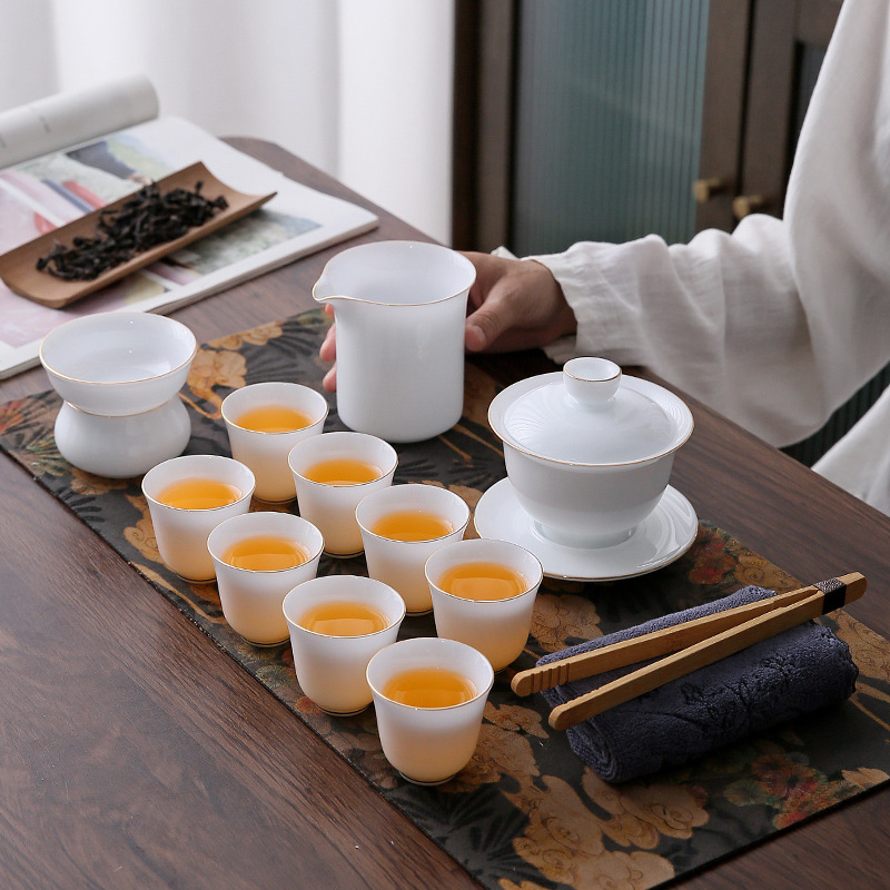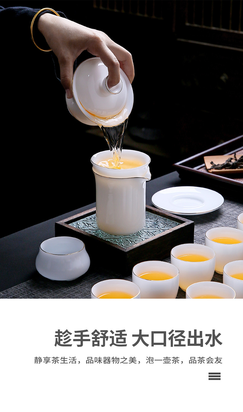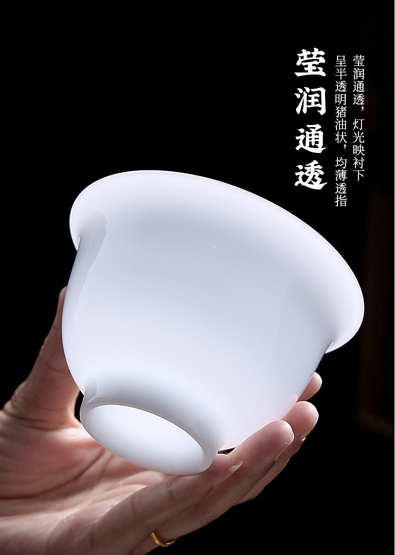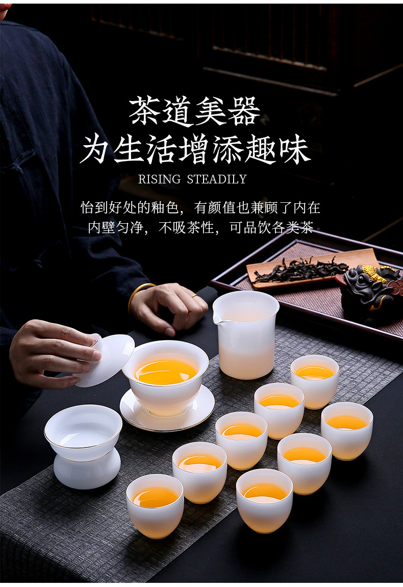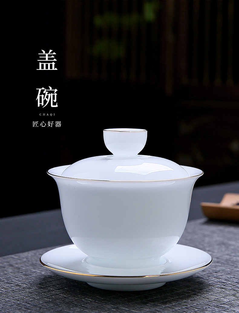 High end ice seed jade porcelain kung fu tea set, household lid bowl, company reception companion, hand gift, business gift set