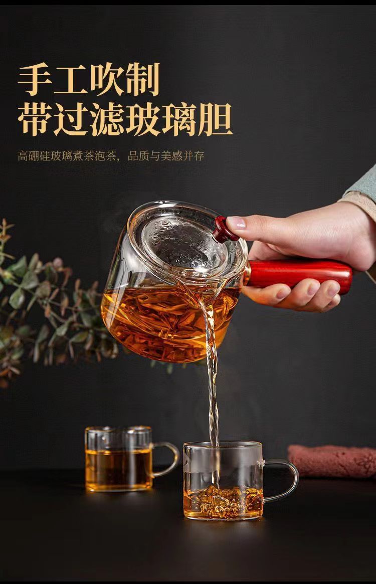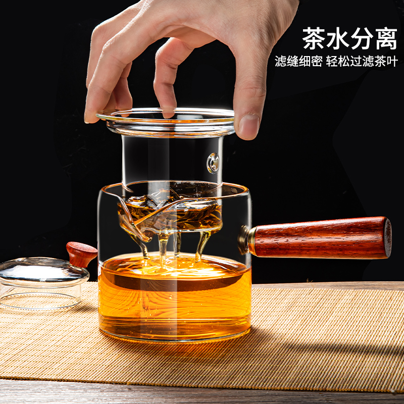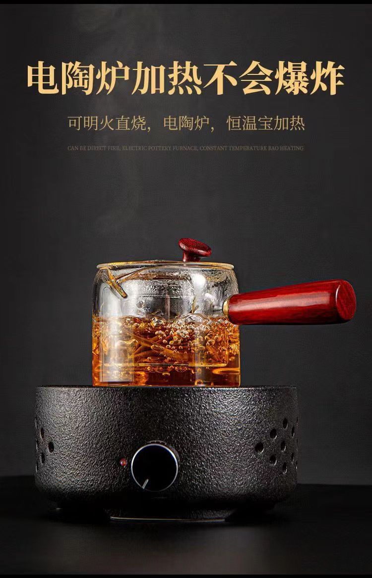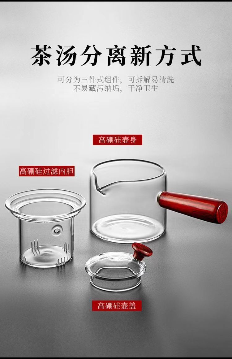 High borosilicate glass tea pot, high-temperature resistant, single pot, intuitive tea pot, side handle kettle, filter tea set