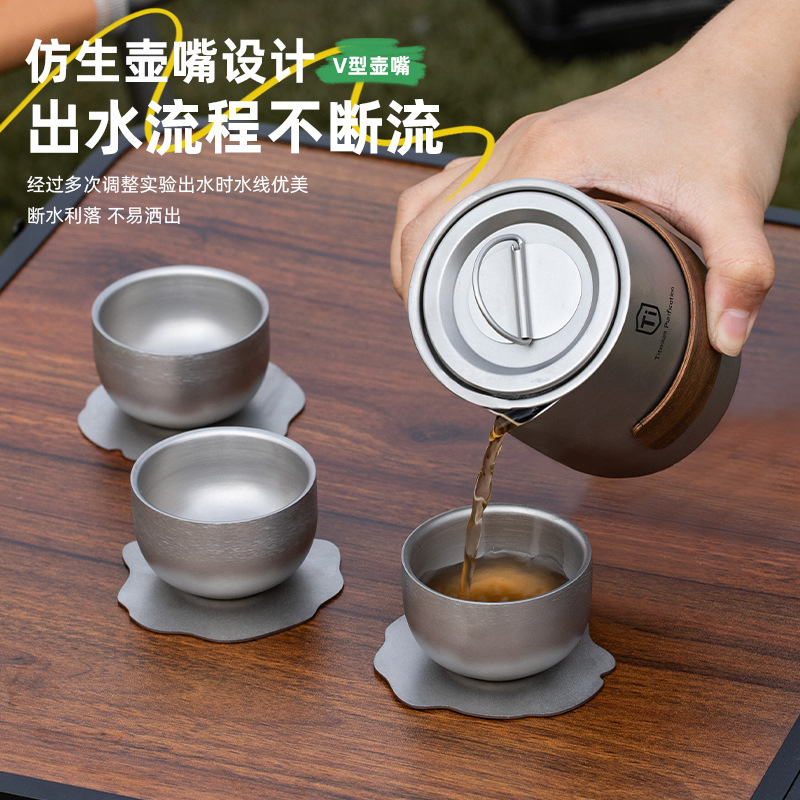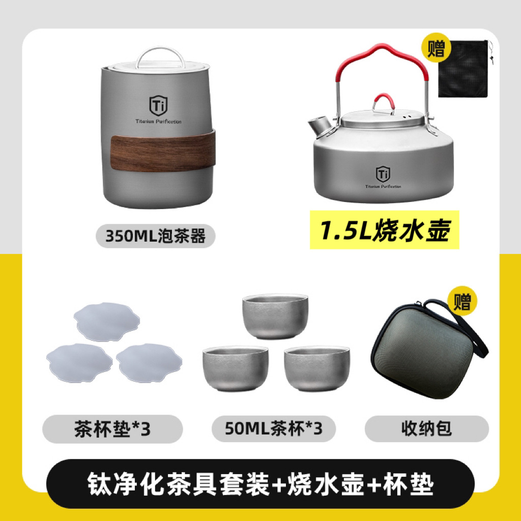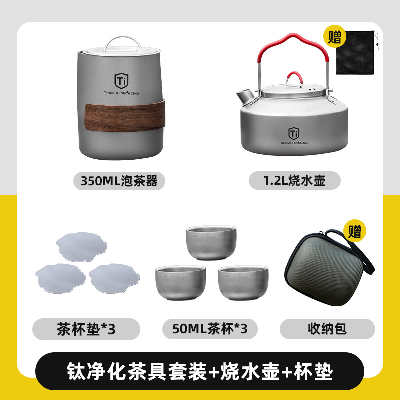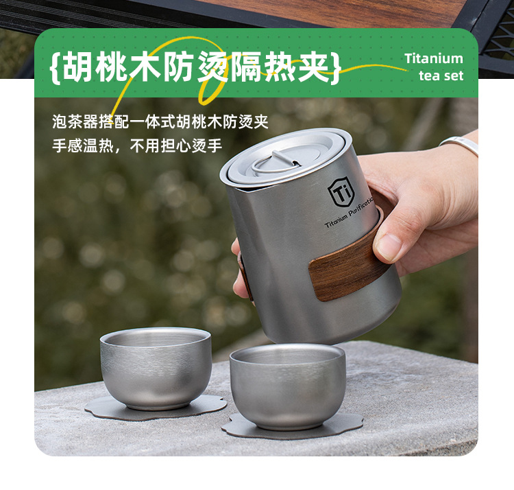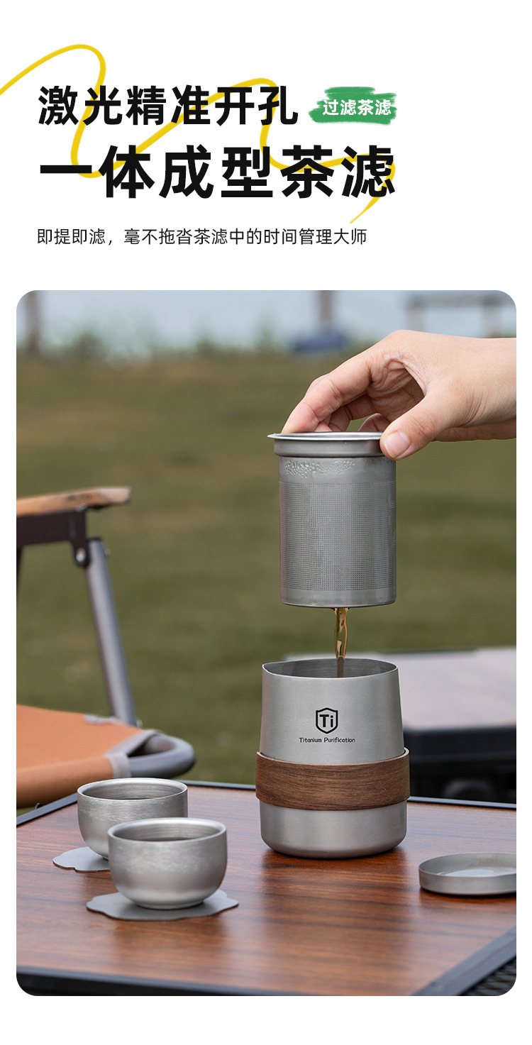 Cross border outdoor titanium purification travel tea set, tea set, camping with filter, tea pot, kettle