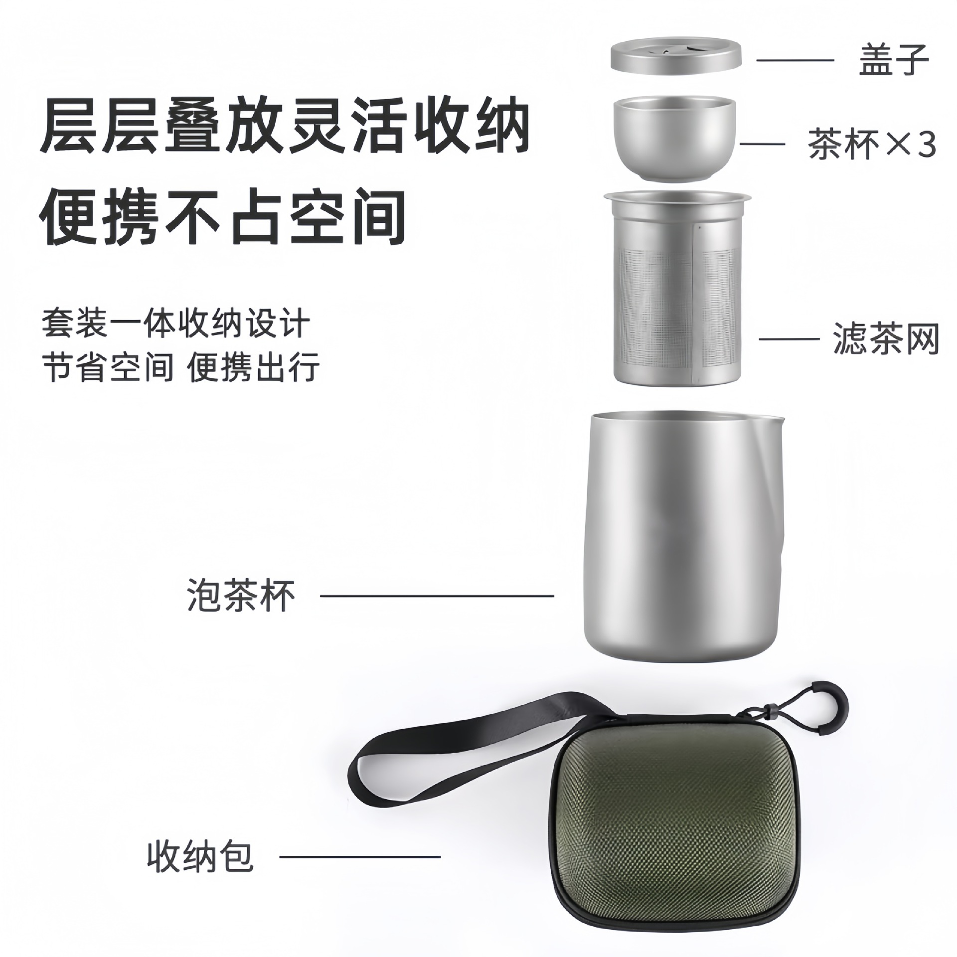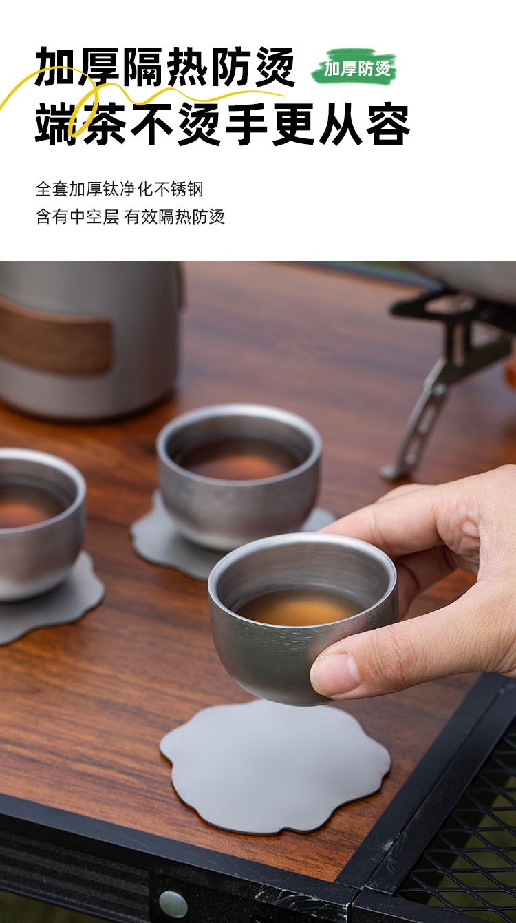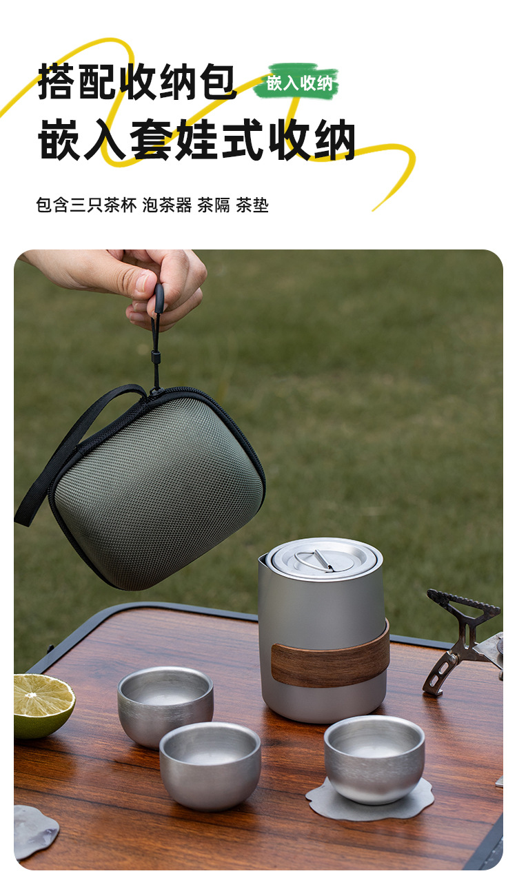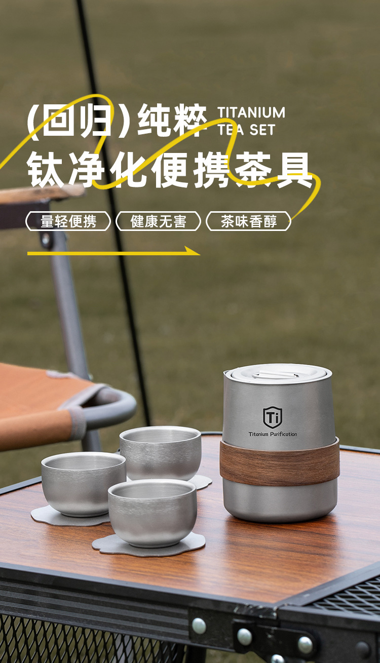 Cross border outdoor titanium purification travel tea set, tea set, camping with filter, tea pot, kettle
