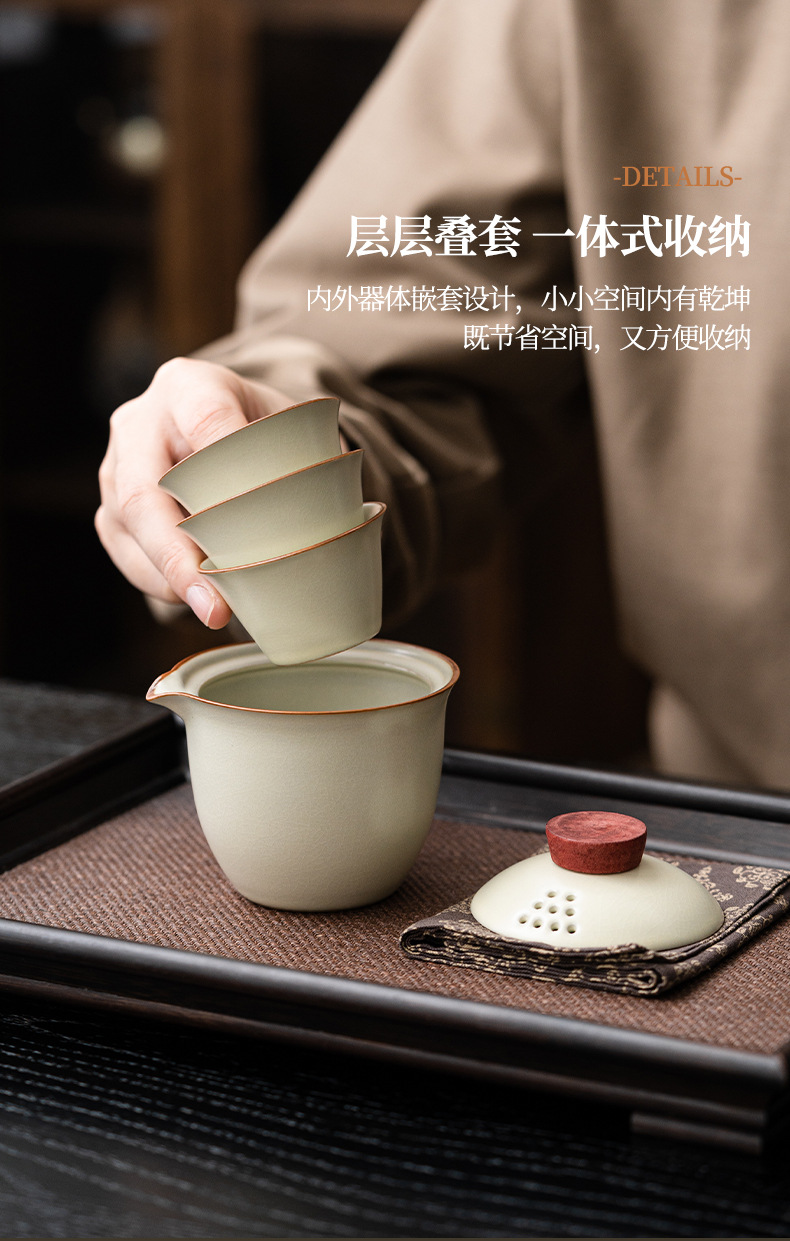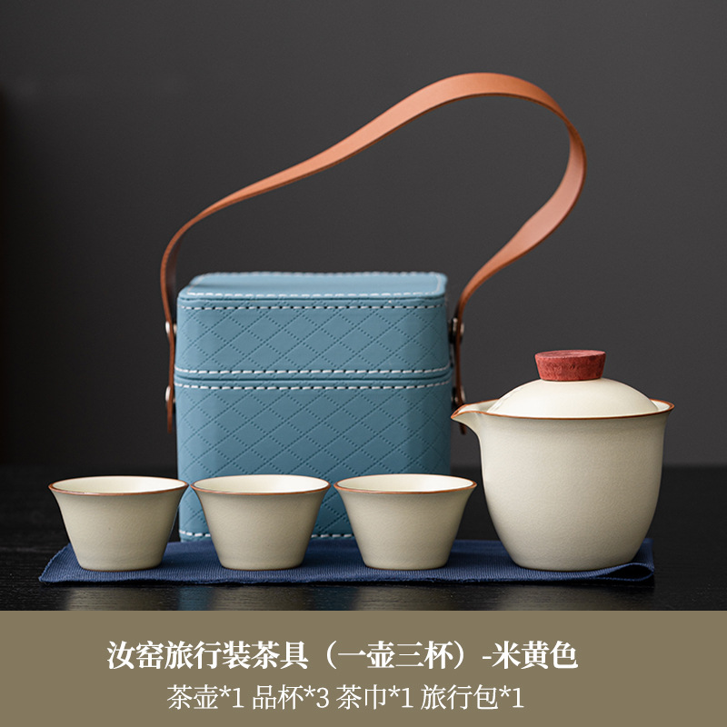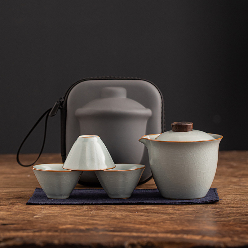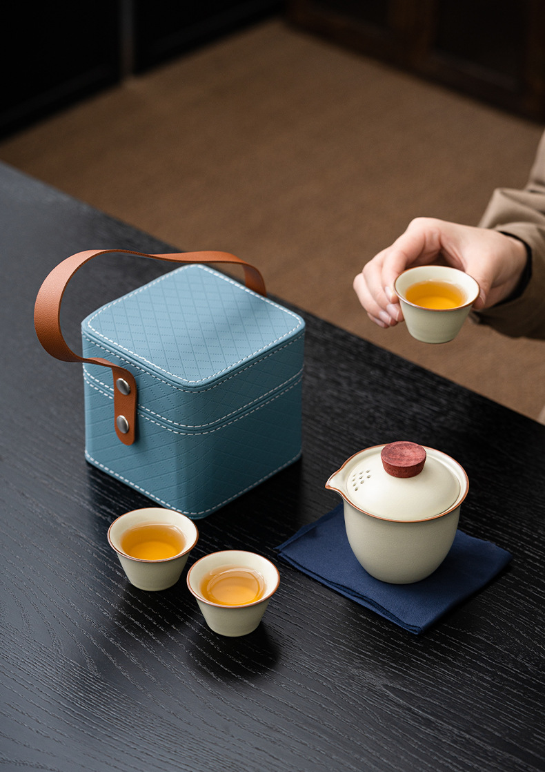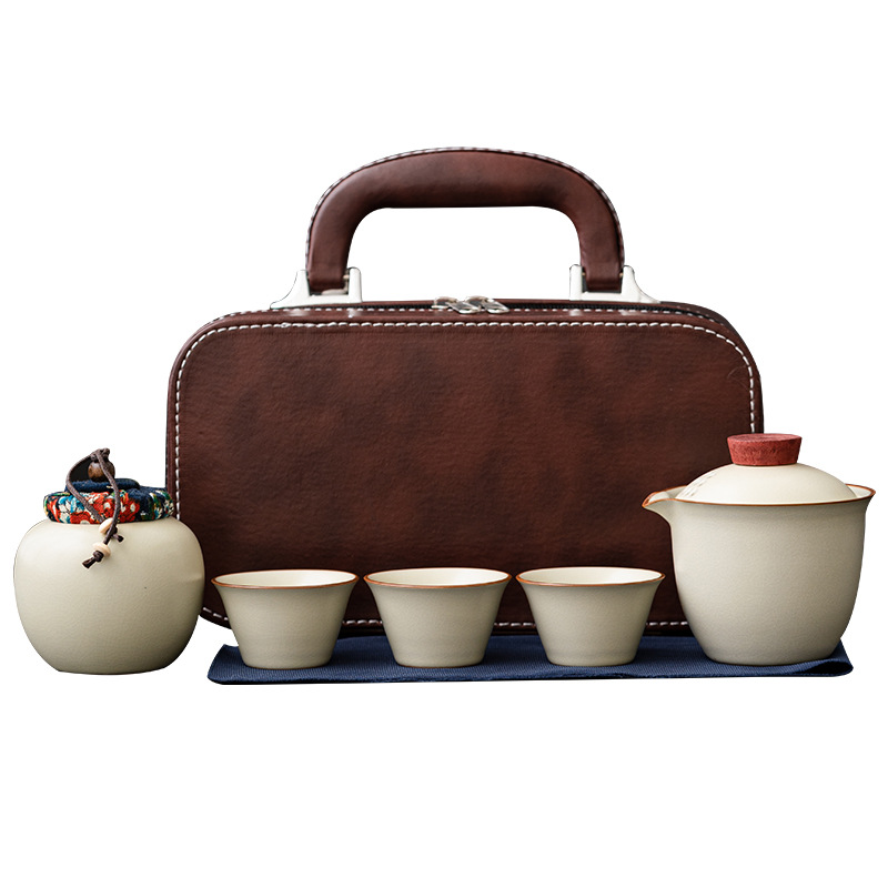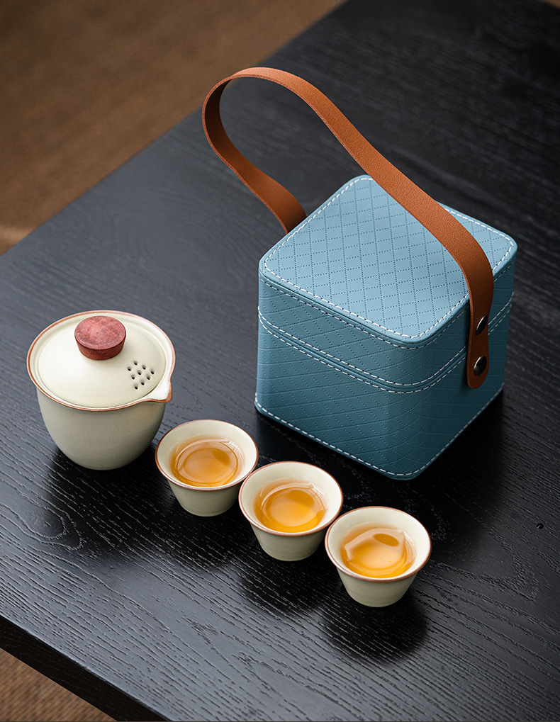 Чайная посуда для путешествий, чайник, три чашки легкого наружного керамического футляра, комплект для деловой деятельности, подарок