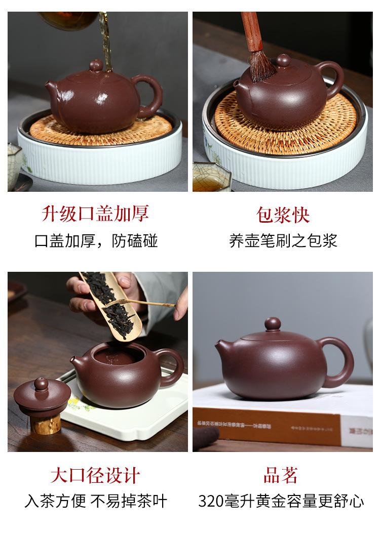 Yixing Purple Clay Pot Home Teapot Tea Set Large Capacity 300cc Xishi Pot LOGO Pottery Engraving National Fashion