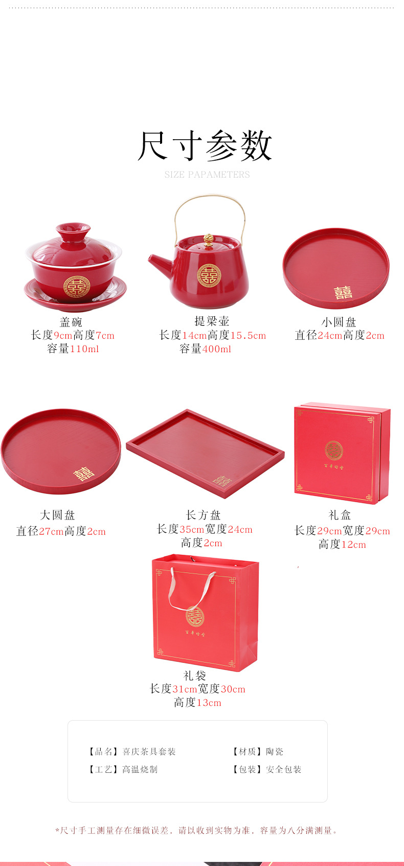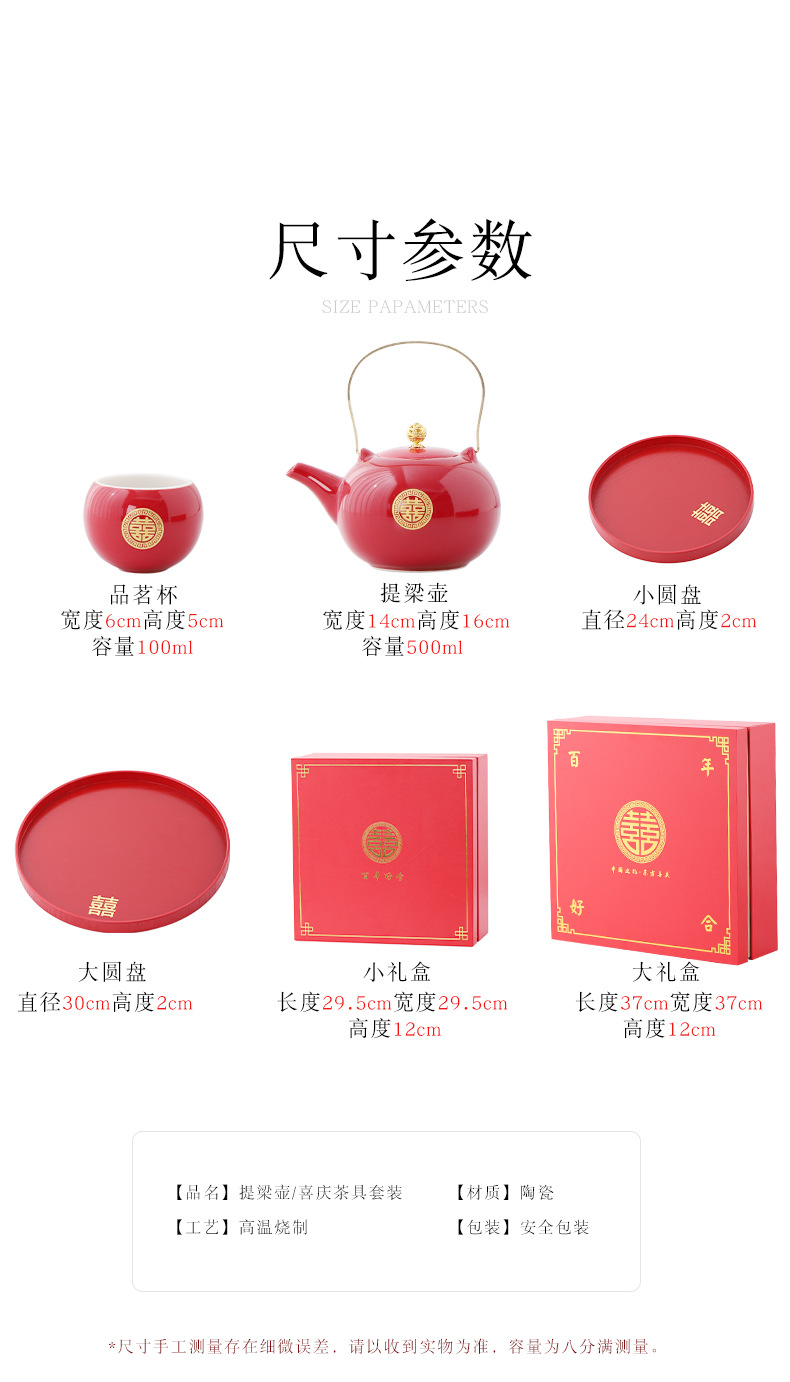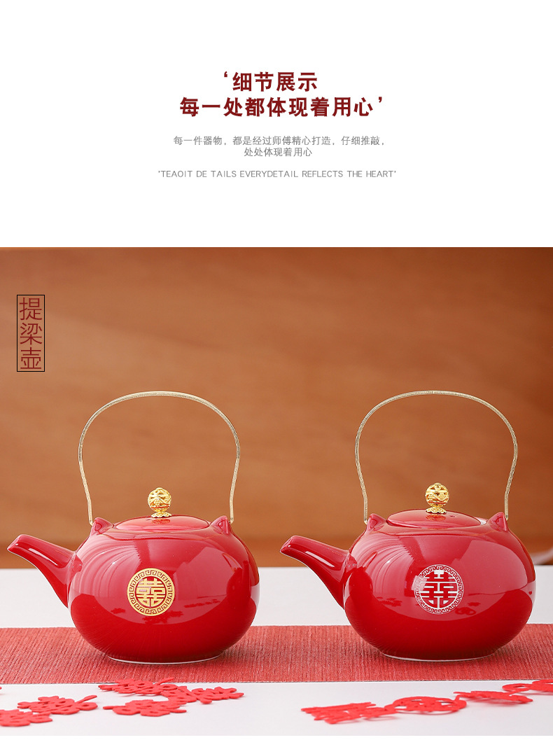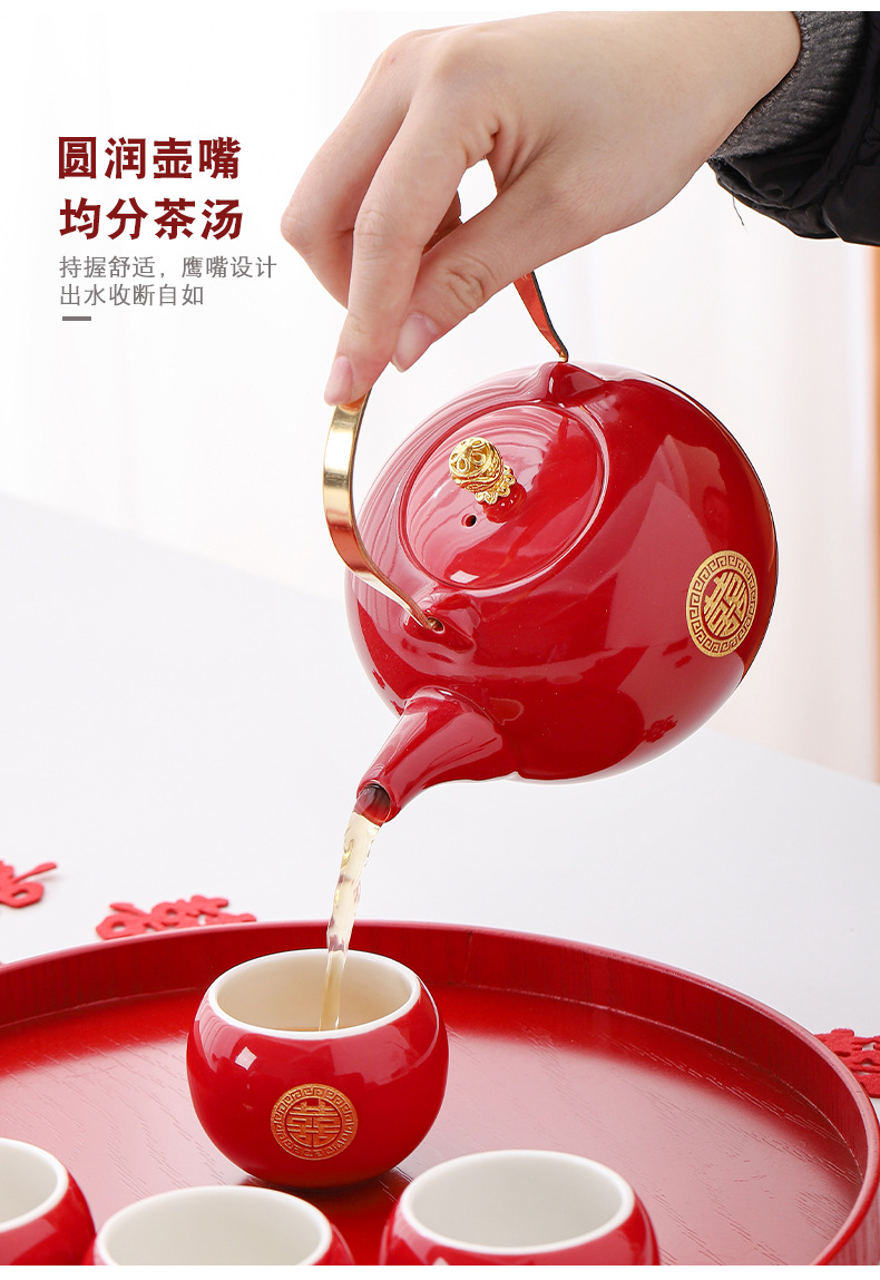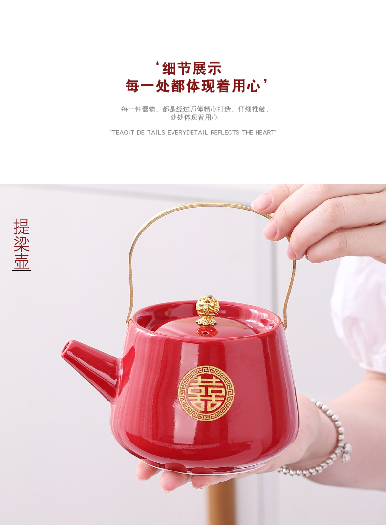 Wedding teapot, red ceramic, celebratory toast, water cup set, wedding banquet, wedding dowry supplies, large handle teapot