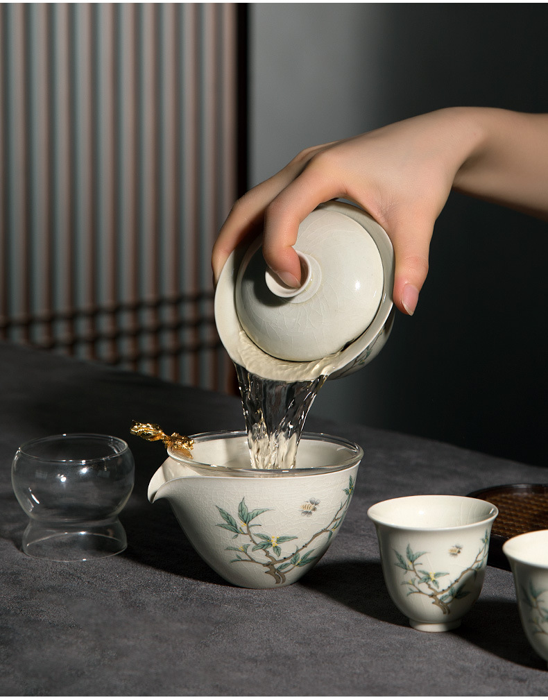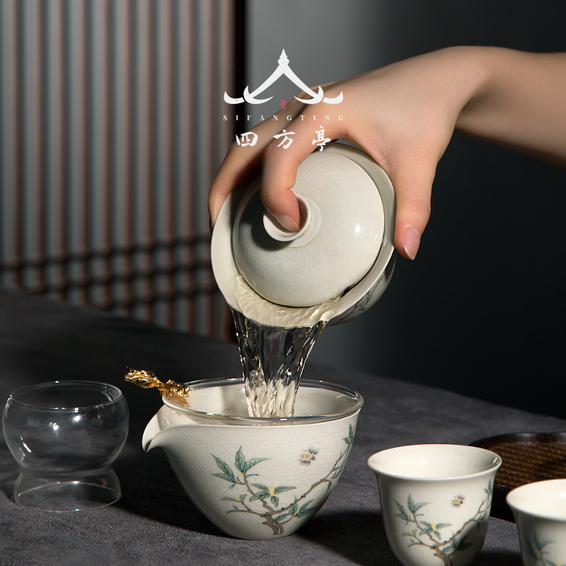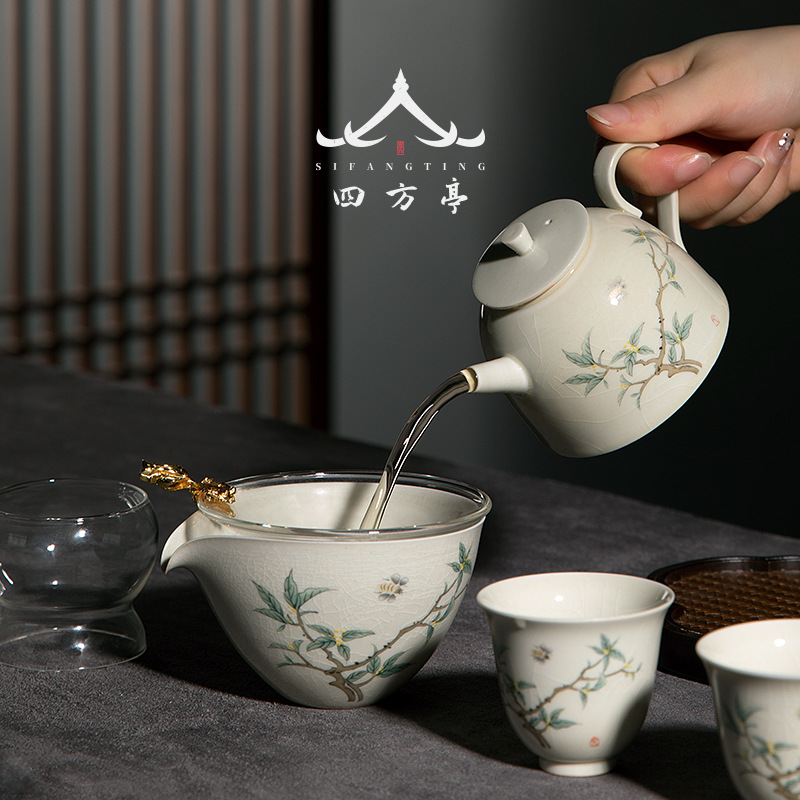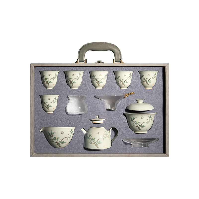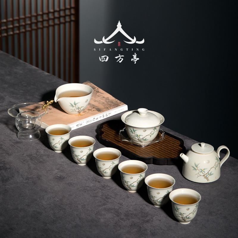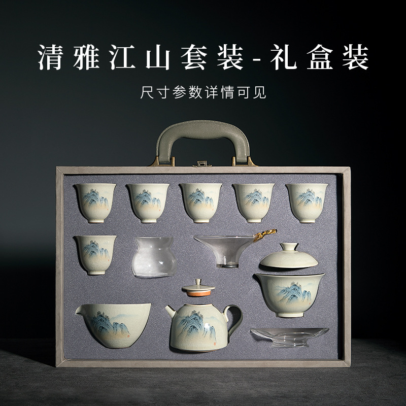 Четырехсторонний Тин Цзиндэчжэнь Кунг Фу Чай Набор китайская легкая роскошь домашняя керамическая крышка чашка чайник чайник премиальная коробка