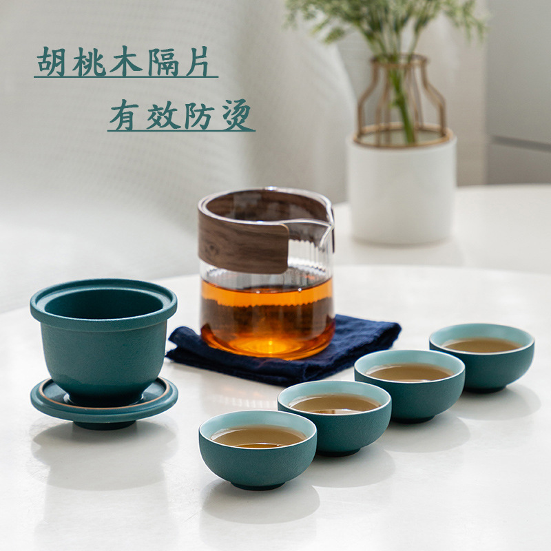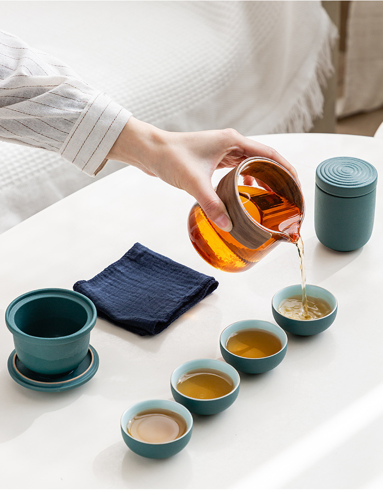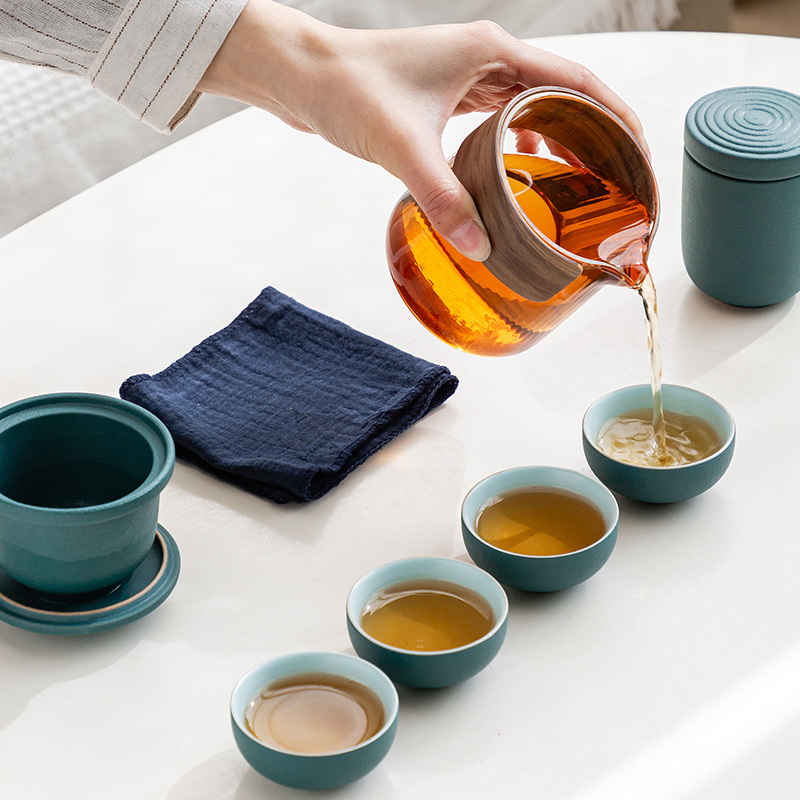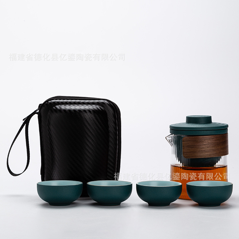 Ceramic Kuaike Cup One Pot Four Cups Tea Can Outdoor Glass Portable Travel Tea Set Business Gift Customization