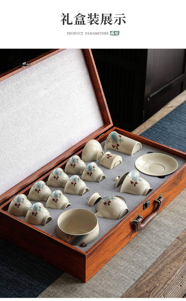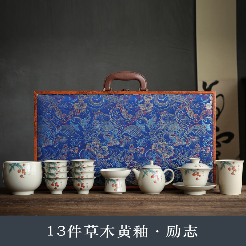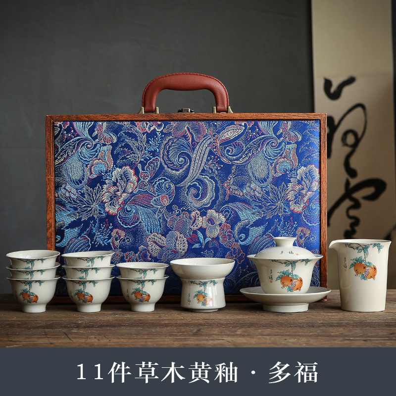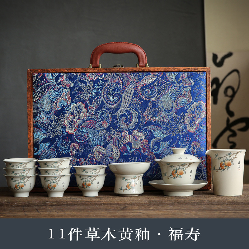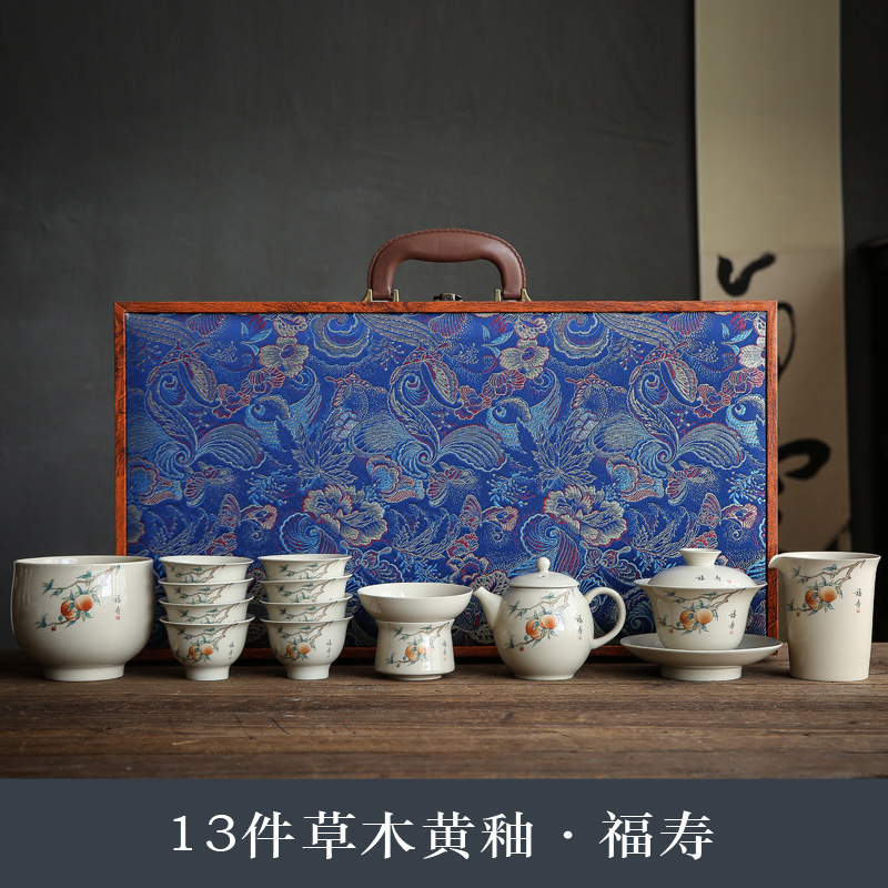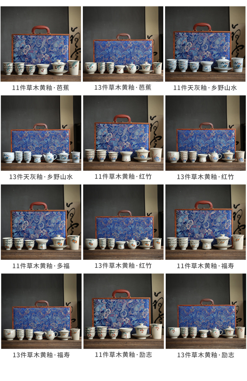 Grass and wood gray glazed tea set, ceramic Kung Fu tea set, office reception tea pot, tea cup gift box, business gift set