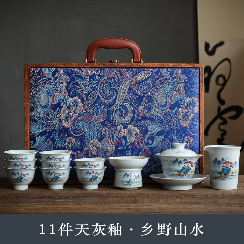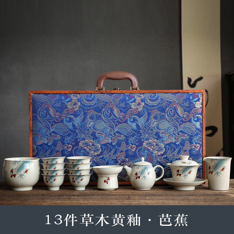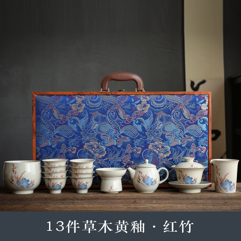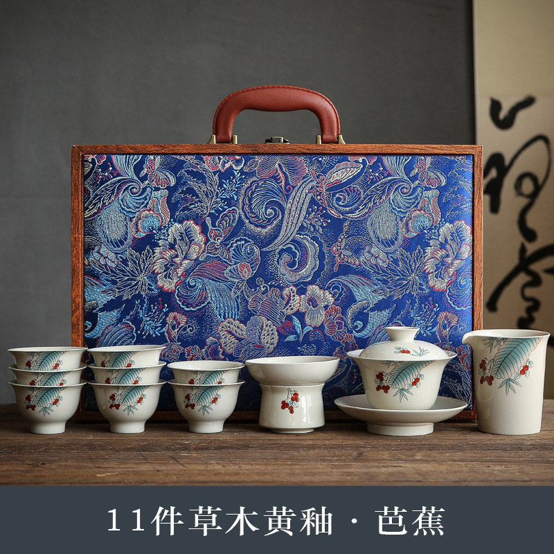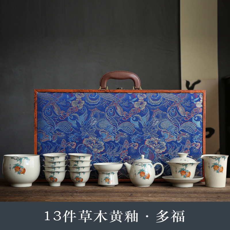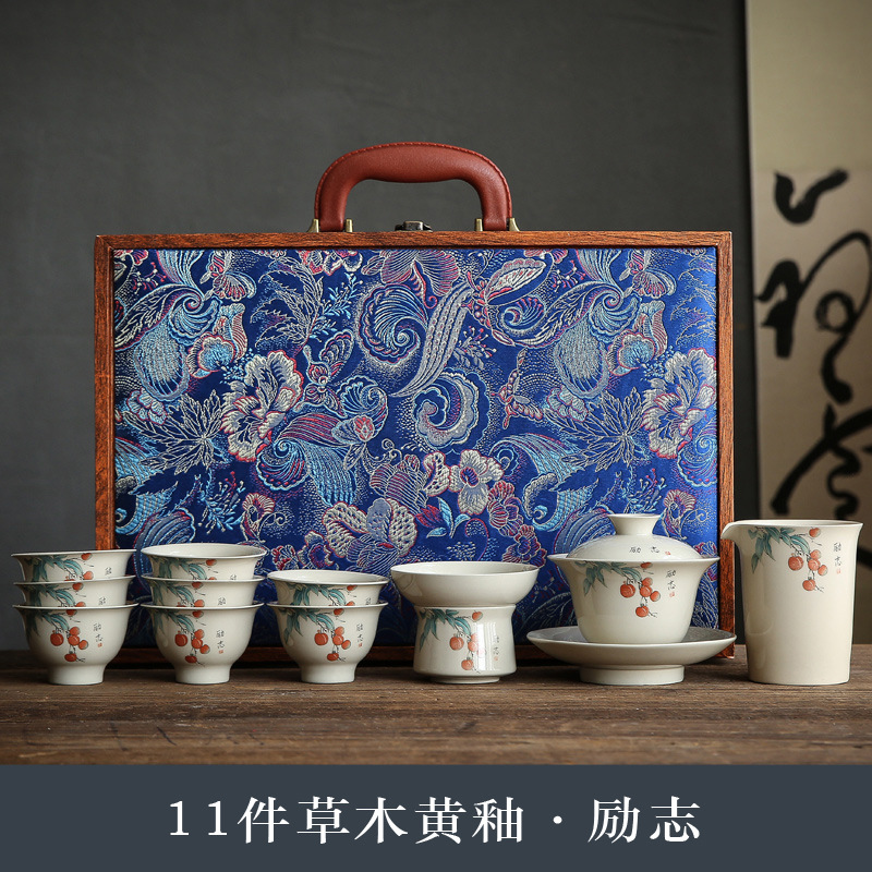 Grass and wood gray glazed tea set, ceramic Kung Fu tea set, office reception tea pot, tea cup gift box, business gift set