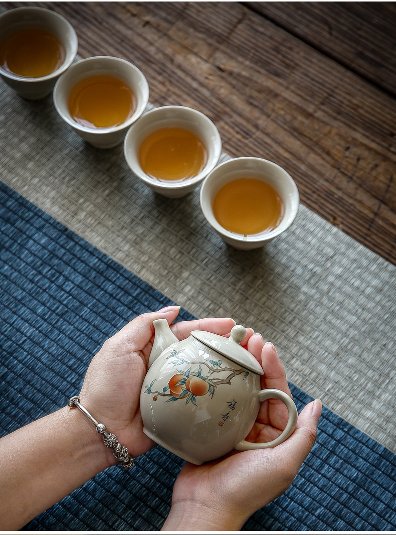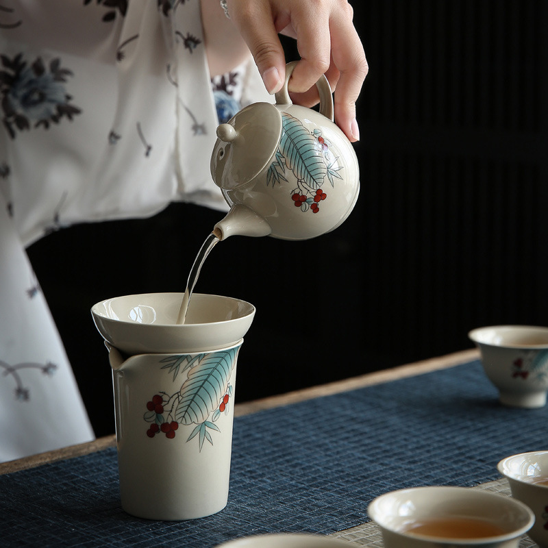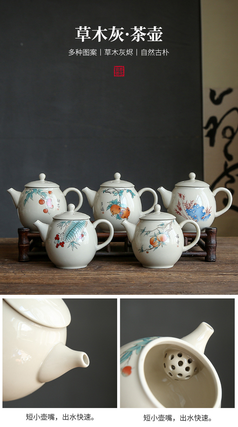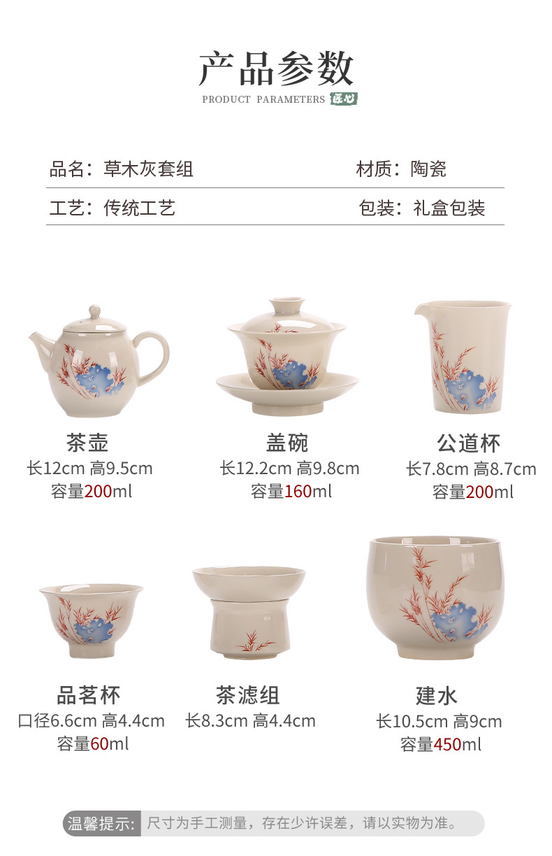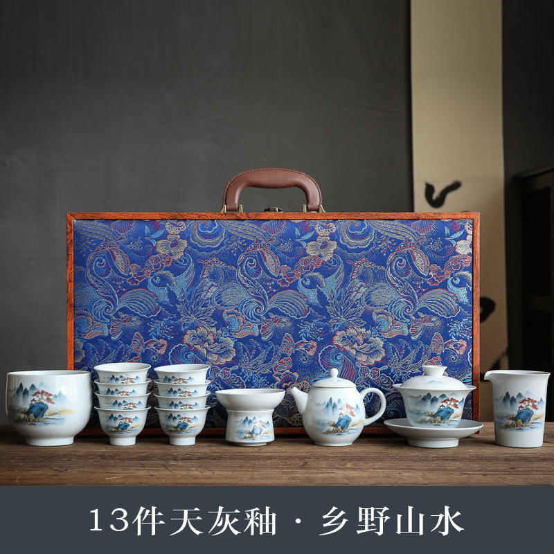 Grass and wood gray glazed tea set, ceramic Kung Fu tea set, office reception tea pot, tea cup gift box, business gift set
