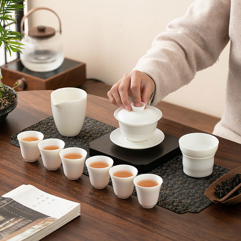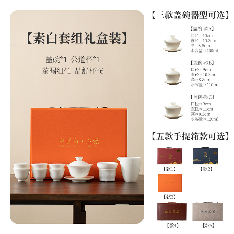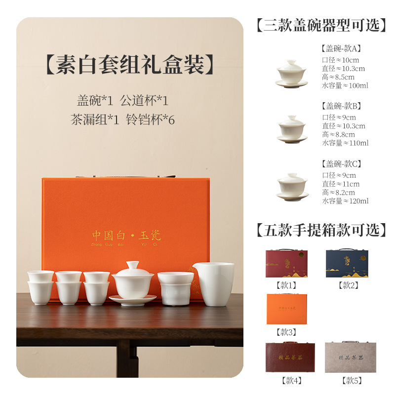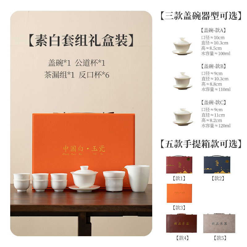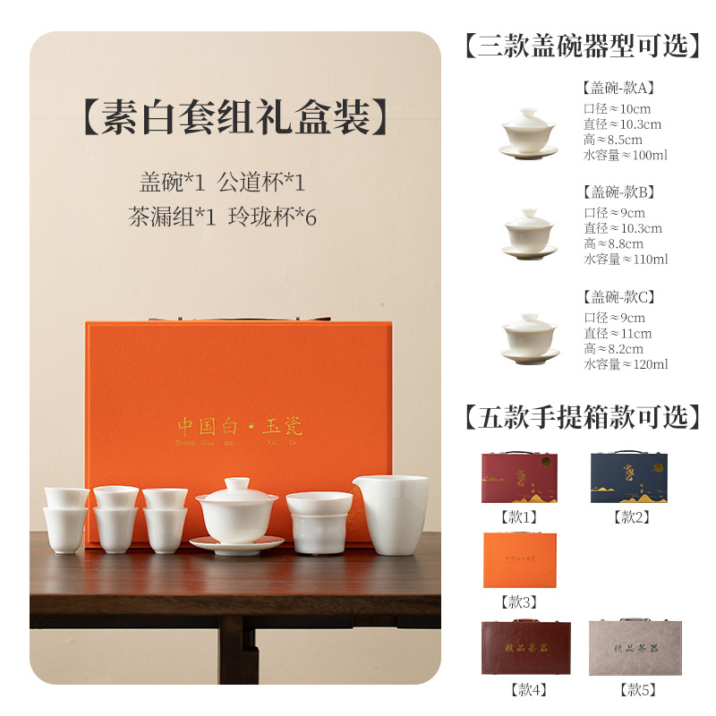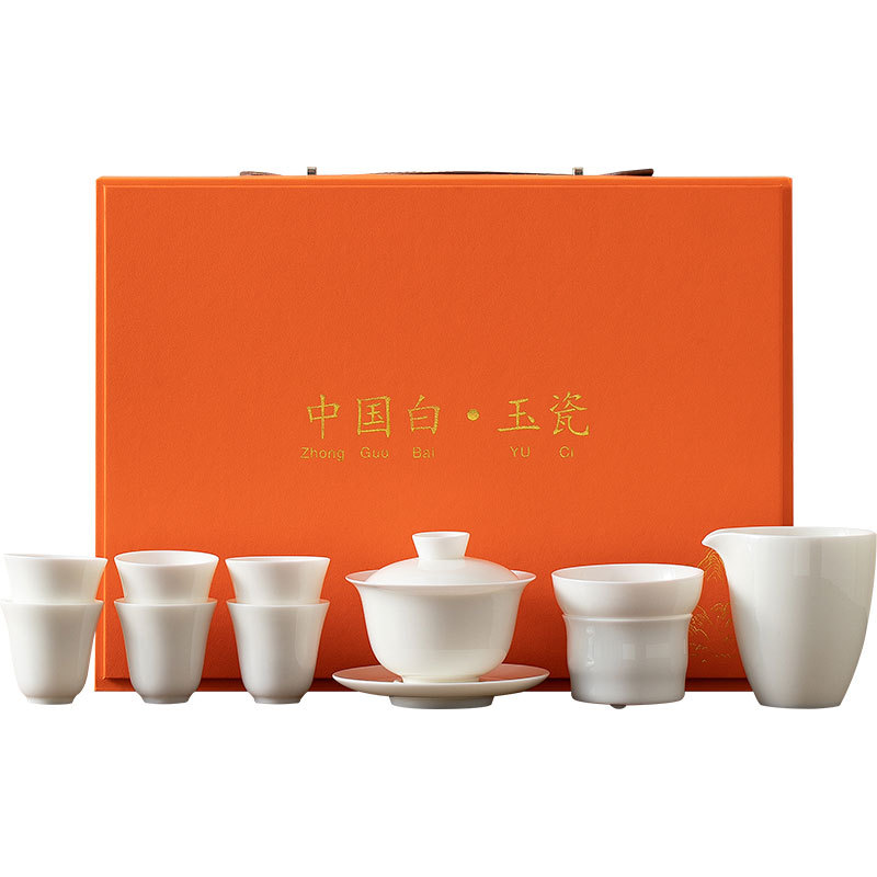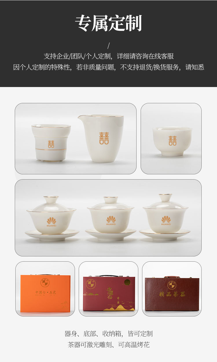 Женский жир нефритовый фарфоровый чайный сервиз полный комплект белый фарфор домашний чайный ящик с керамической крышкой чашка может быть напечатана логотипом
