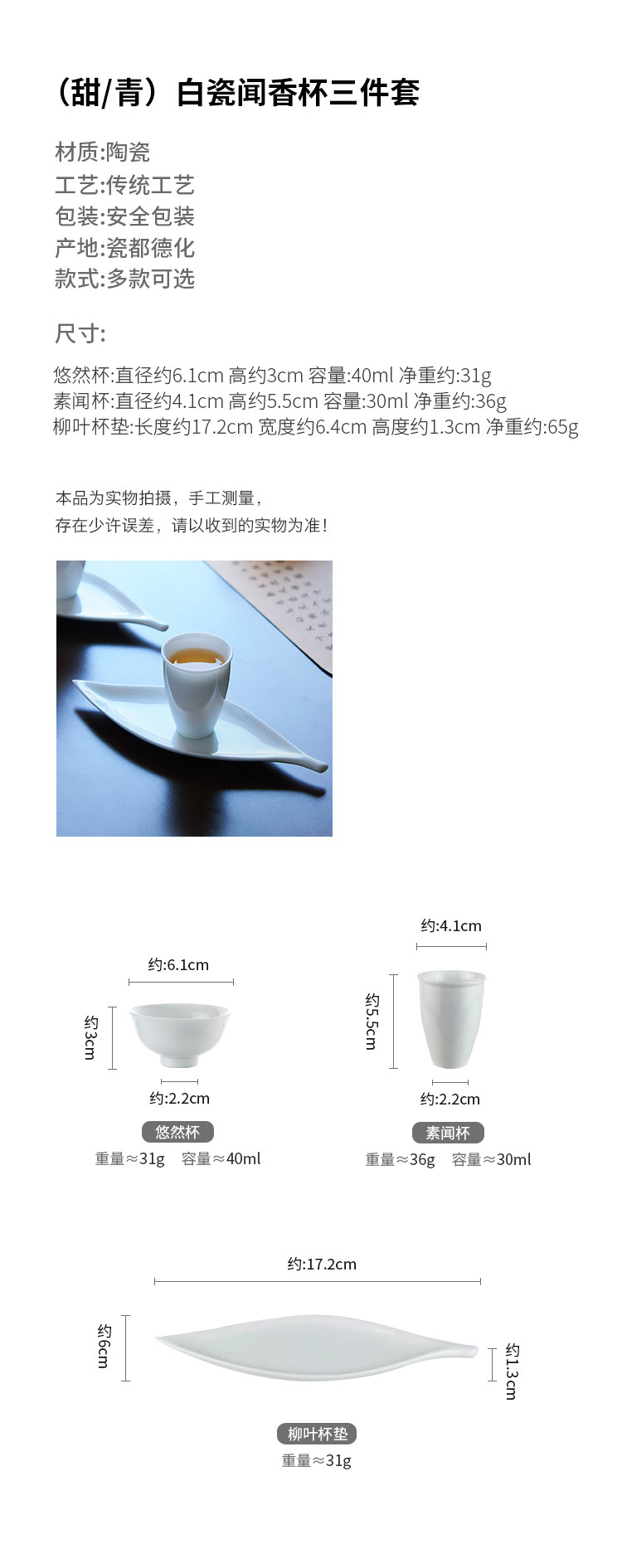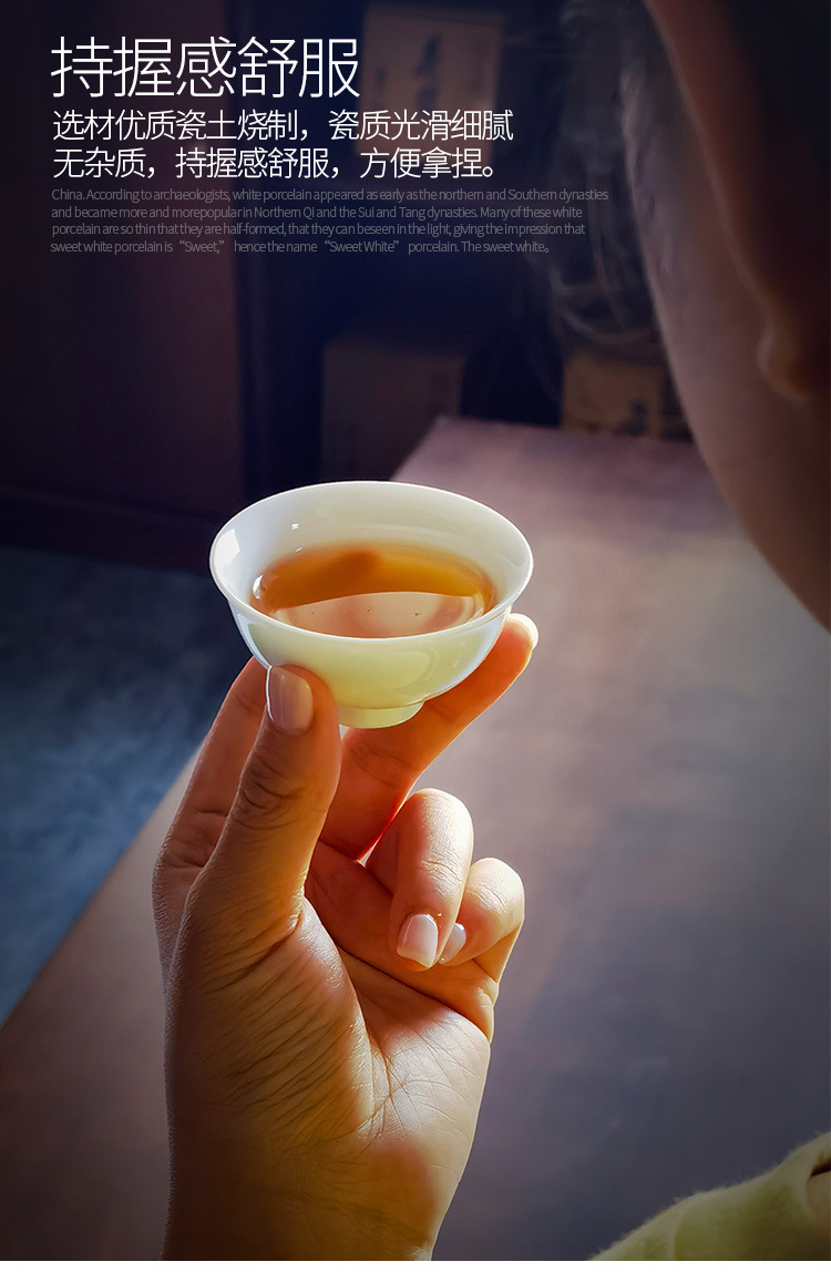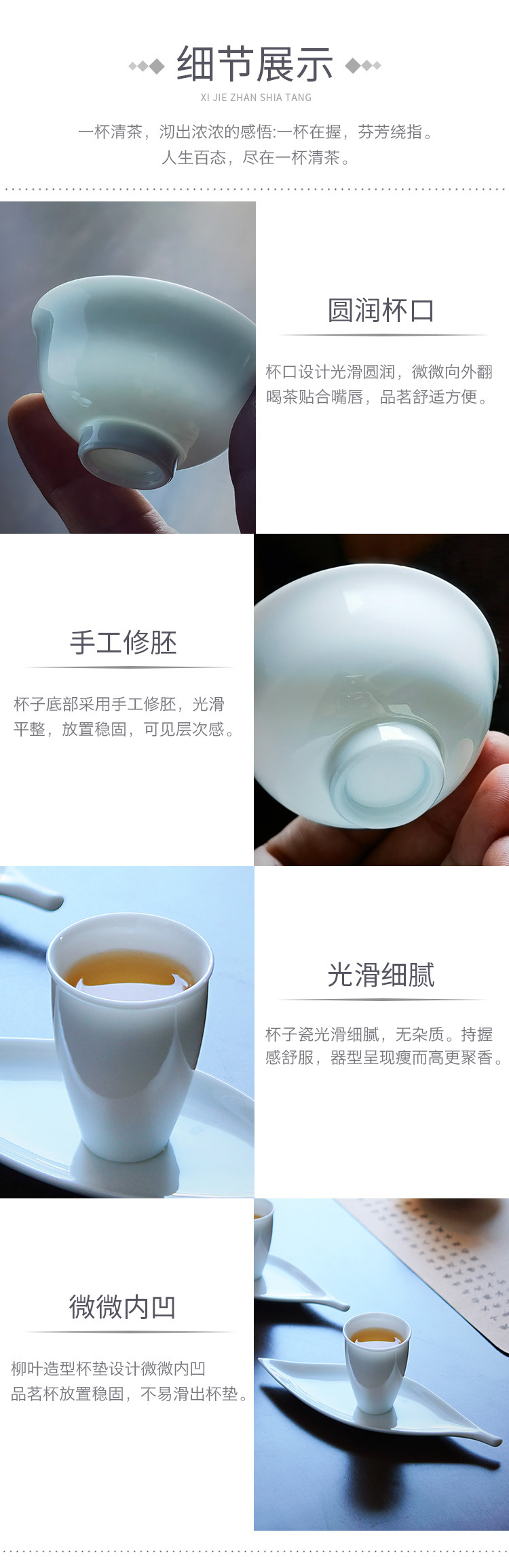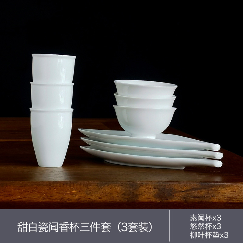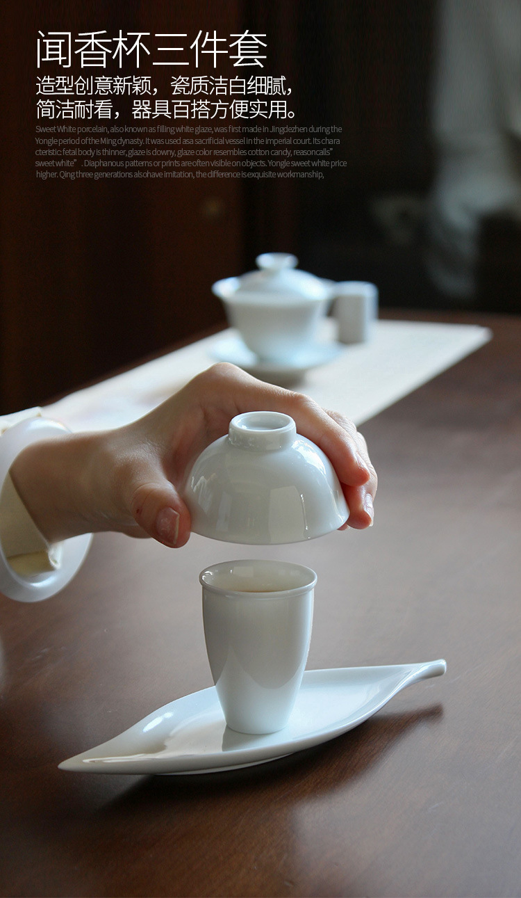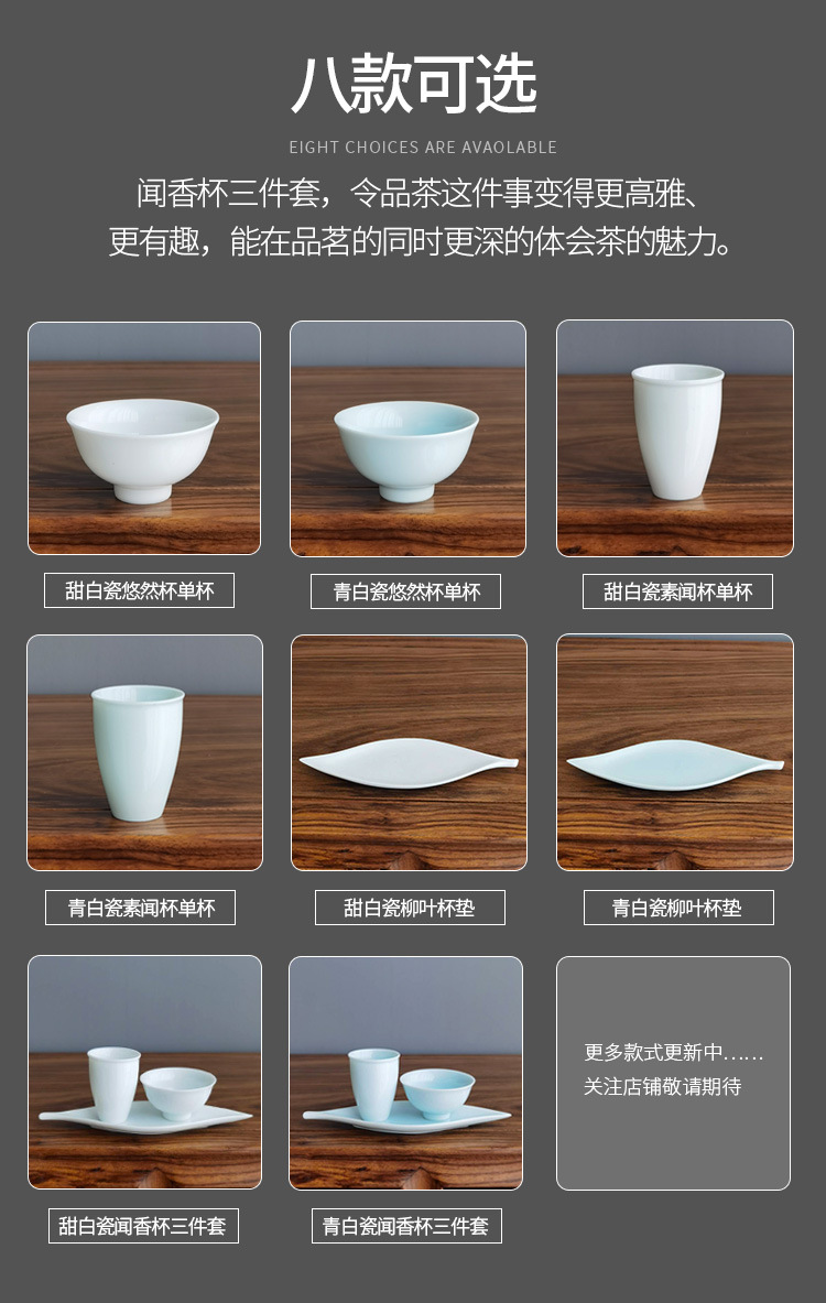 Juqitang Sweet White Porcelain Smelling Cup Set Kung Fu Teacup Master Cup Single Ceramic Cup Mat Tea Artisan Tea Set