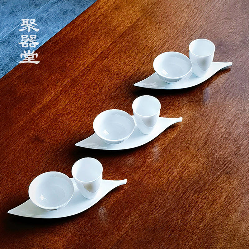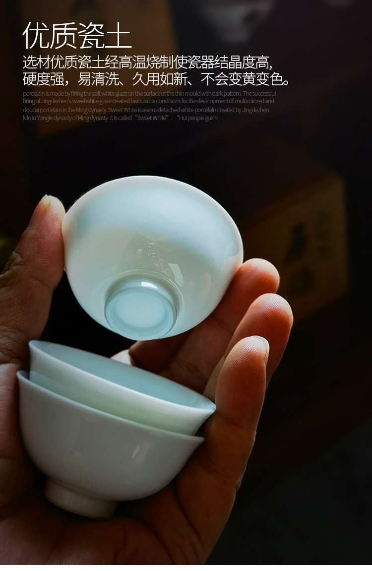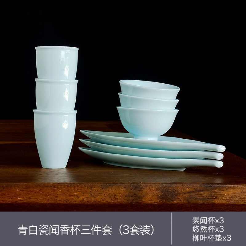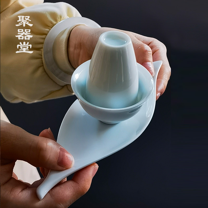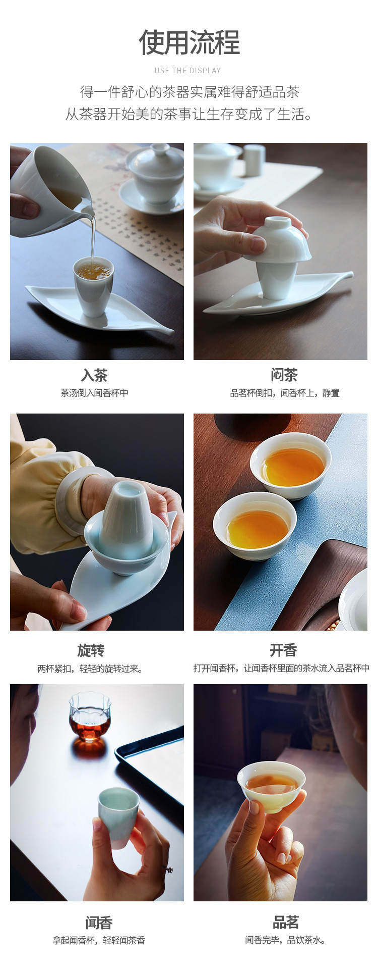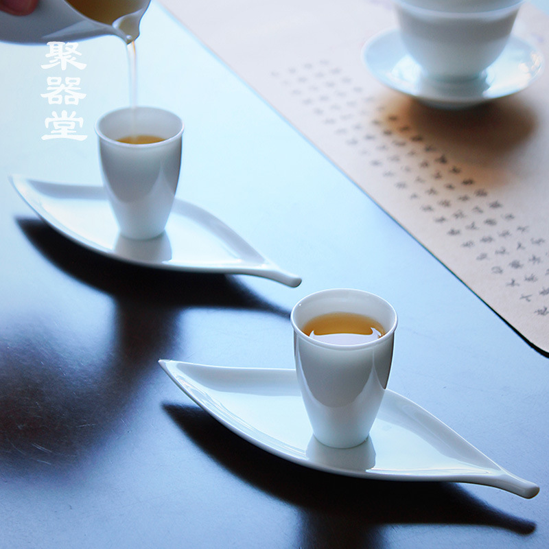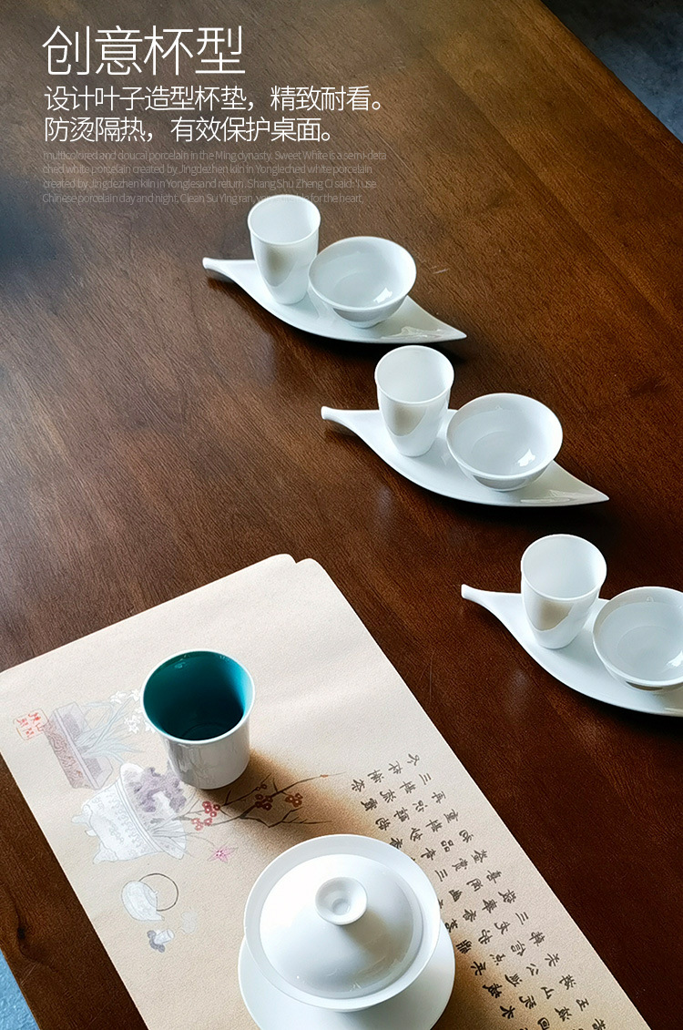 Juqitang Sweet White Porcelain Smelling Cup Set Kung Fu Teacup Master Cup Single Ceramic Cup Mat Tea Artisan Tea Set
