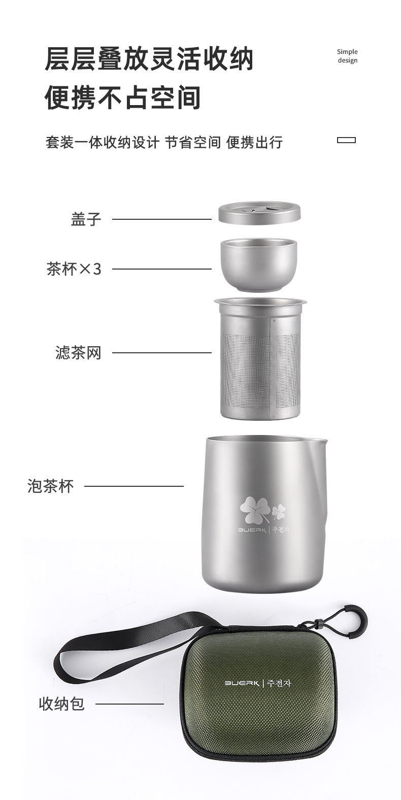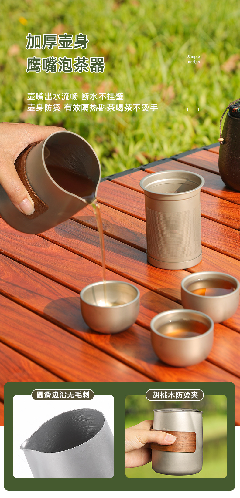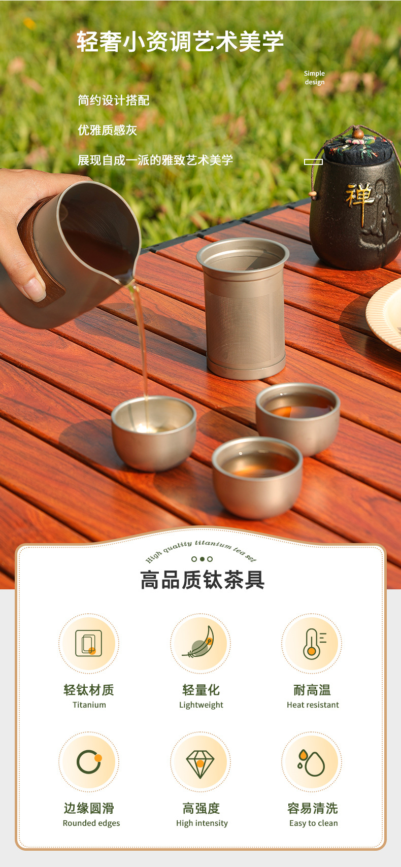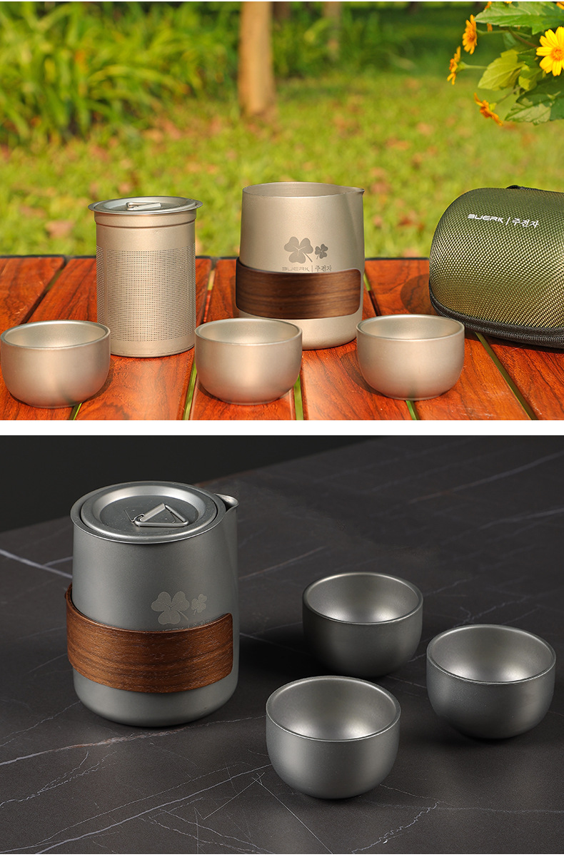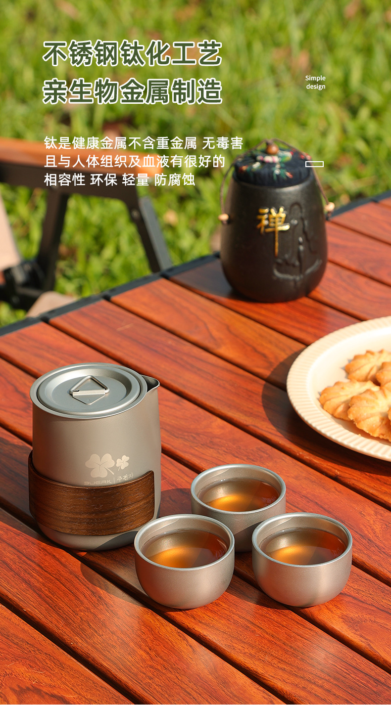 Titanium alloy portable travel tea set teapot double-layer tea cup outdoor camping tea equipment wholesale