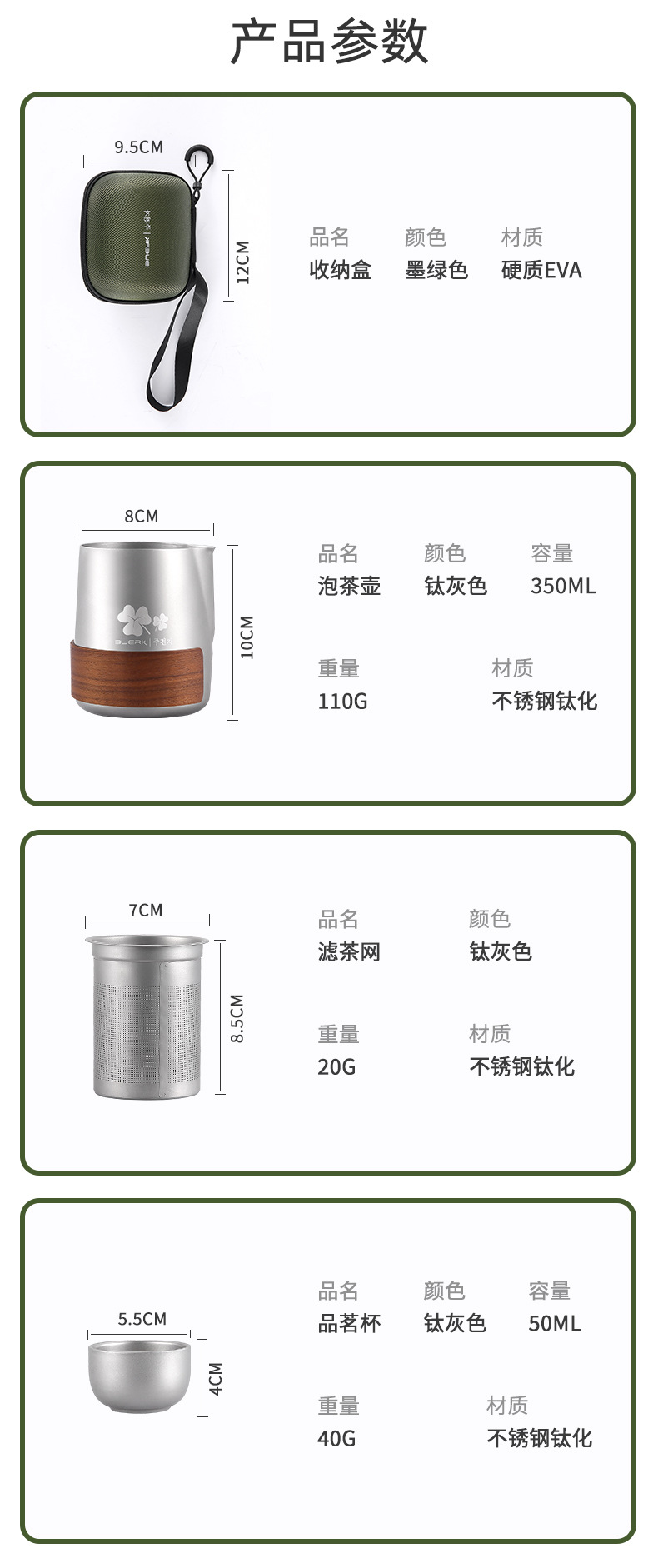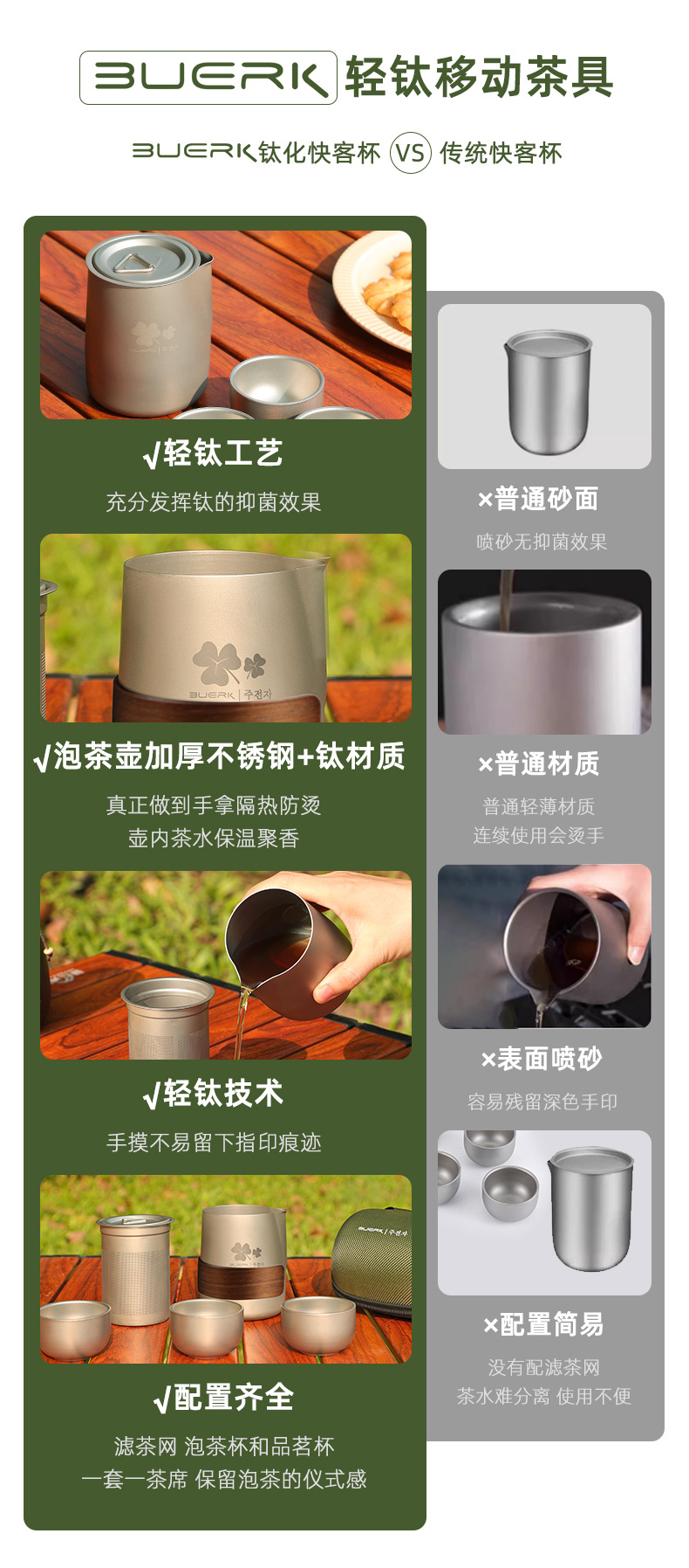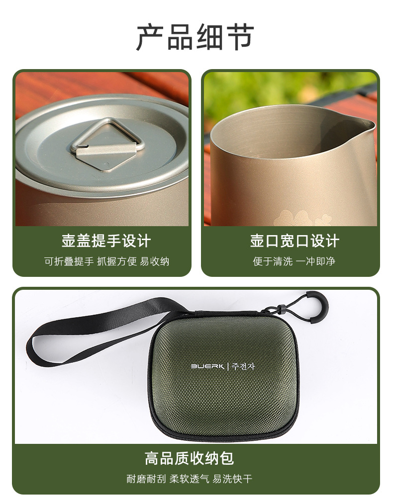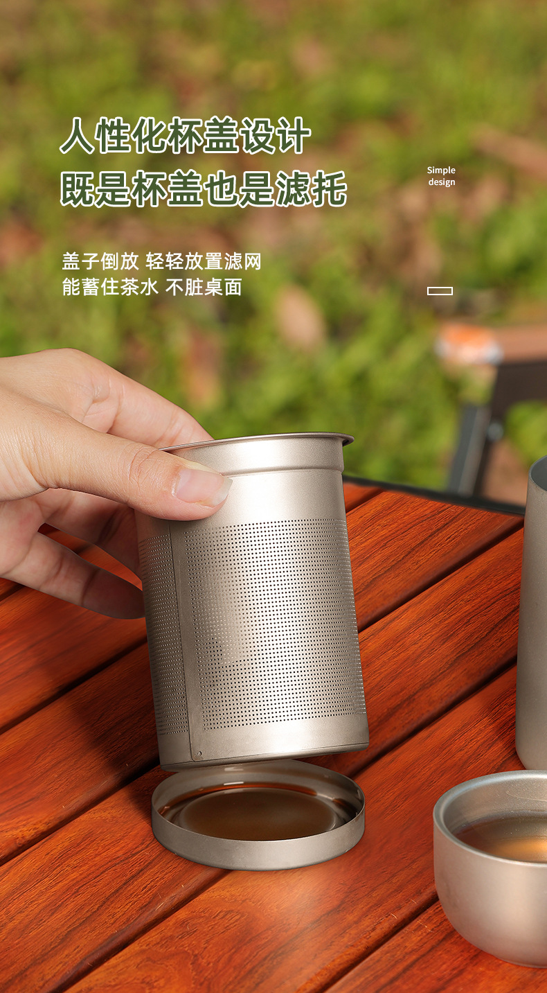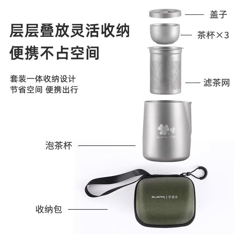 Titanium alloy portable travel tea set teapot double-layer tea cup outdoor camping tea equipment wholesale